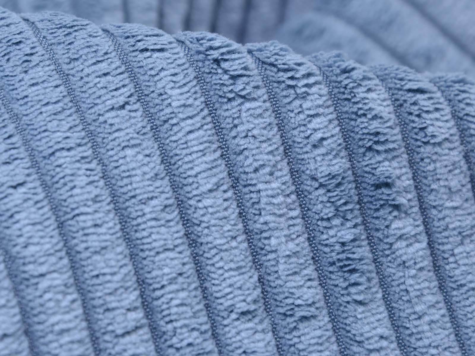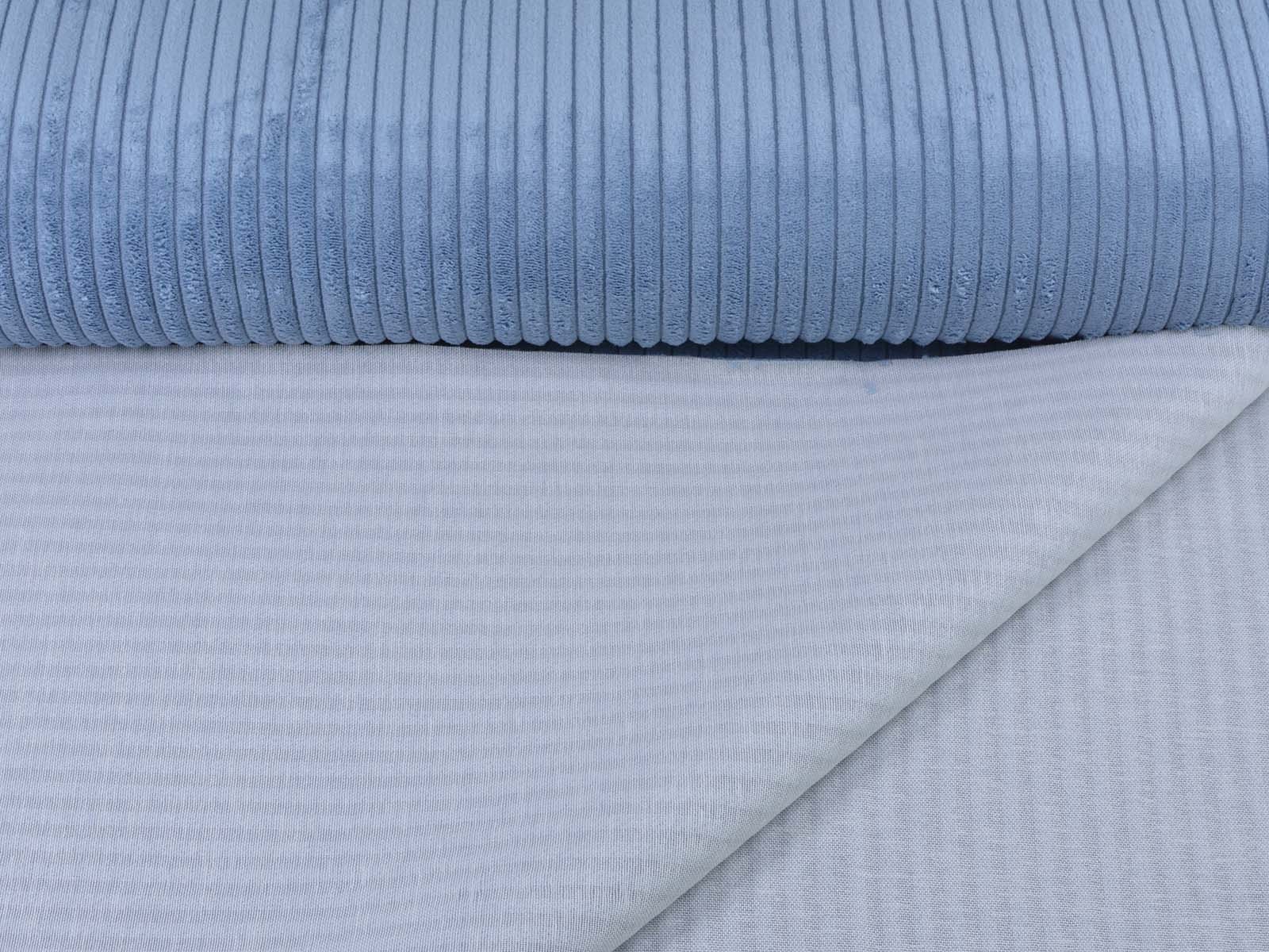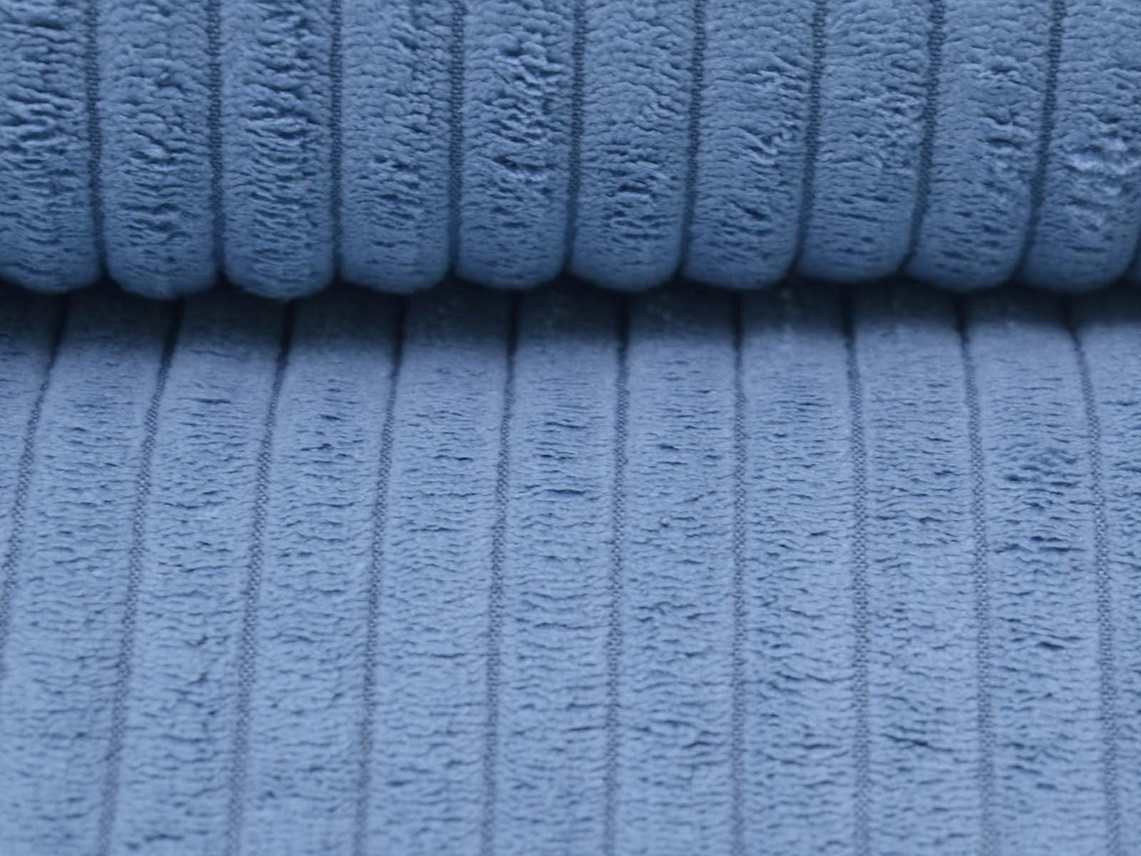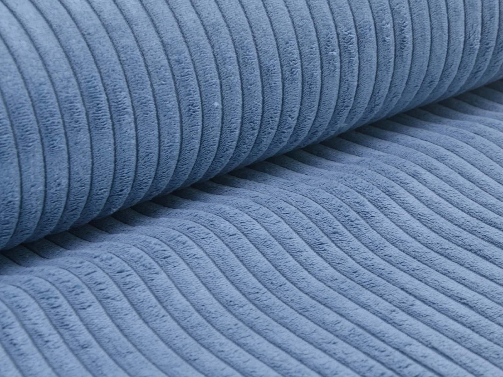 Breiter Kordstoff in hellblau. Eine Rippe ist ca. 1 cm breit. Der Kord fühlt sich samtig und weich an. Verwende ihn zum Polstern von Sesseln, Stühlen und Sofas oder nähe dir stylische Bauchtaschen, Shopper, Kissen, Schminktäschchen und vieles mehr.