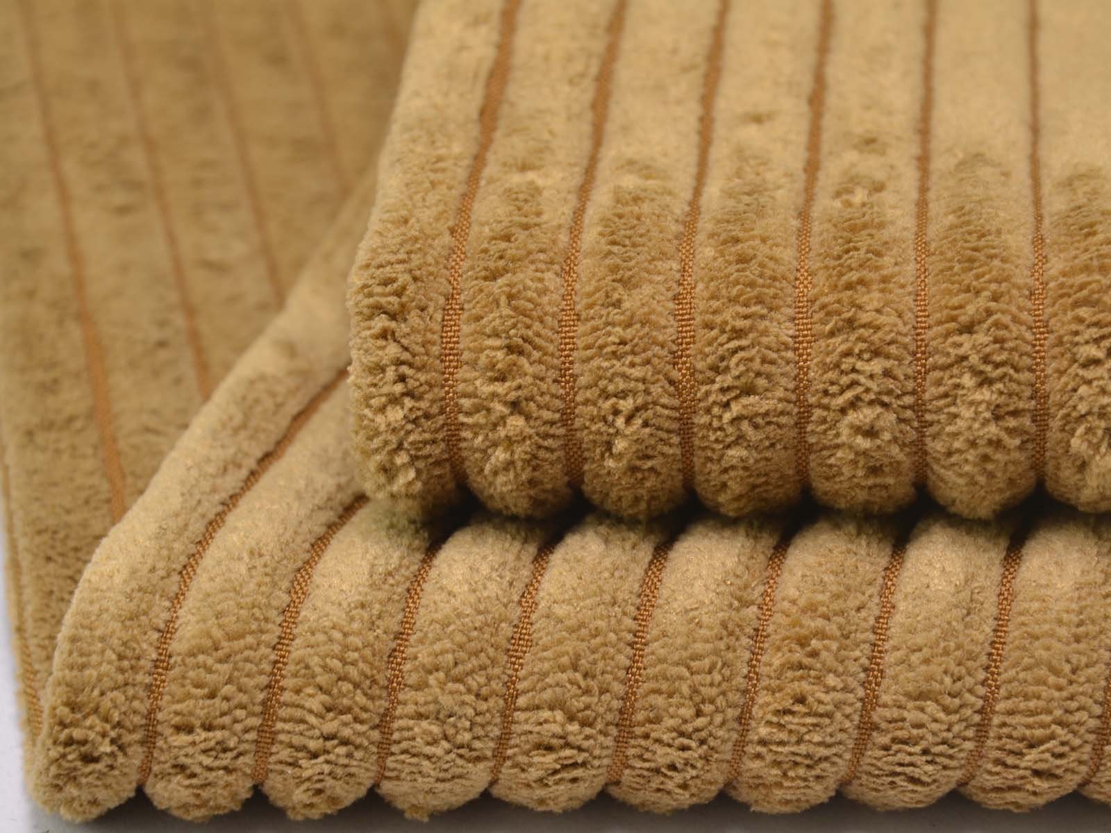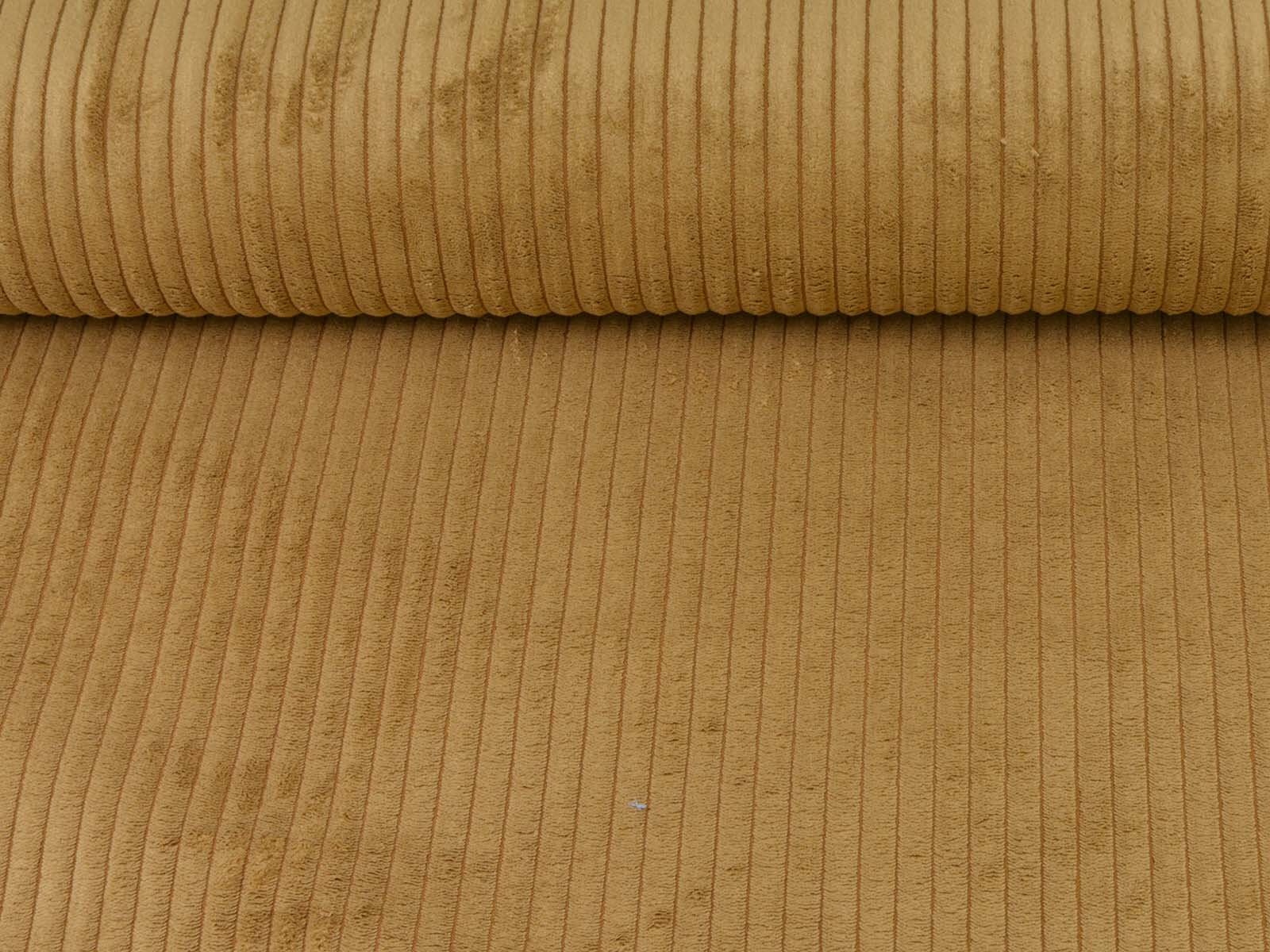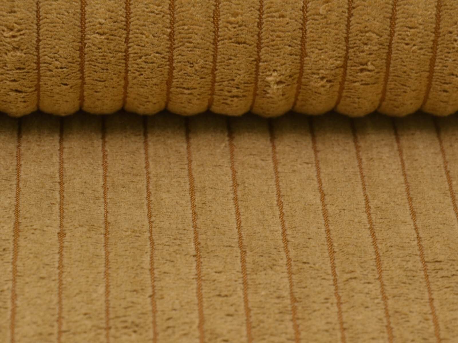 Breiter Kordstoff in senfgelb. Eine Rippe ist ca. 1 cm breit. Der Kord fühlt sich samtig und weich an. Verwende ihn zum Polstern von Sesseln, Stühlen und Sofas oder nähe dir stylische Bauchtaschen, Shopper, Kissen, Schminktäschchen und vieles mehr.