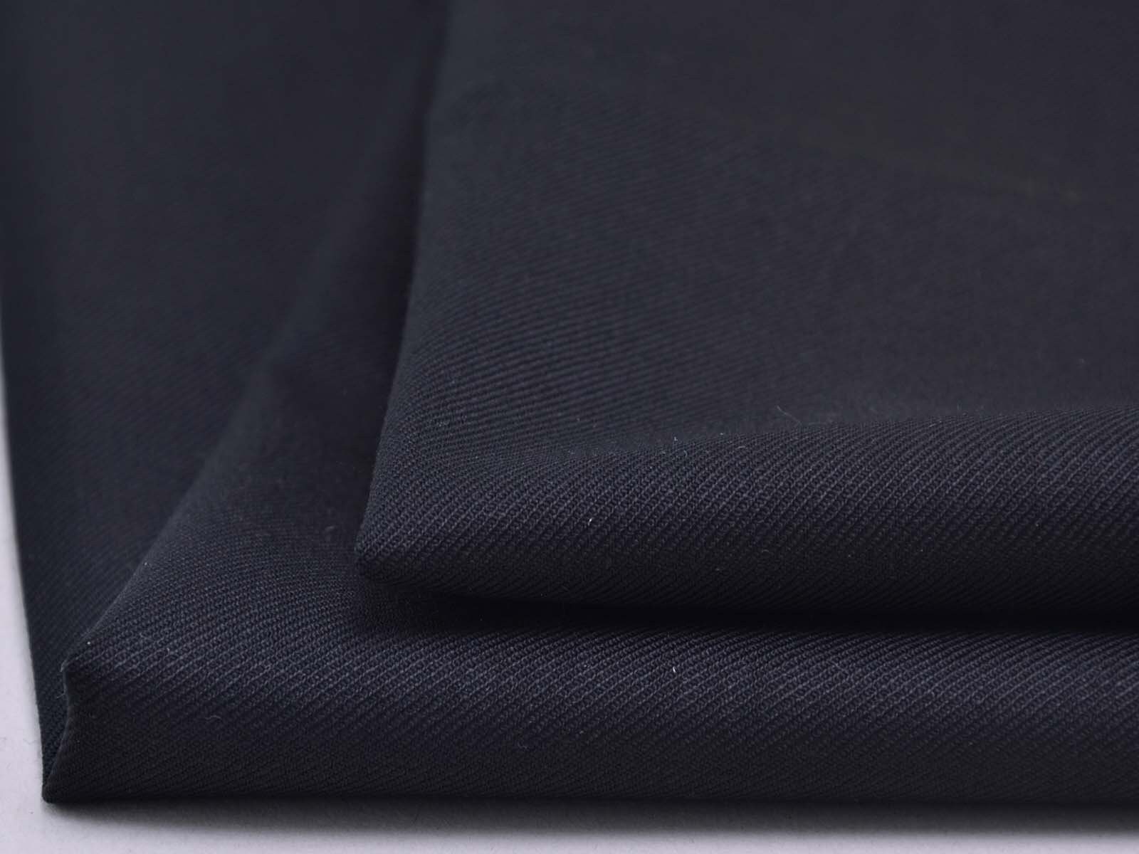 Hochwertige Köper-Webware in uni schwarz aus Schurwolle. Der Stoff ist glatt, glänzt edel und ist recht dünn. Er fühlt sich kalt an. Nähe dir daraus Business Hosen, Blazer, Röcke, Kleider und vieles mehr.