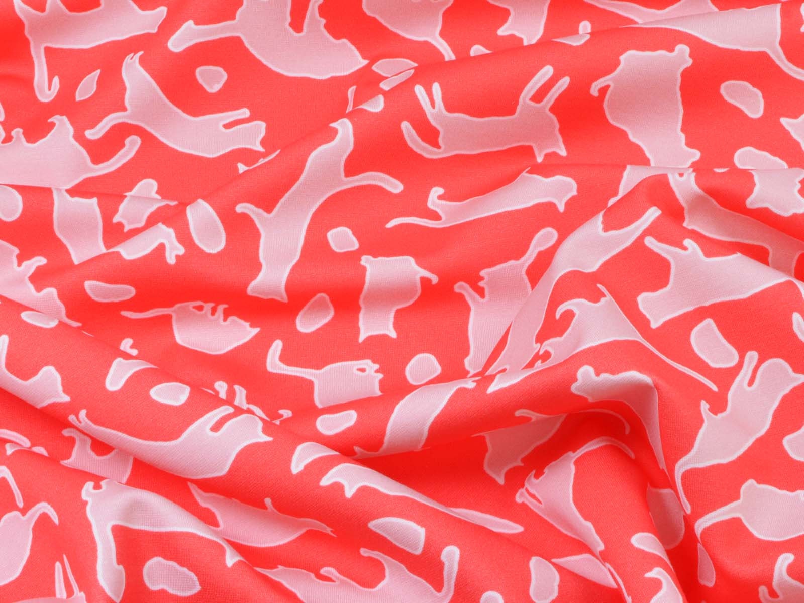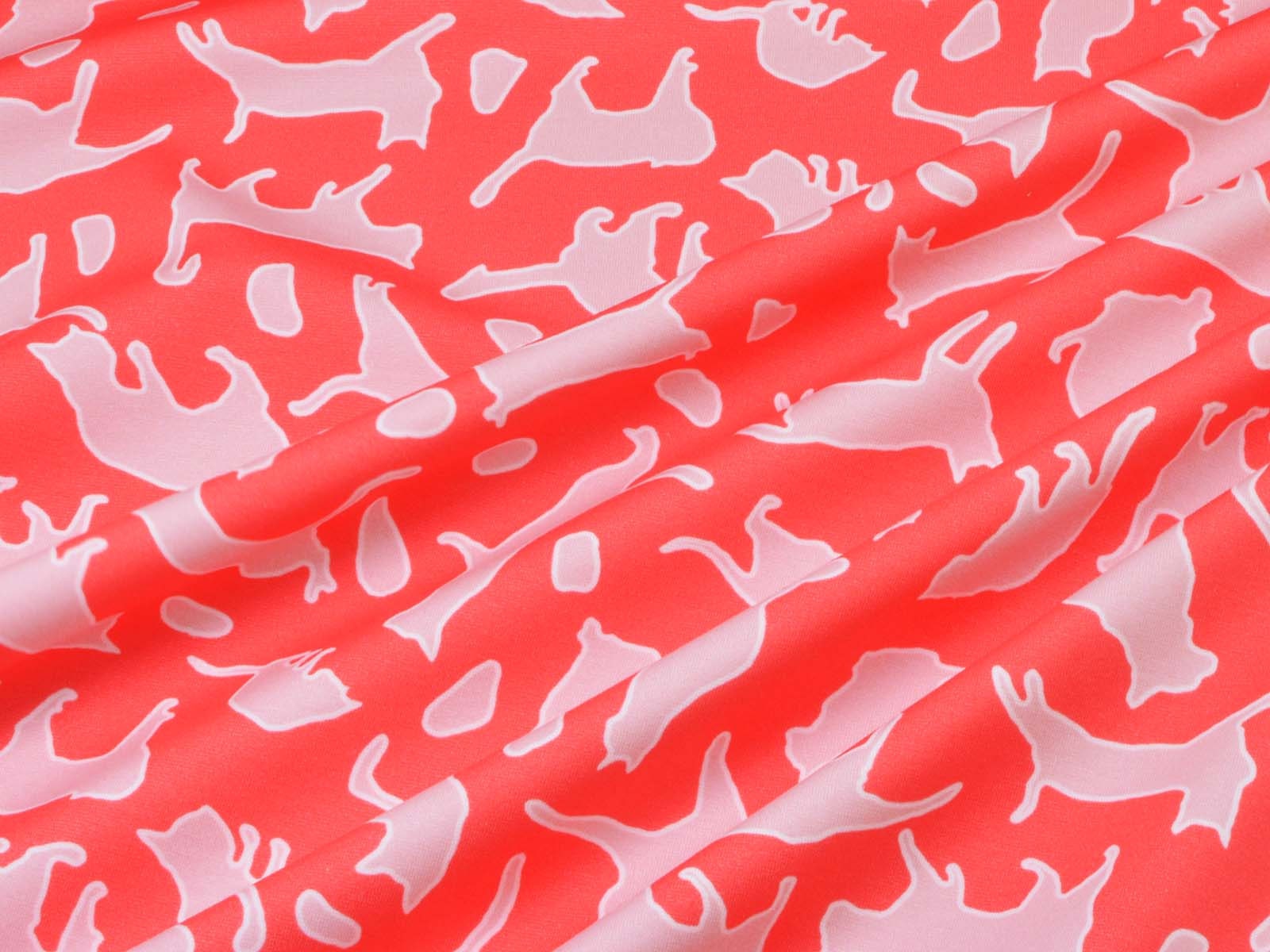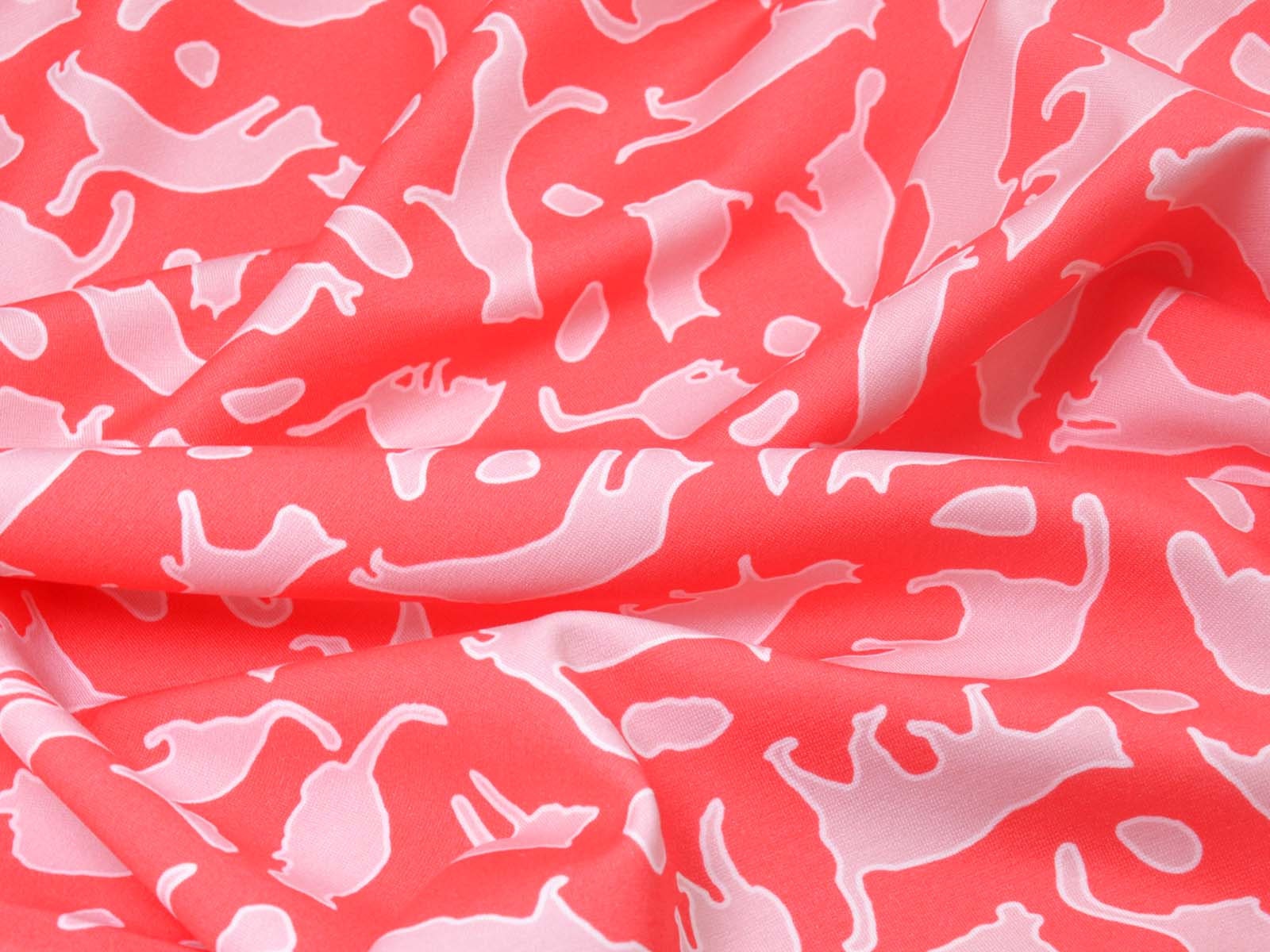 Mittelschwerer Romanit Jersey aus Viskose. Der Stoff ist glatt und eher fester. Er zeigt spielende Katzen. Er eignet sich wunderbar zum Nähen von Kleider, Röcken, T-Shirts und vielem mehr.