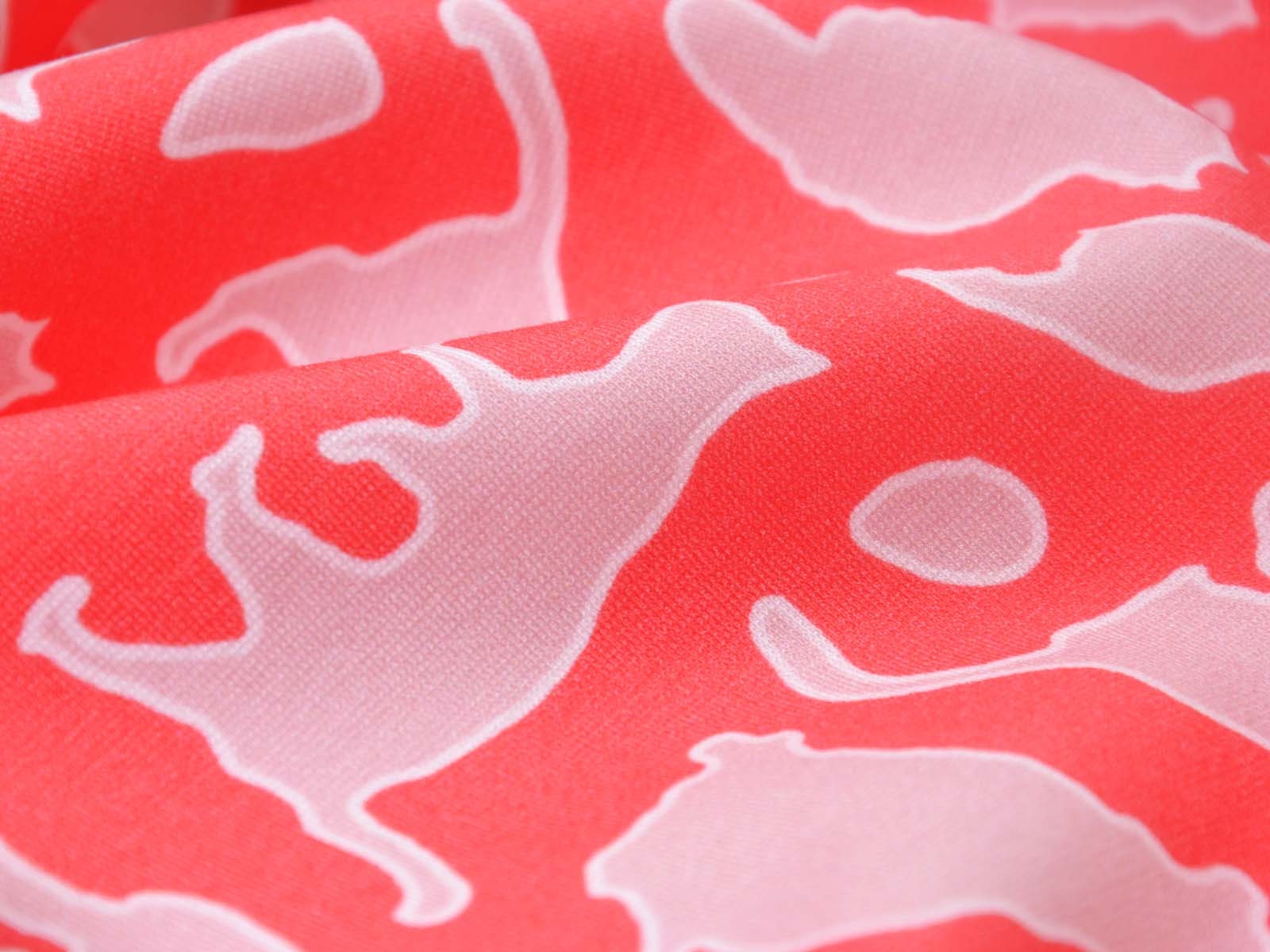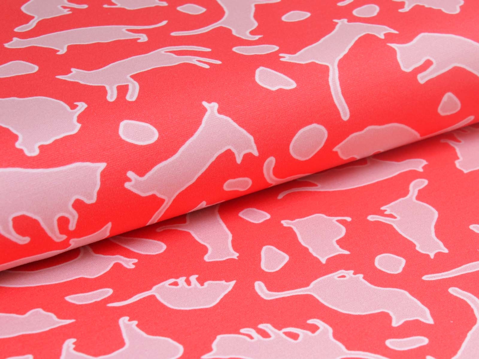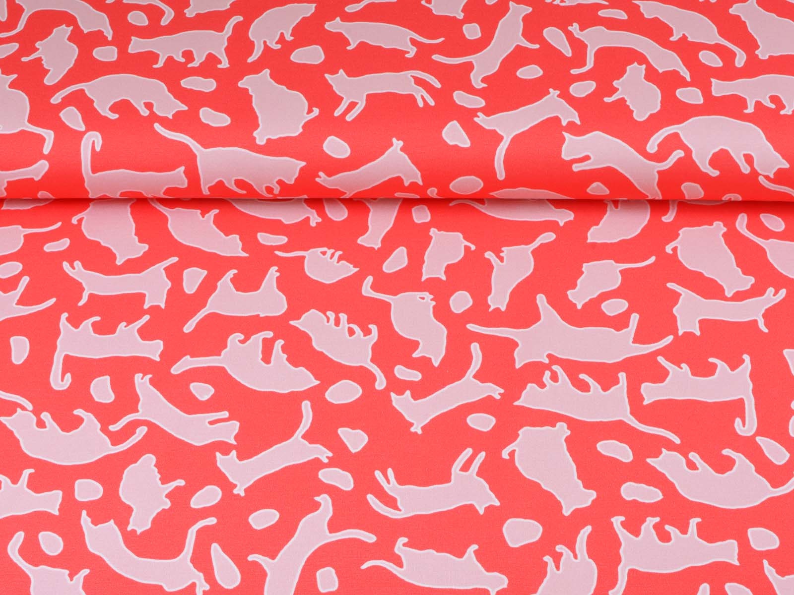 Mittelschwerer Romanit Jersey aus Viskose. Der Stoff ist glatt und eher fester. Er zeigt spielende Katzen. Er eignet sich wunderbar zum Nähen von Kleider, Röcken, T-Shirts und vielem mehr.