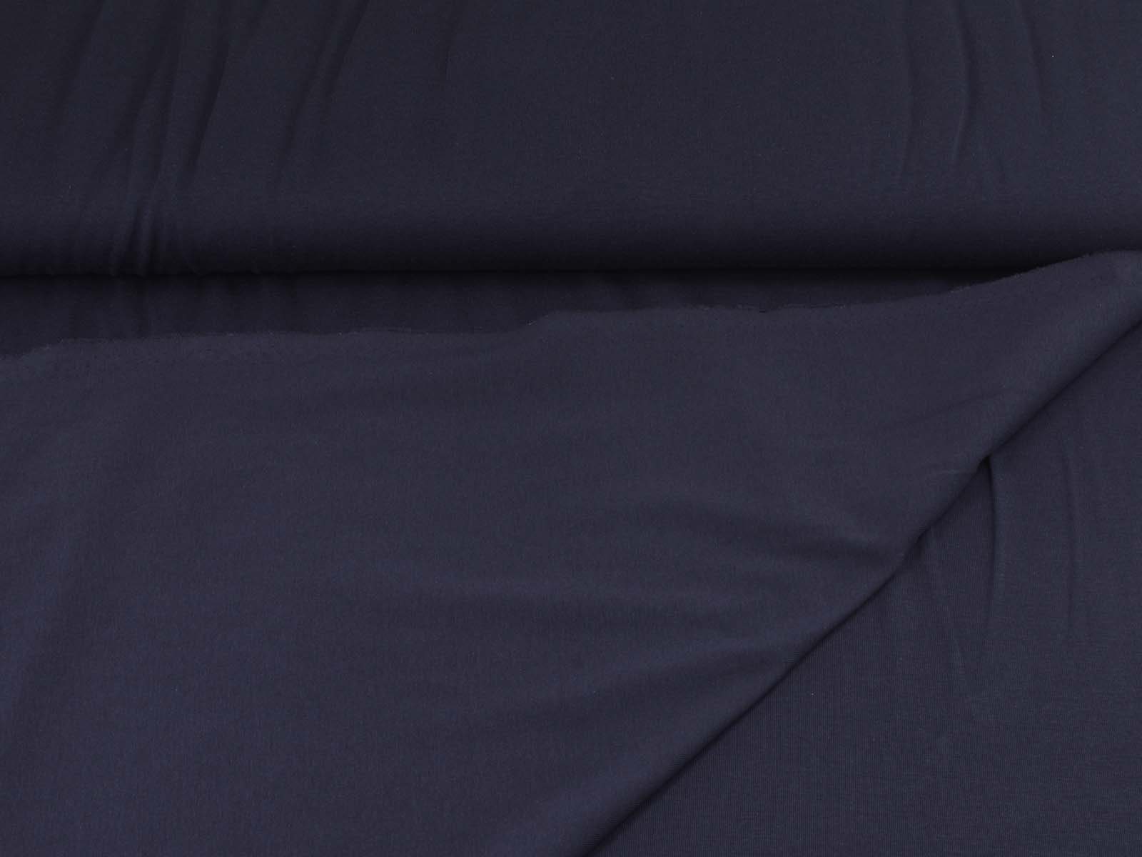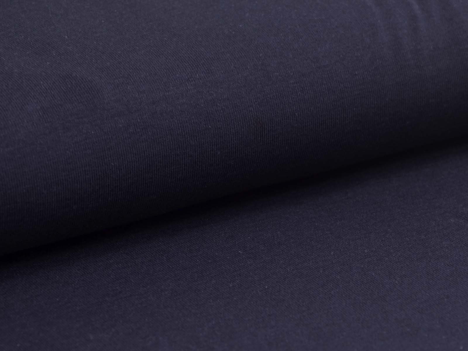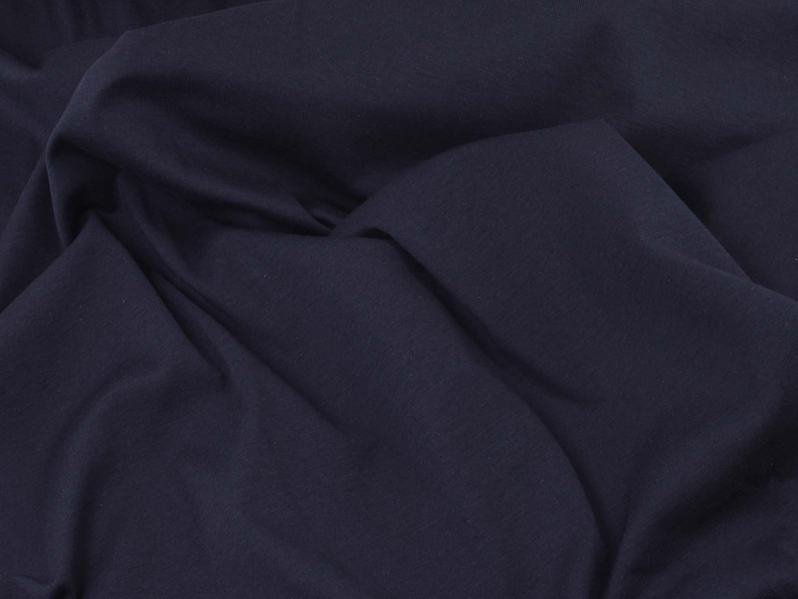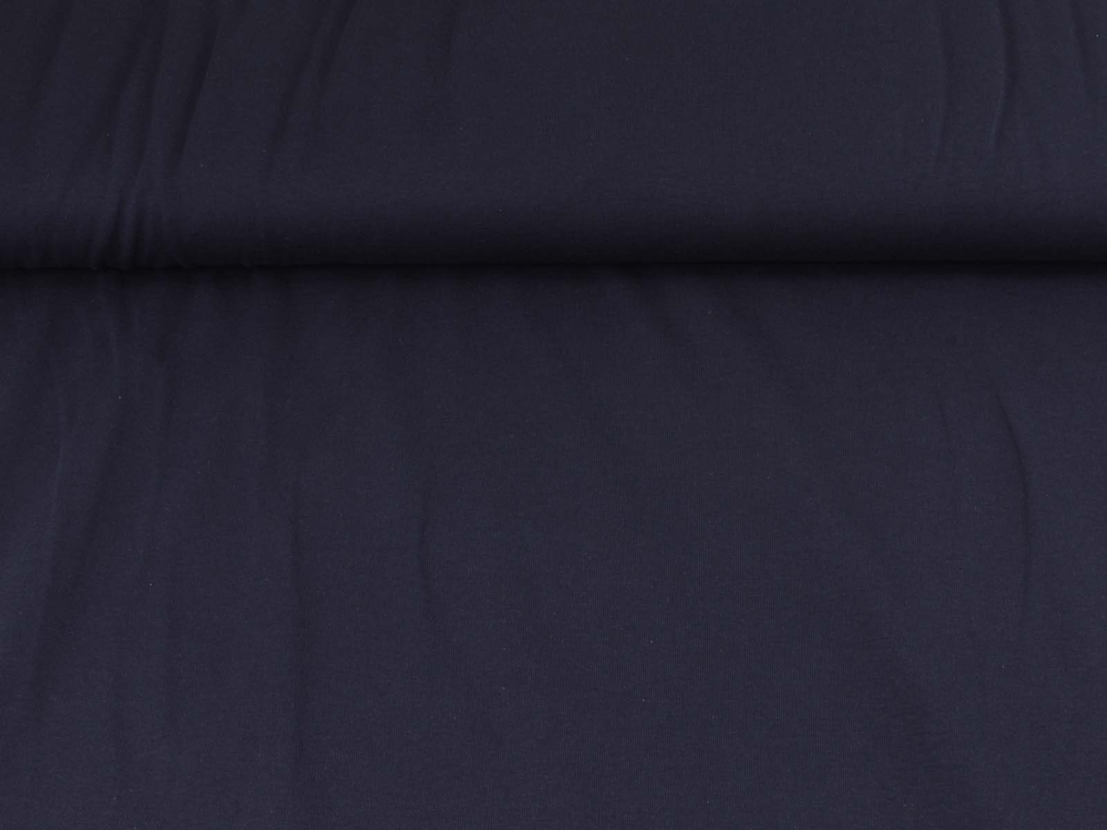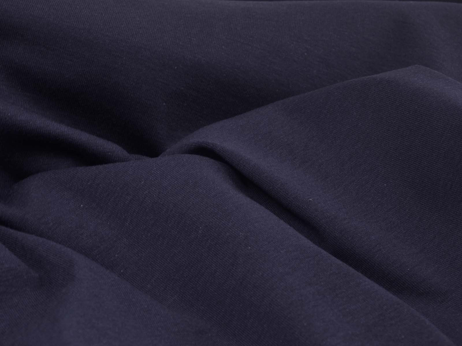 Hochwertiger Jersey aus Baumwolle in einfarbig dunkelblau. Der Stoff ist dünn, fällt fließend und fühlt sich angenehm weich an. Nähe dir daraus T-Shirts. Langarmshirts, Leggings und vieles mehr.