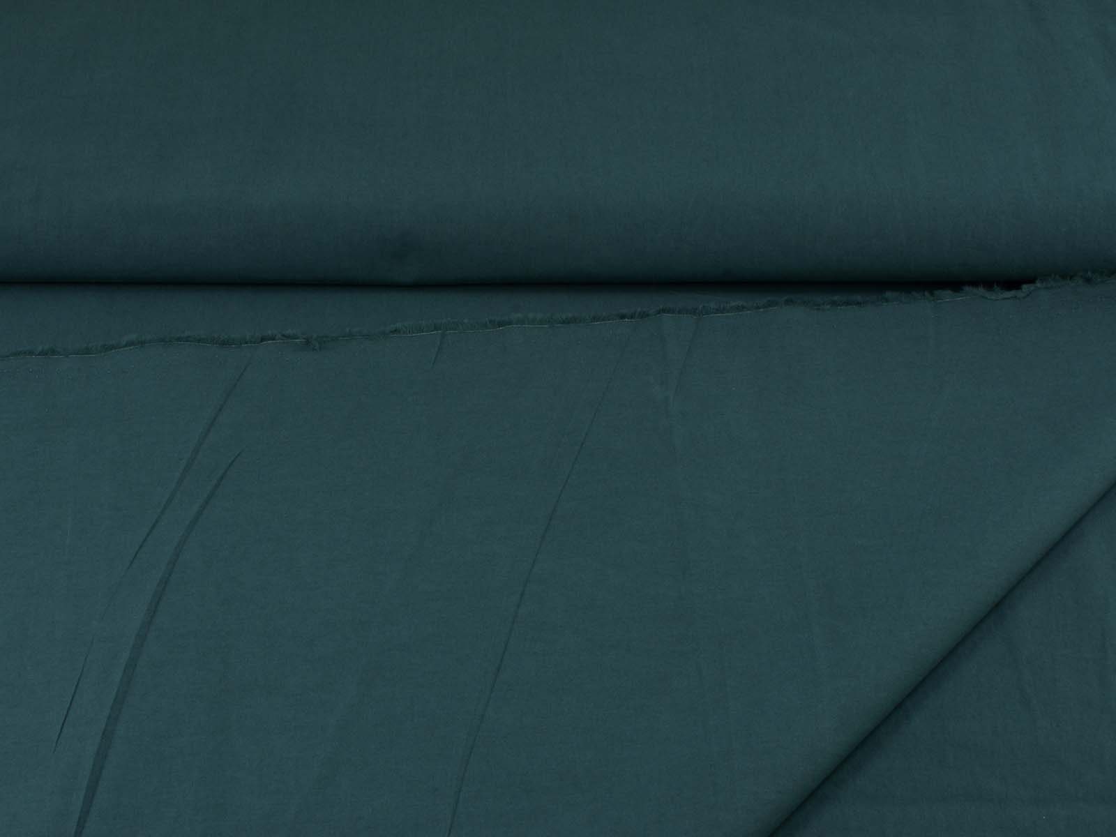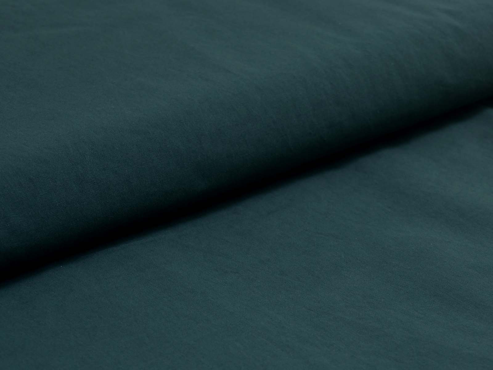 Popeline stone washed aus Baumwolle von Fibre Mood. Der Stoff ist einfarbig dunkelgrün. Er ist matt, glatt und dünn. Die ist der Originalstoff zu den Fibre Mood Modellen „Hailey“ und „Lilian“. Nähe dir aus diesem Stoff Blusen, Kleider und vieles mehr.