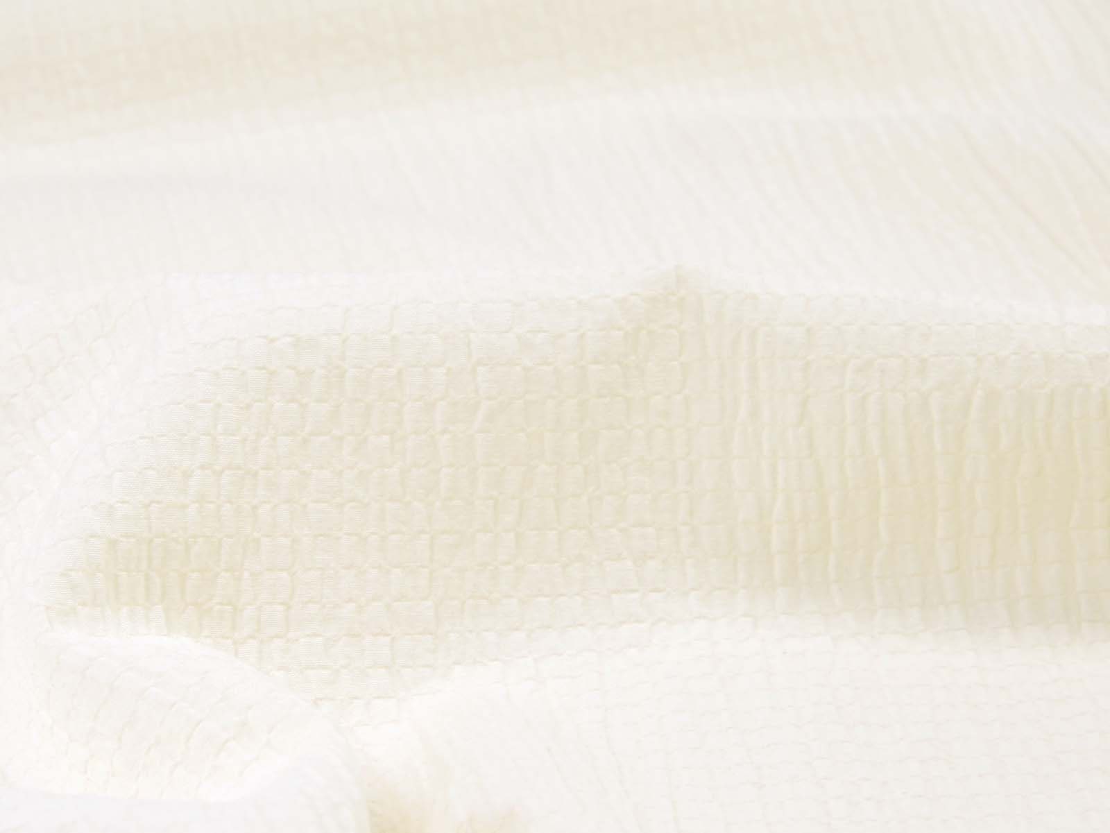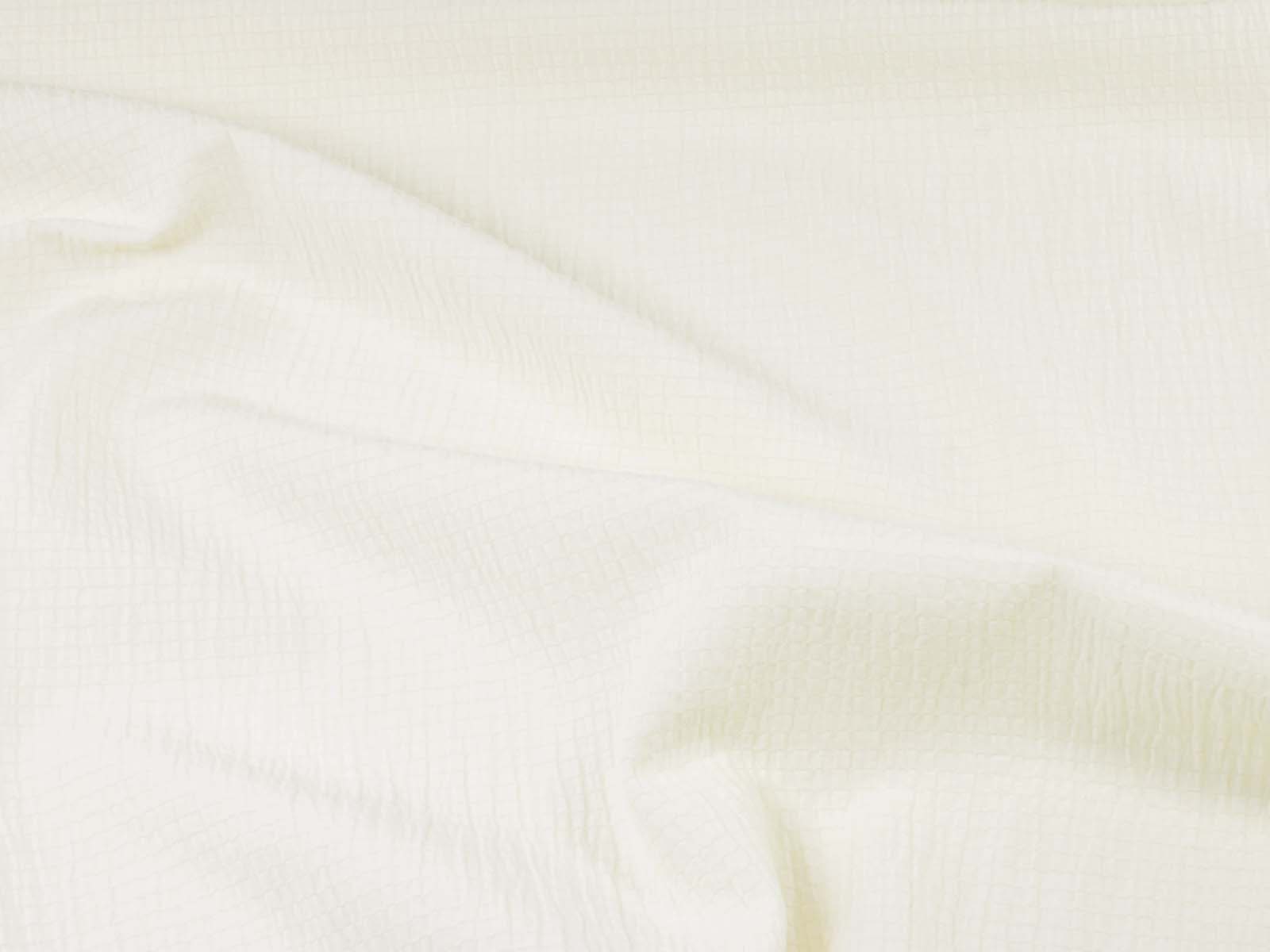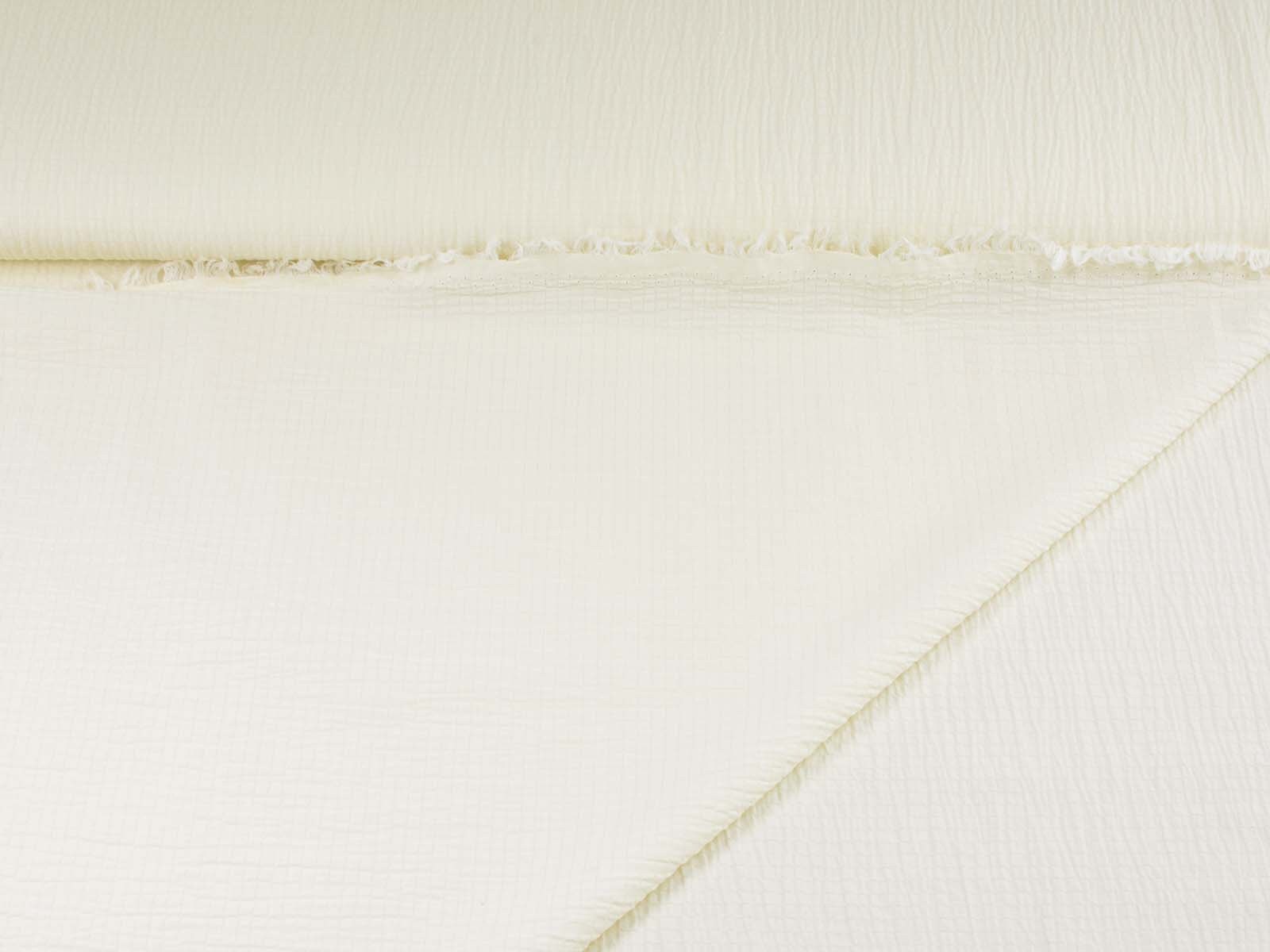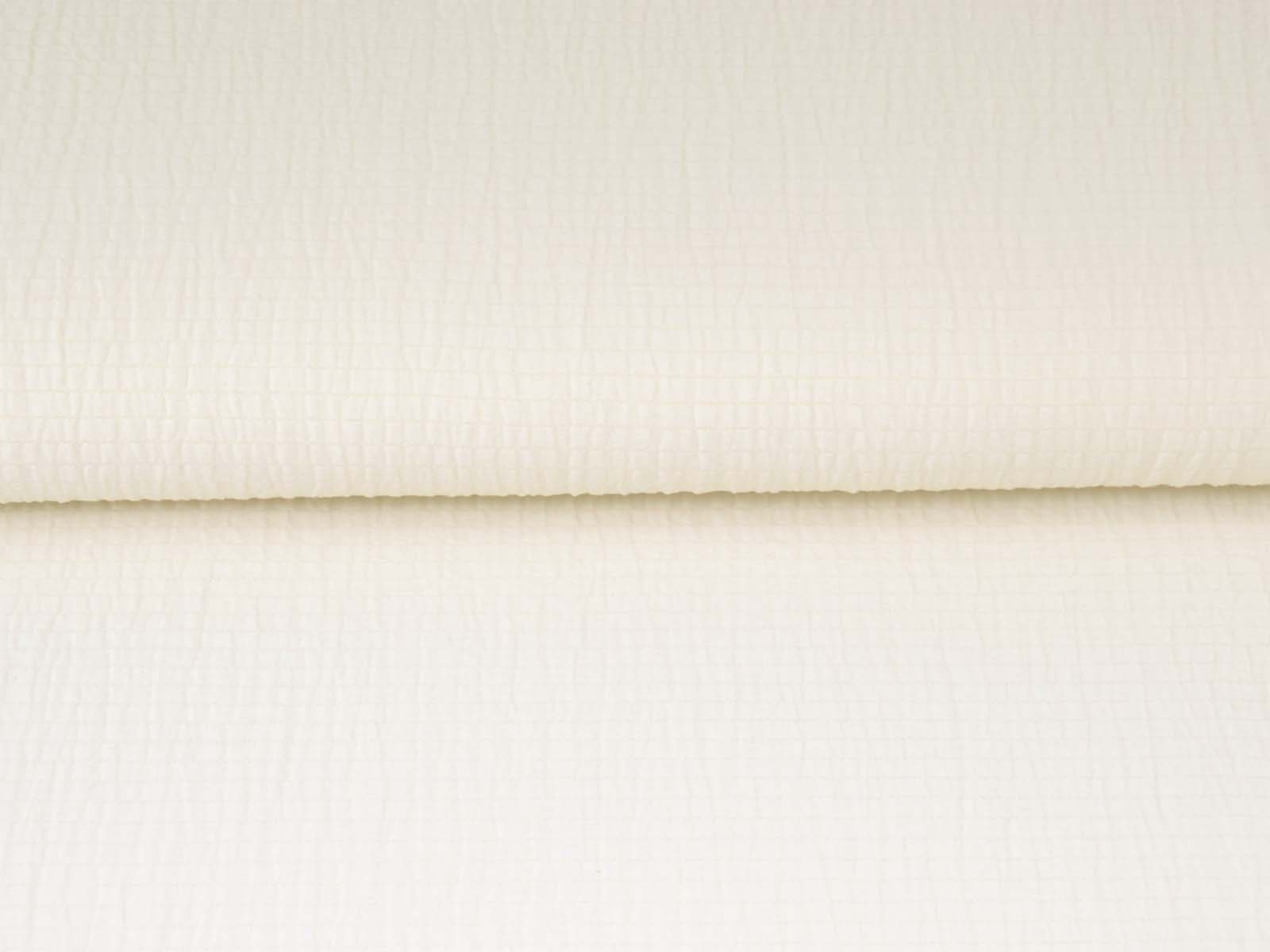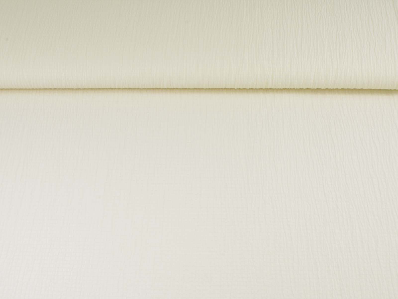 Webware aus Baumwolle, Polyester von Fibre Mood. Der Stoff ist einfarbig off white. Er ist leicht elastisch, gecrasht und dünn. Die ist der Originalstoff zum Fibre Mood Modell „Ashley“. Nähe dir aus diesem Stoff Blusen, Kleider und vieles mehr.