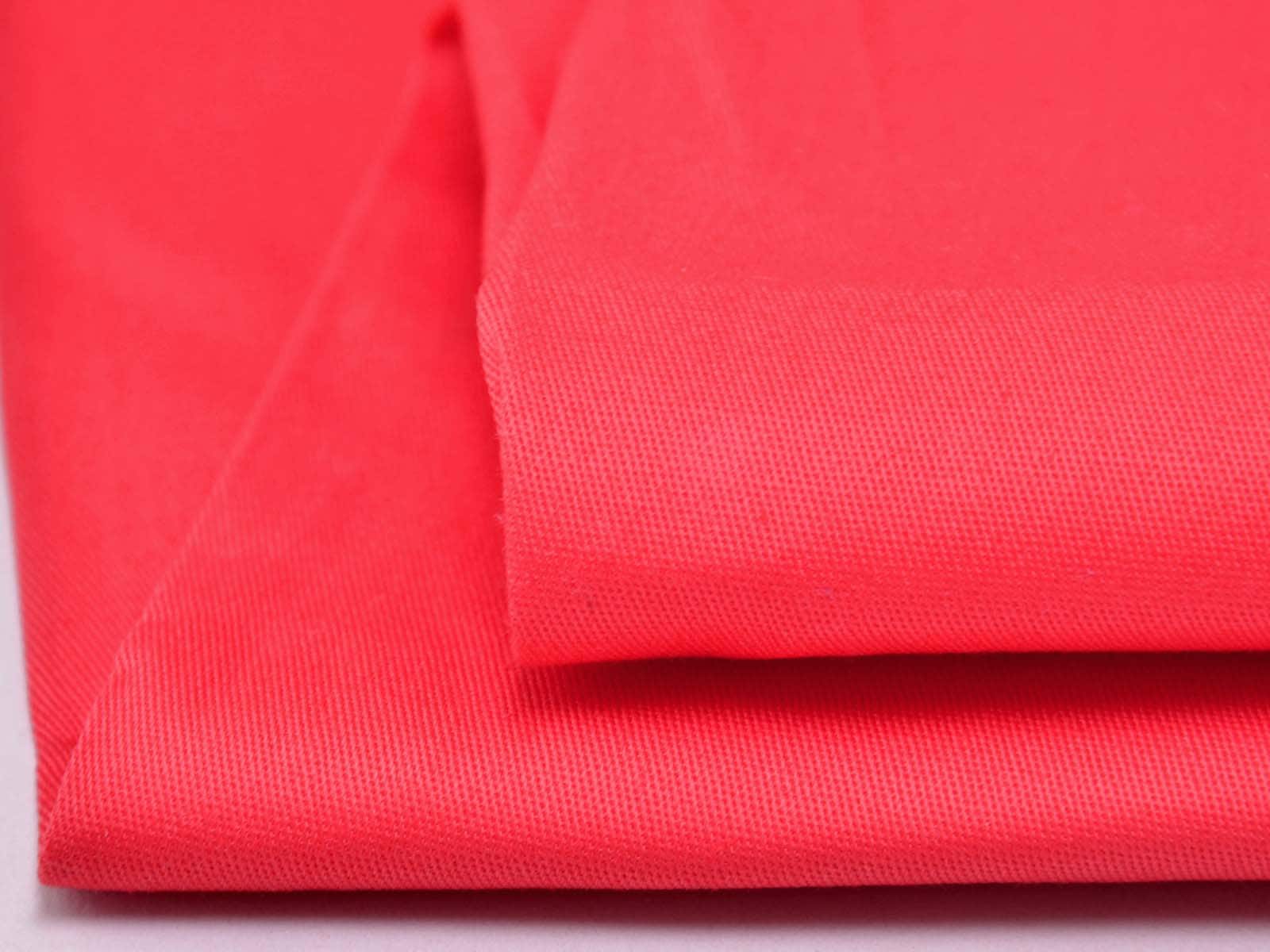 Stretch cotton woven fabric from Fibre Mood. The fabric is solid red. It has a slight sheen and a smooth finish. The fabric is firmer and has a slightly papery feel. This is the original fabric for the Fibre Mood styles "Ramona" and "Becca." Sew pants, skirts, tops, dresses, and much more with this fabric.