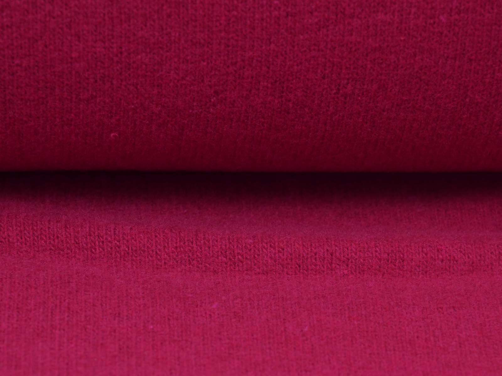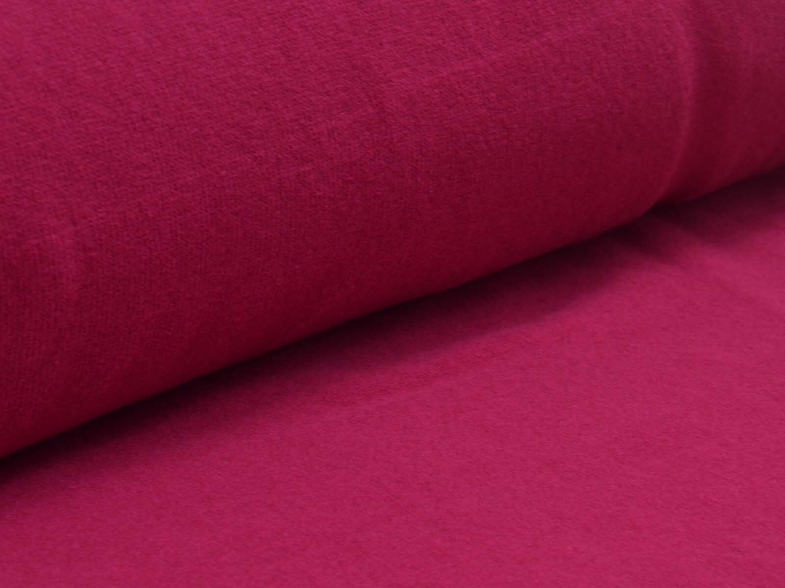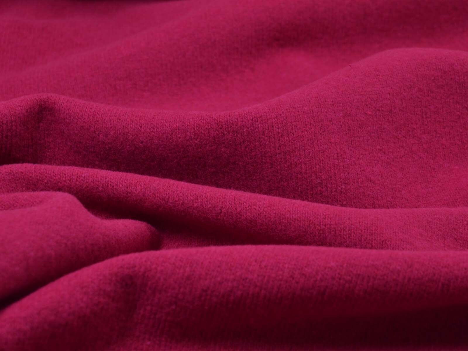 High-quality Gillo knit fabric in wine red from Hilco. This mottled knit with a high cotton content is beautifully soft and drapes loosely. It's perfect for sewing sweaters, warm dresses, and cardigans.