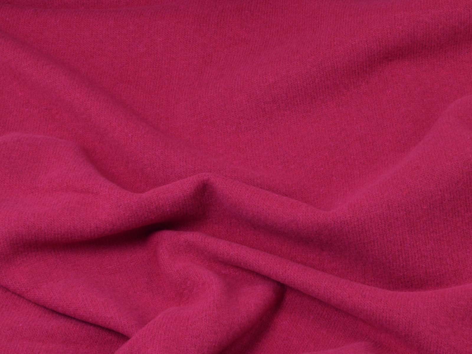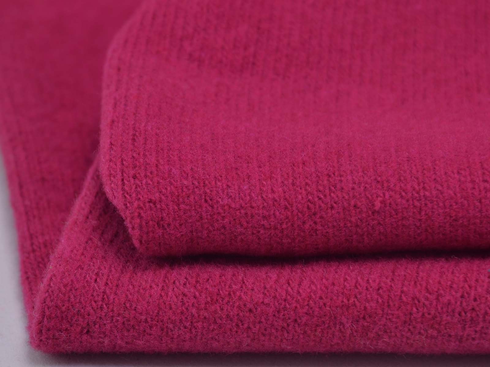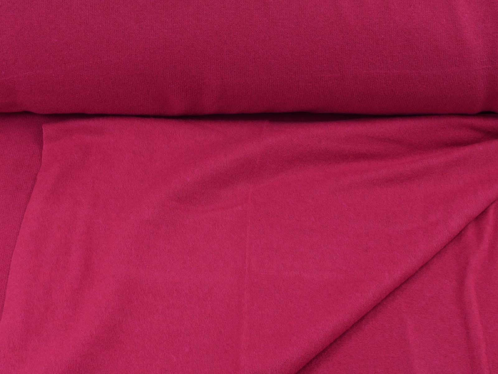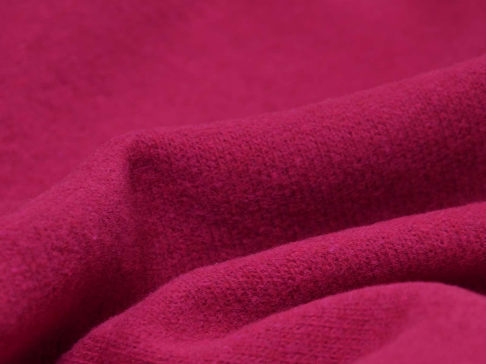 High-quality Gillo knit fabric in wine red from Hilco. This mottled knit with a high cotton content is beautifully soft and drapes loosely. It's perfect for sewing sweaters, warm dresses, and cardigans.