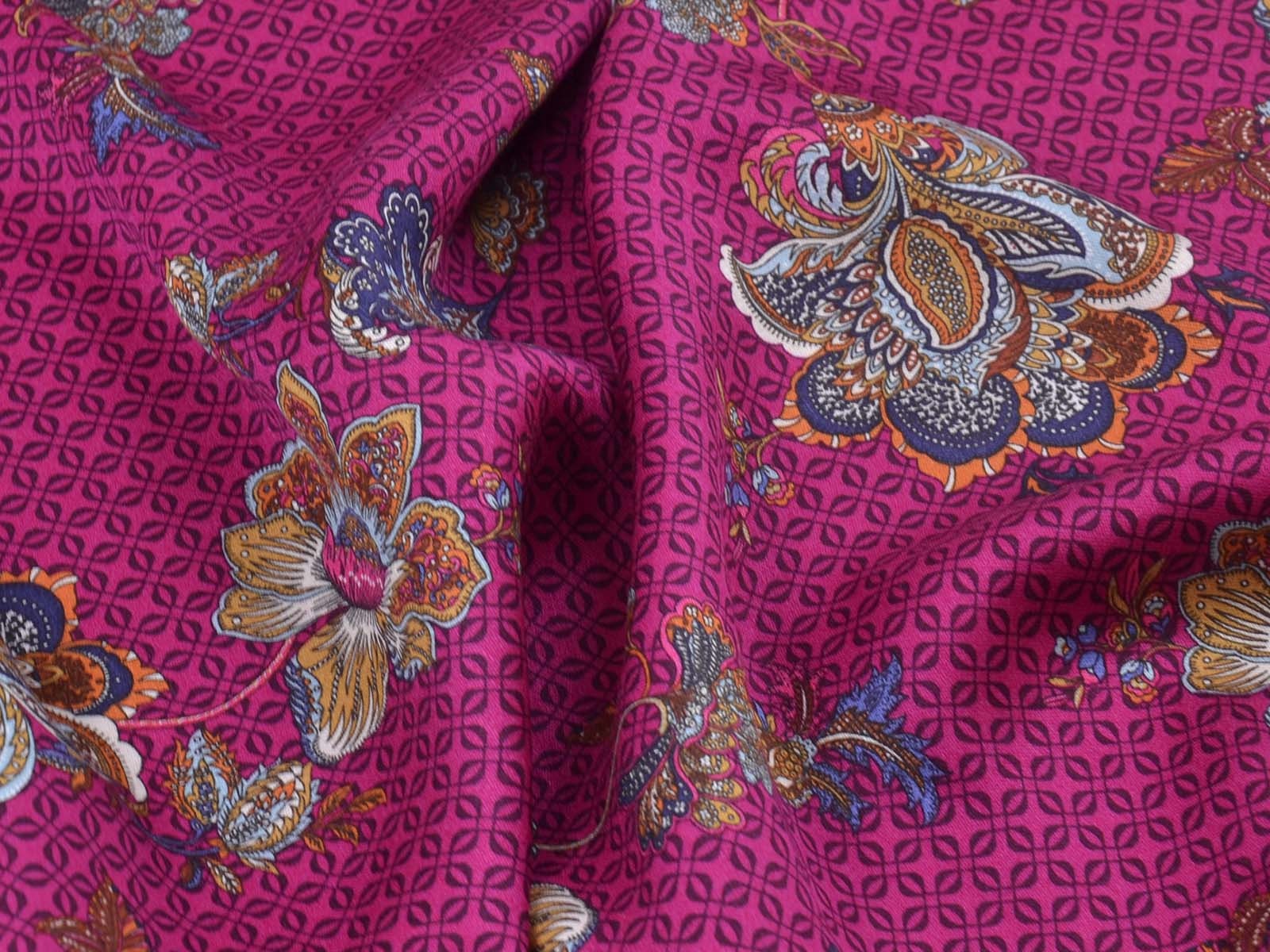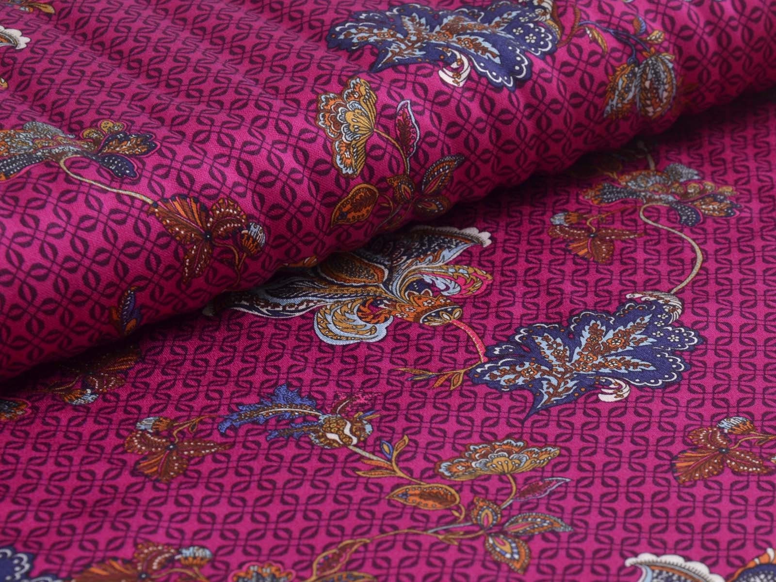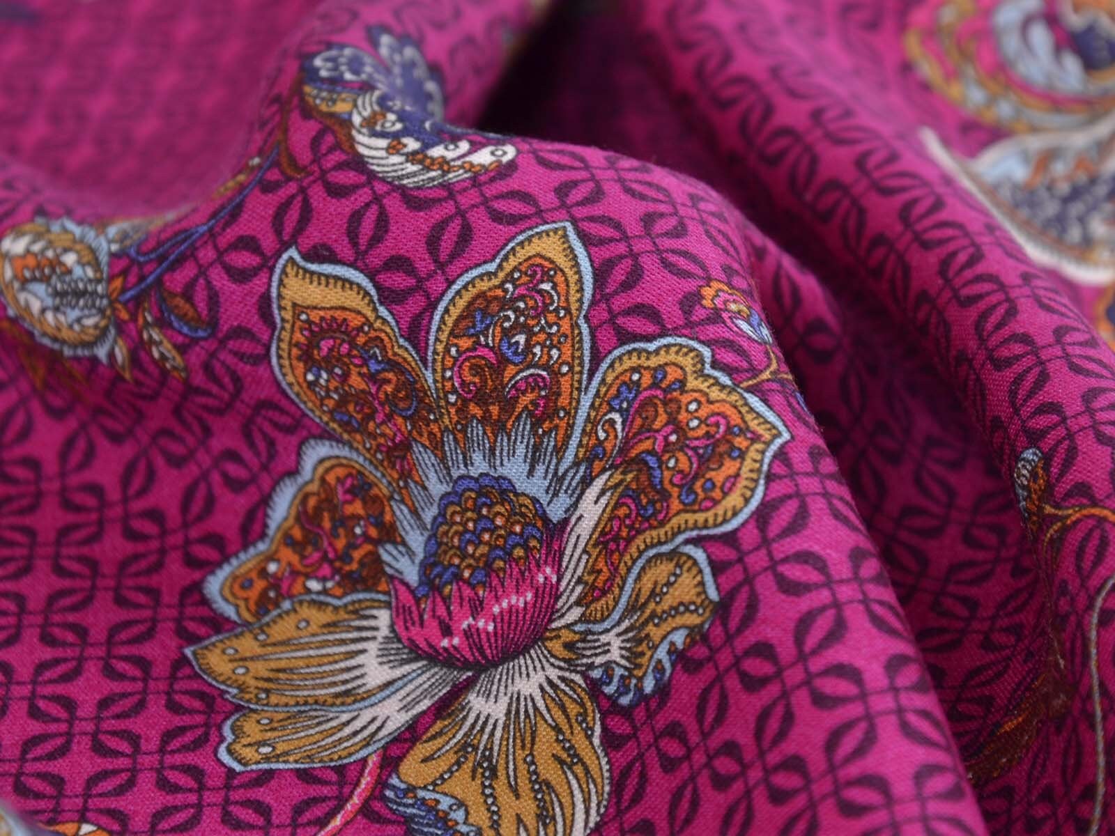 Hochwertige Webware aus Viskose aus Italien. Der Viskose-Stoff ist glatt, leicht glänzend, dünn und hat einen fließenden Fall. Nähe dir daraus Blusen, fließende Kleider, Röcke, Sommerhosen und vieles mehr.