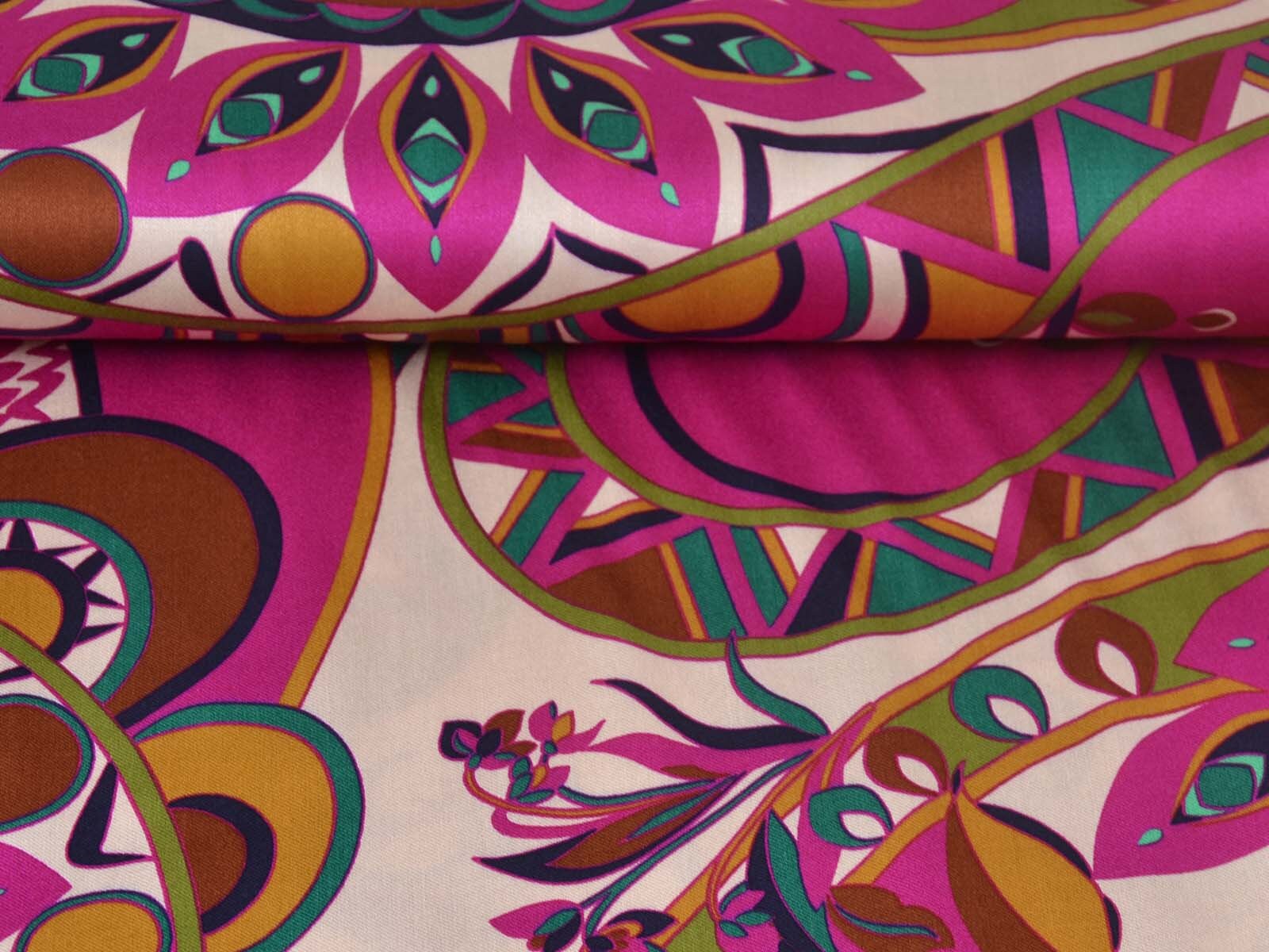 Hochwertige Webware aus Viskose aus Italien. Der Viskose-Satin ist glatt, glänzend, dünn und hat einen fließenden Fall. Nähe dir daraus Blusen, fließende Kleider, Röcke, Sommerhosen und vieles mehr.