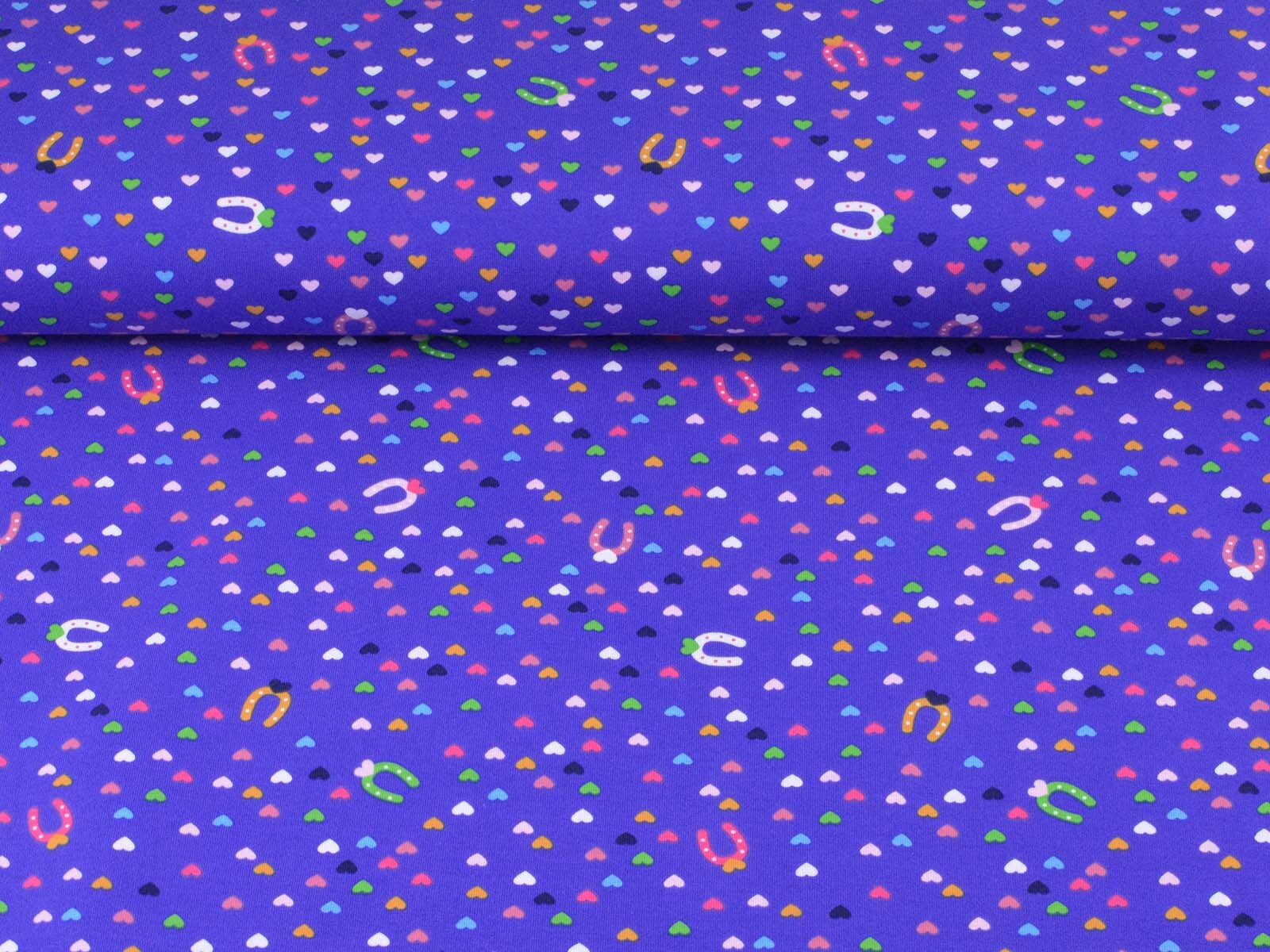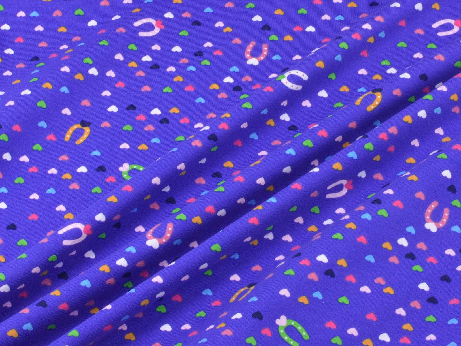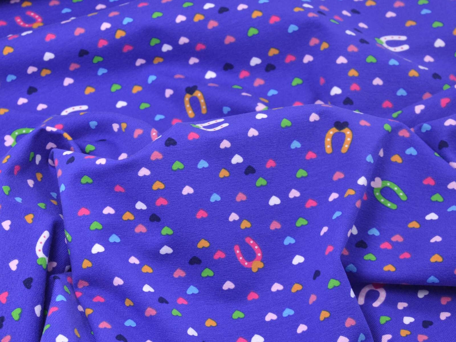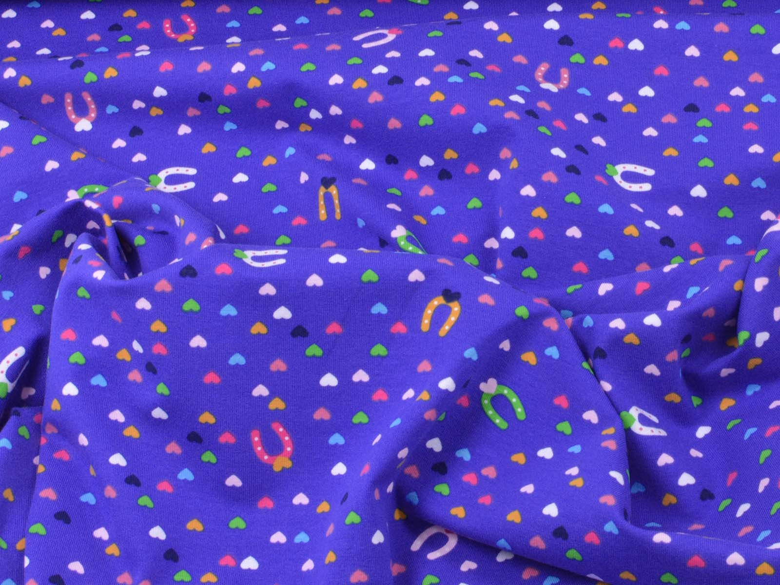 Jersey für Kinder aus Baumwolle made in Italy. Der Stoff mit Herzen ist dünn, glatt, matt und gemustert. Nähe daraus T-Shirts, Leggings, Kleider, Pumphosen und so vieles mehr.