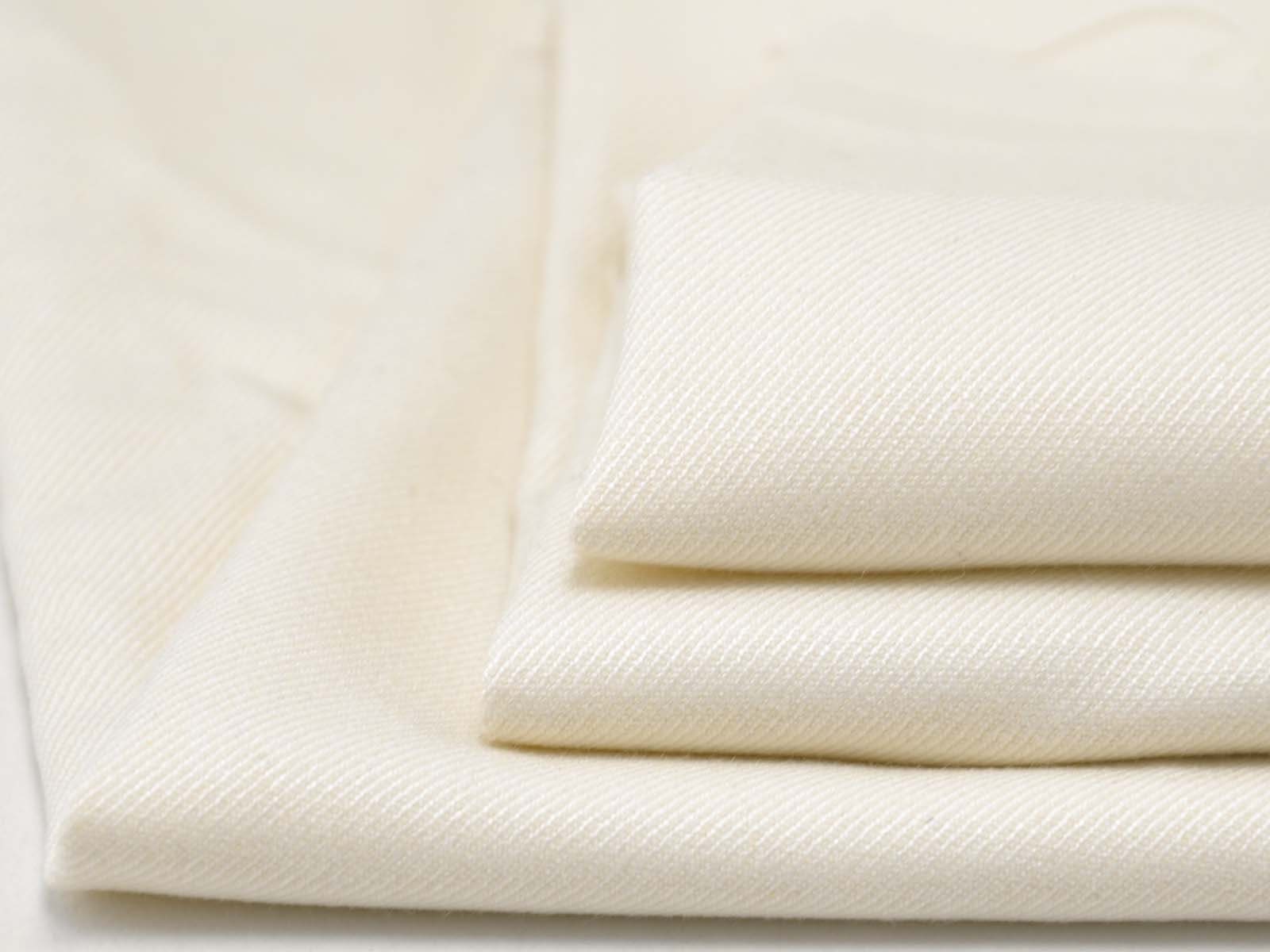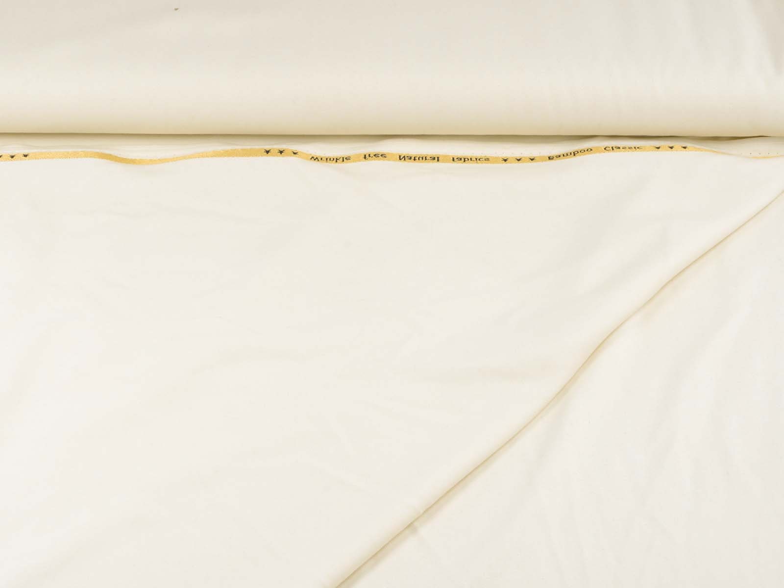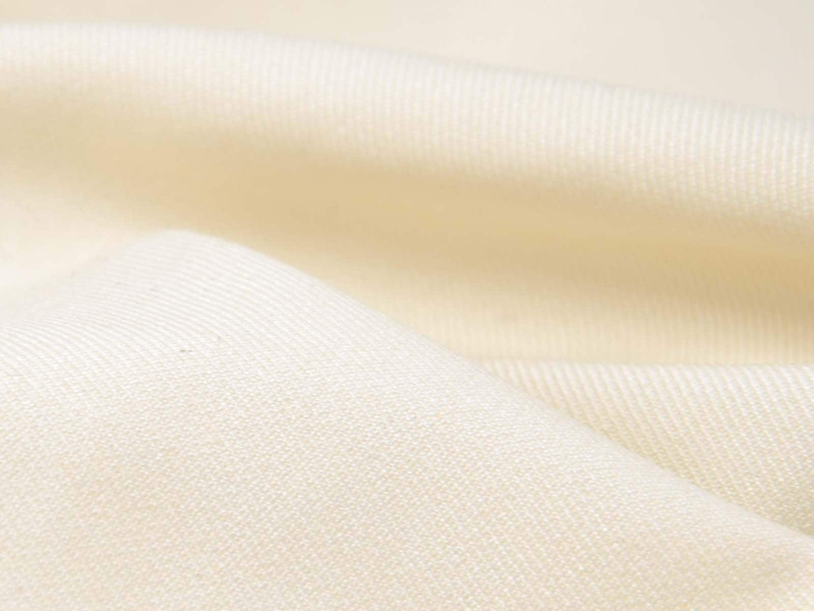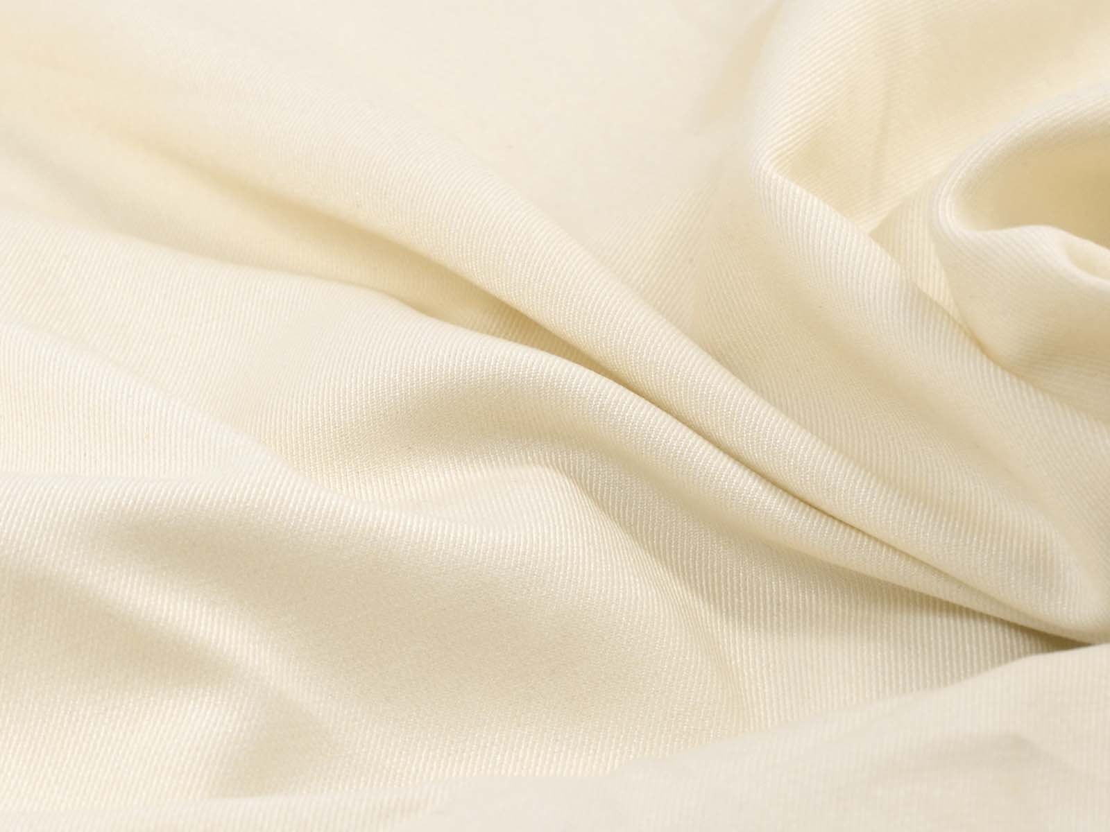 Eggshell-colored stretchy trouser fabric made from bamboo and recycled polyester. The fabric is thin, medium-weight, and has a flowing drape. Sew great dresses, skirts, trousers, and much more with it.