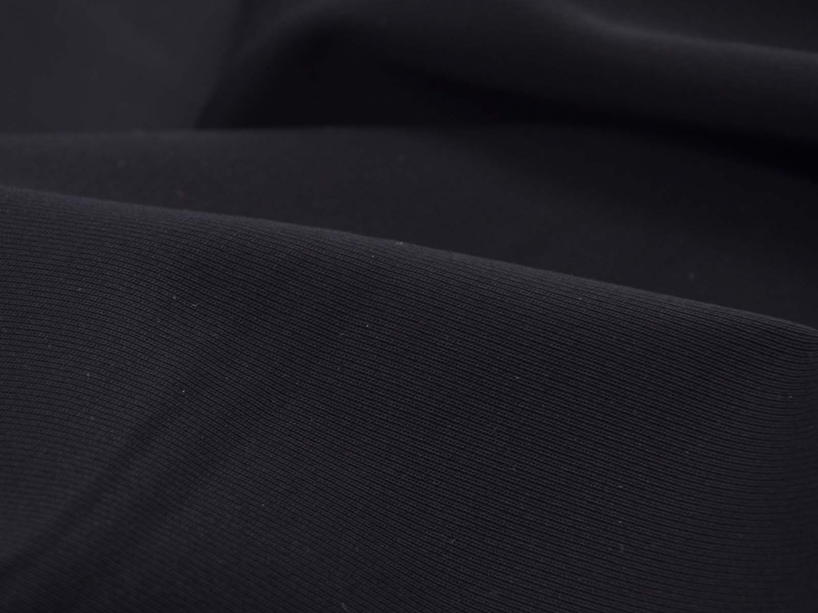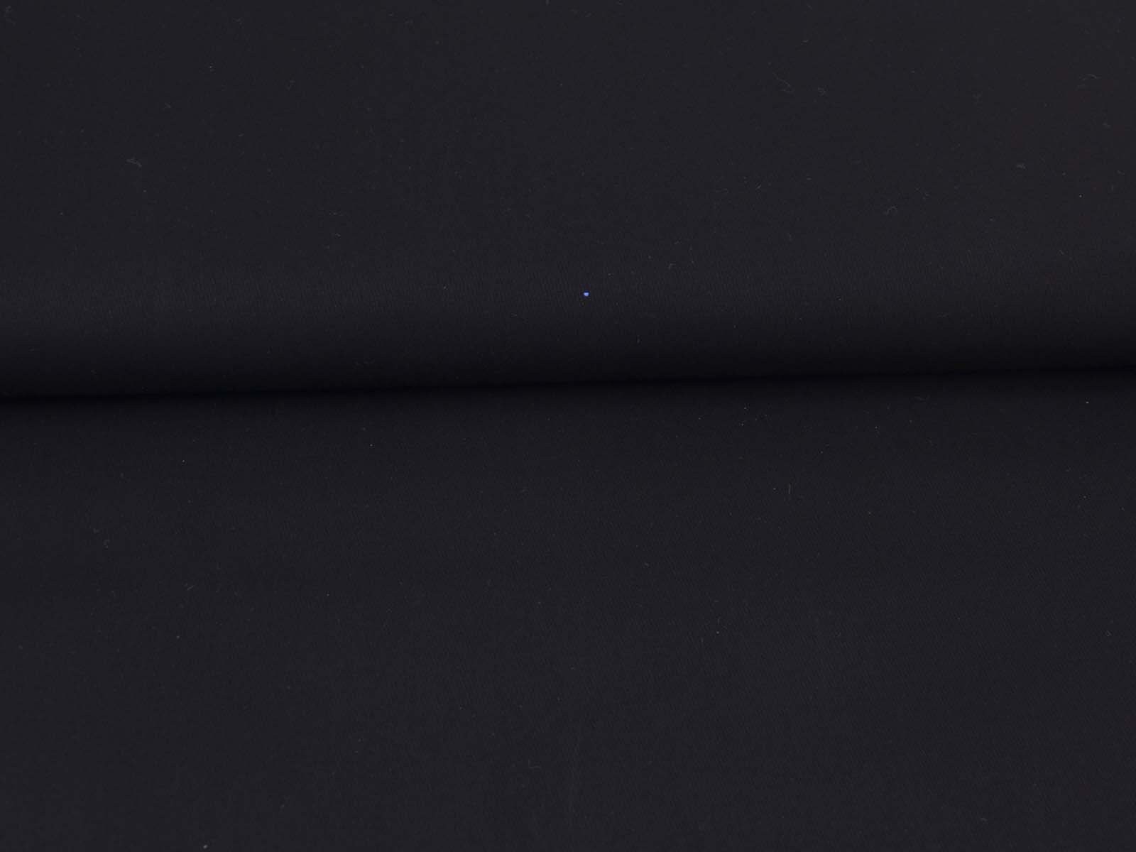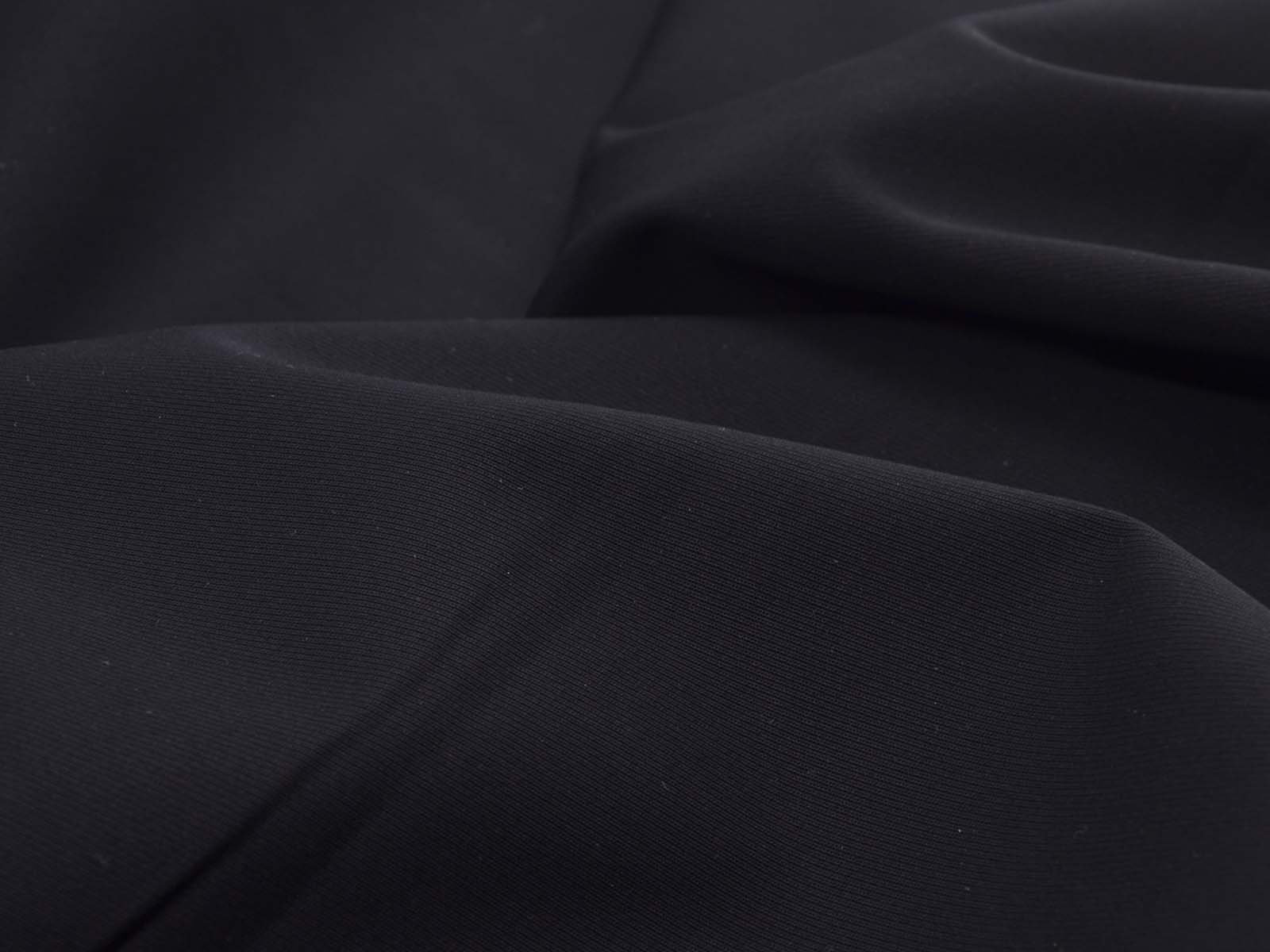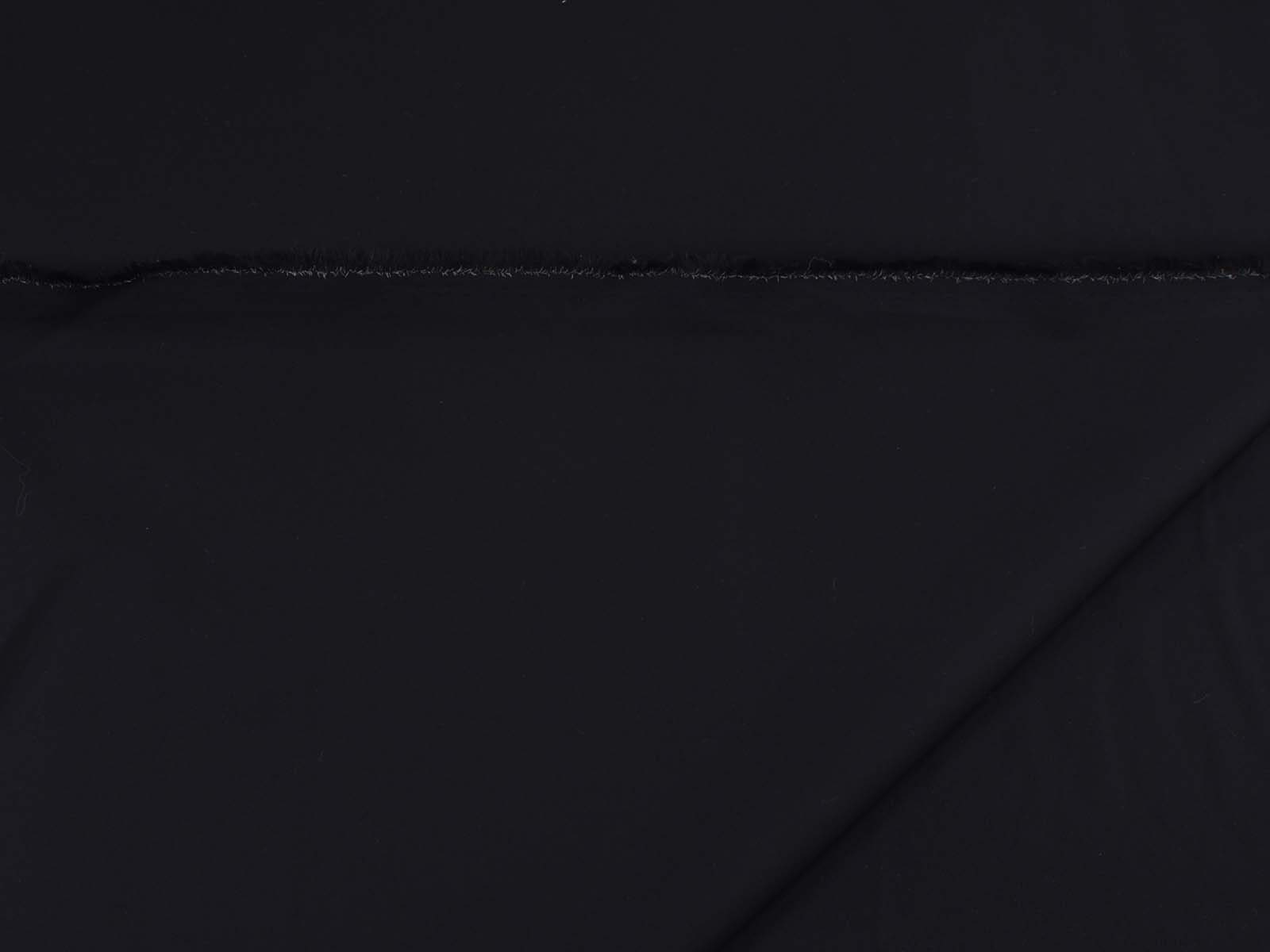 Woven cotton fabric with stretch in plain black. The fabric is smooth, slightly shiny, thin, stretchy, and has a rather flowing drape. It's suitable for sewing trousers, dresses, skirts, and much more.
