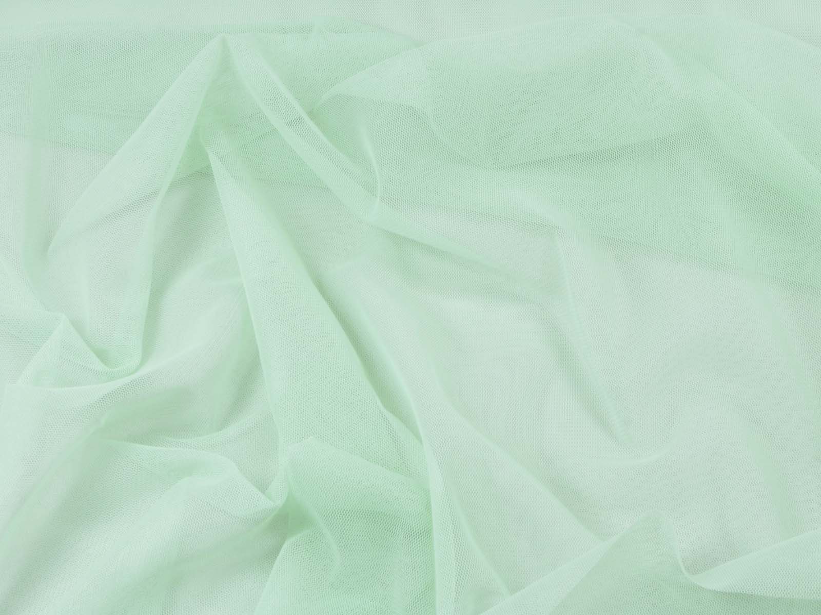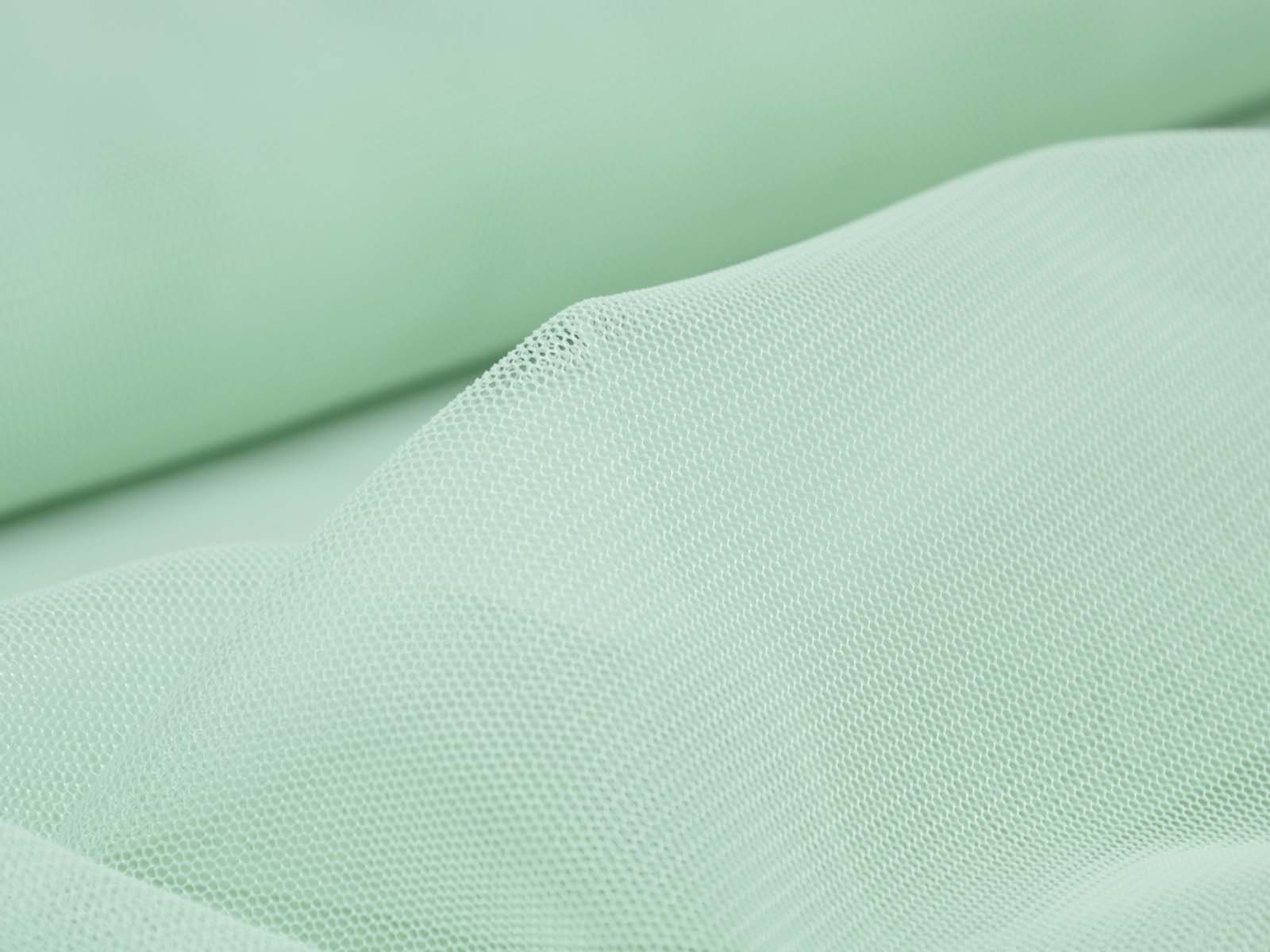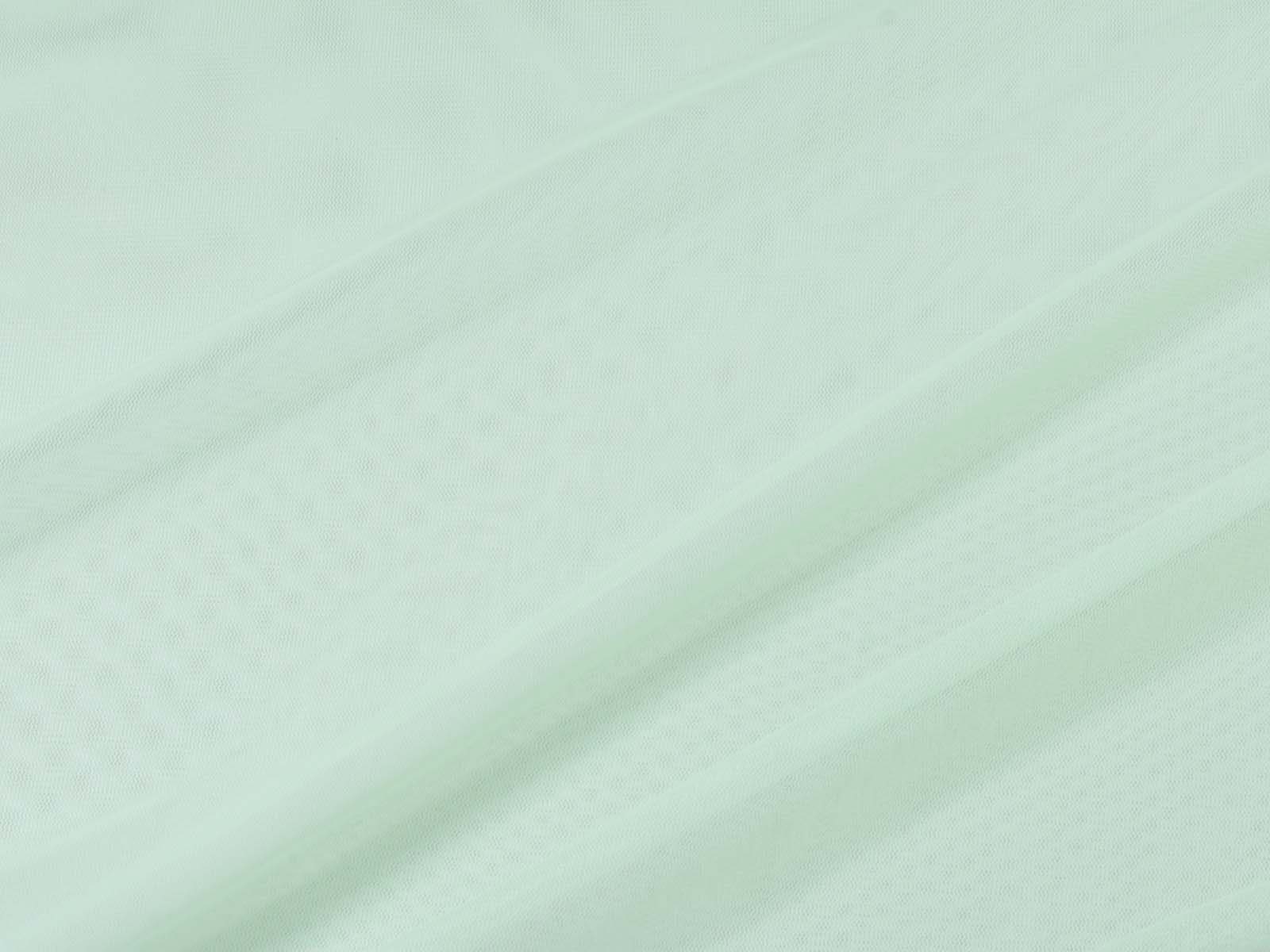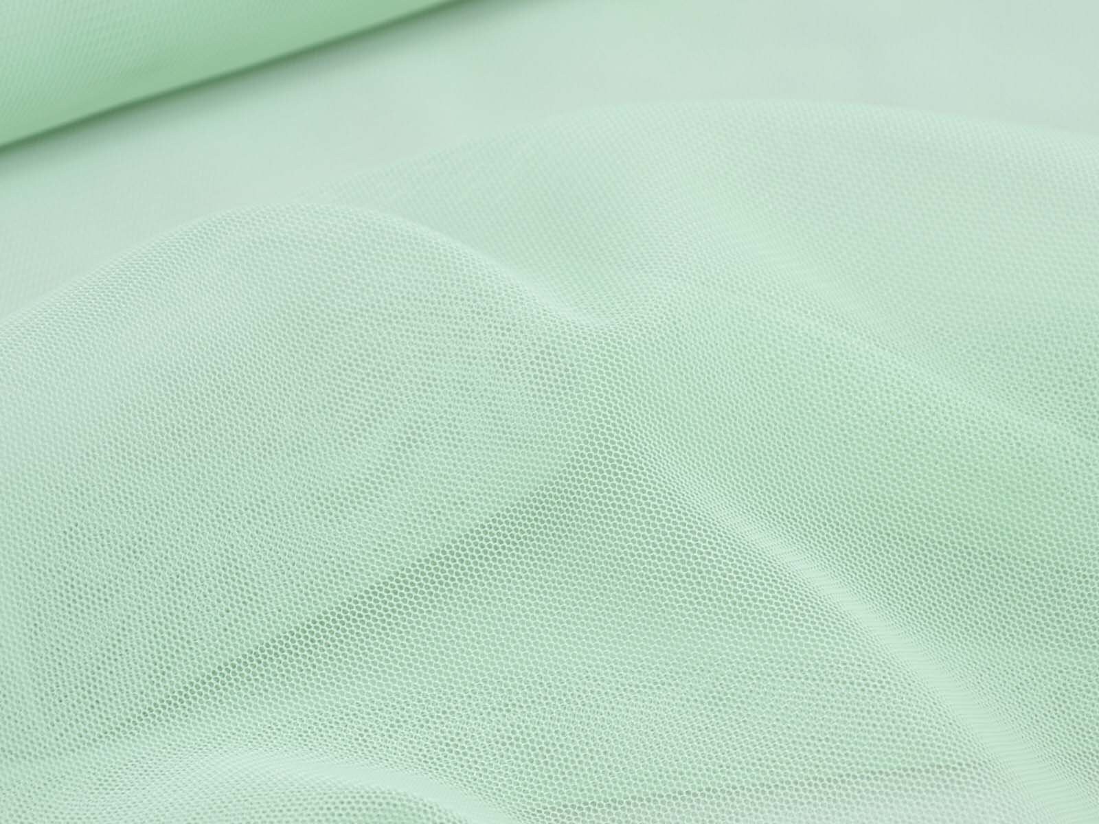 Tüllstoff fein in mint grün. Der Stoff ist dünn, leicht, halb transparent, leicht dehnbar und hat einen fließenden Fall. Er eignet sich zum Nähen von Röcken, Kleidern, für Karnevalskostüme und vieles mehr.