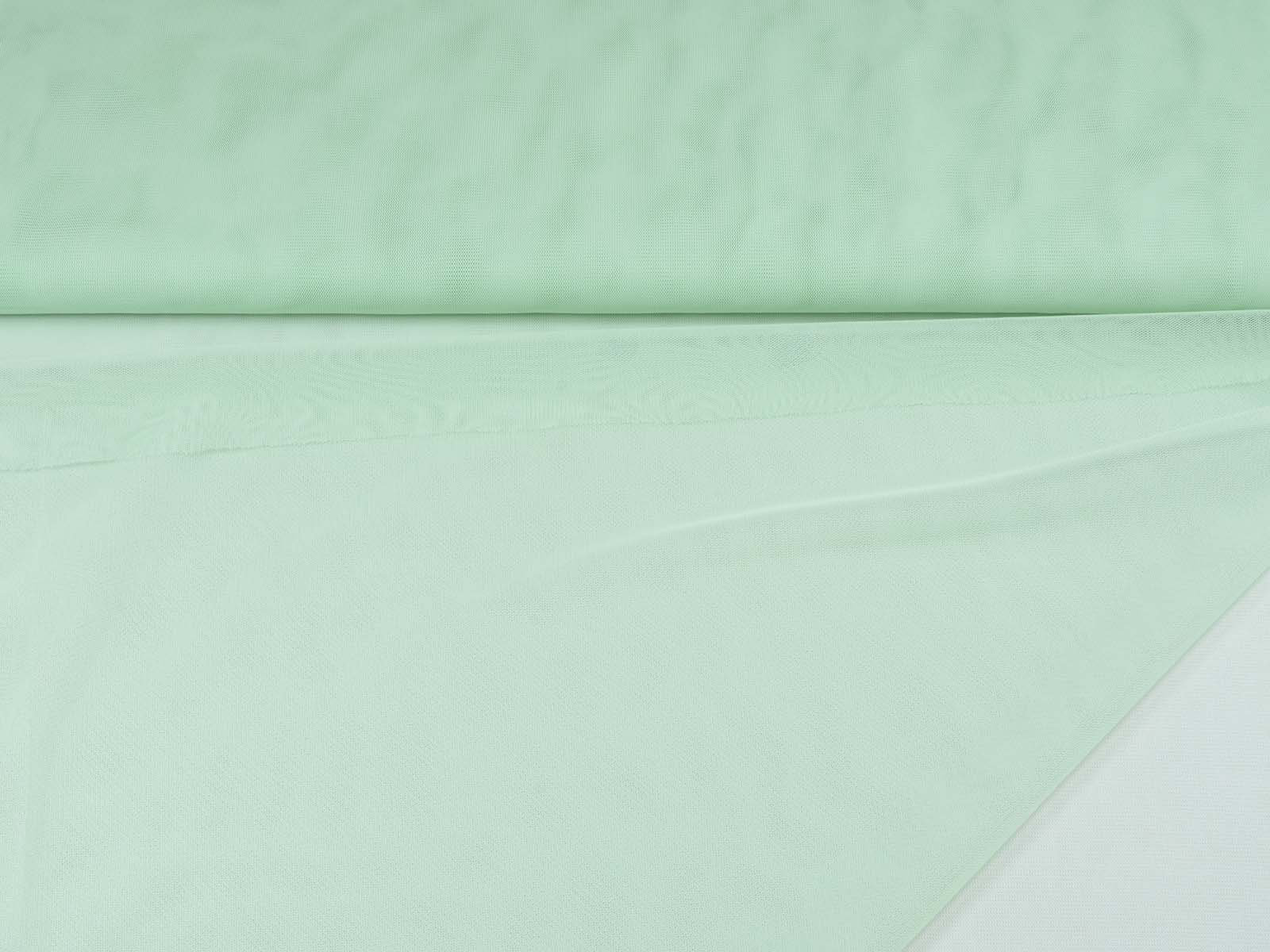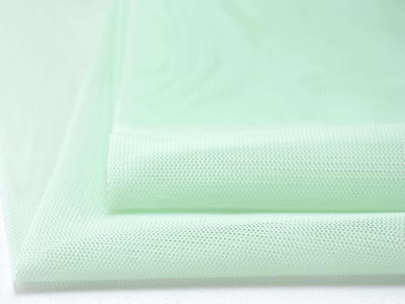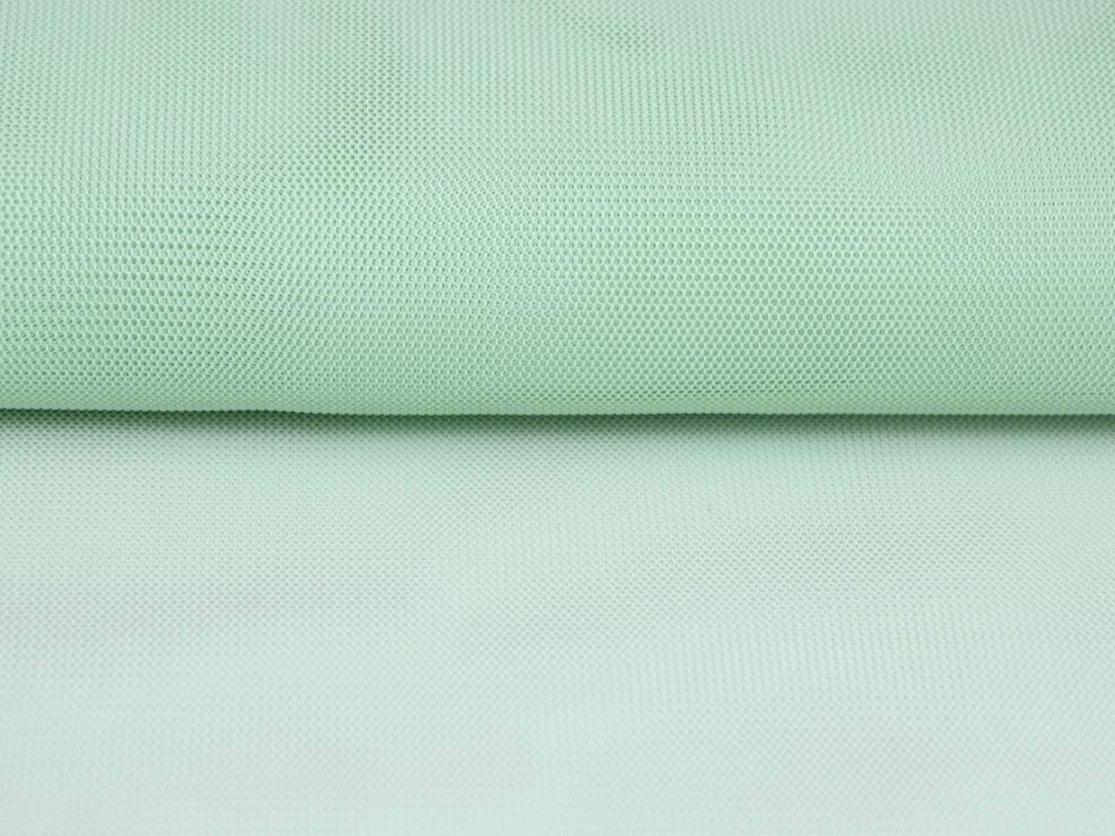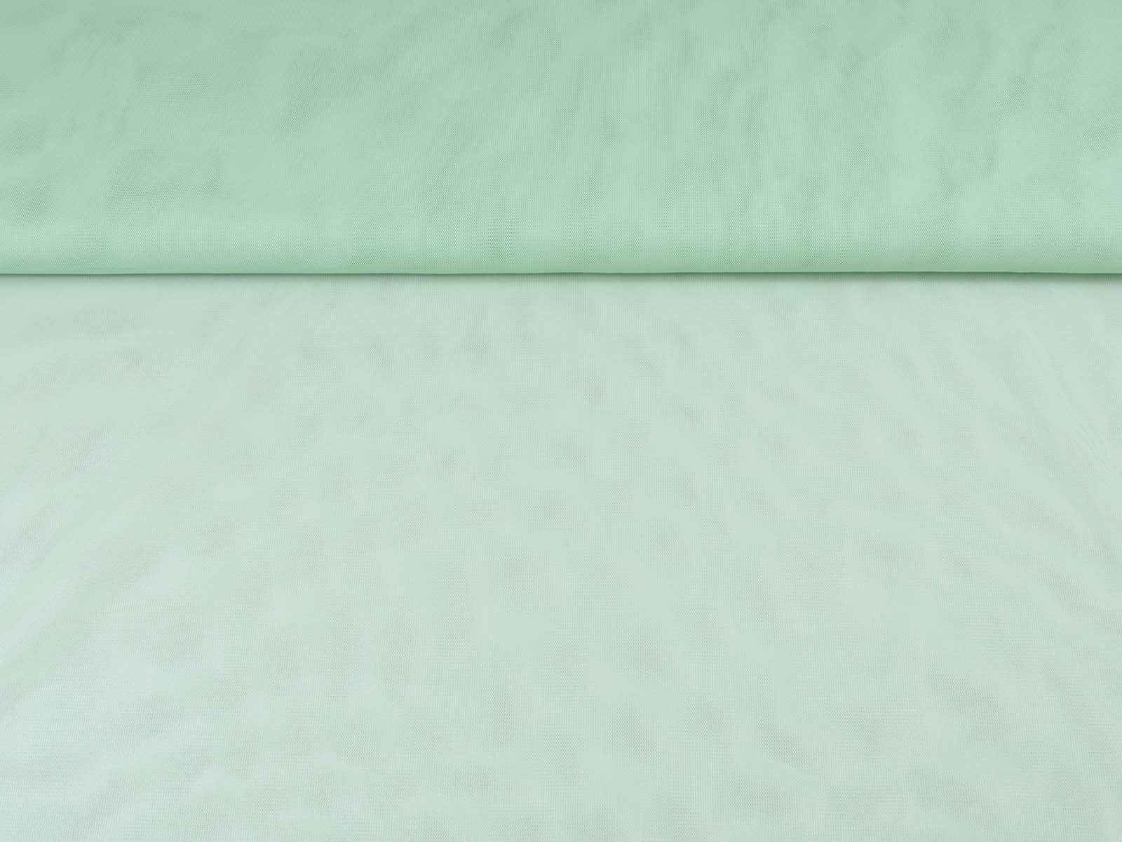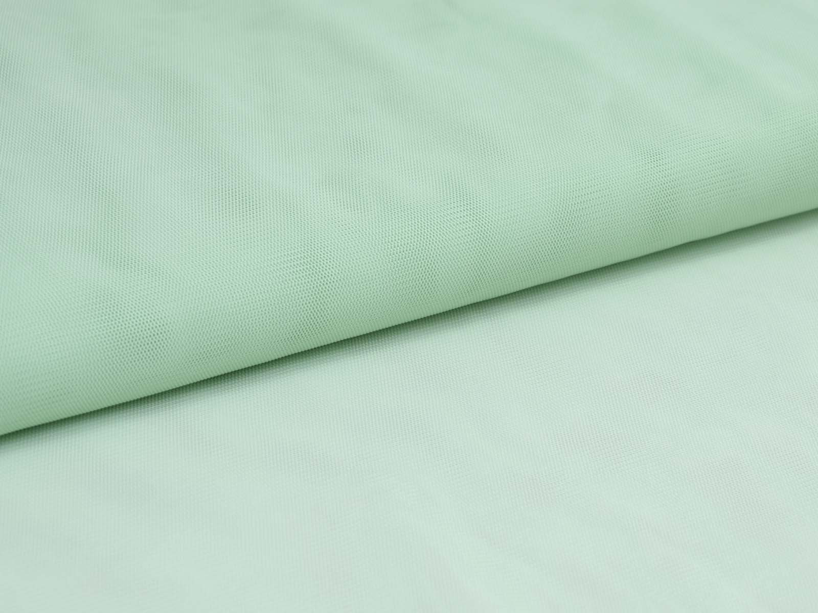 Tüllstoff fein in mint grün. Der Stoff ist dünn, leicht, halb transparent, leicht dehnbar und hat einen fließenden Fall. Er eignet sich zum Nähen von Röcken, Kleidern, für Karnevalskostüme und vieles mehr.