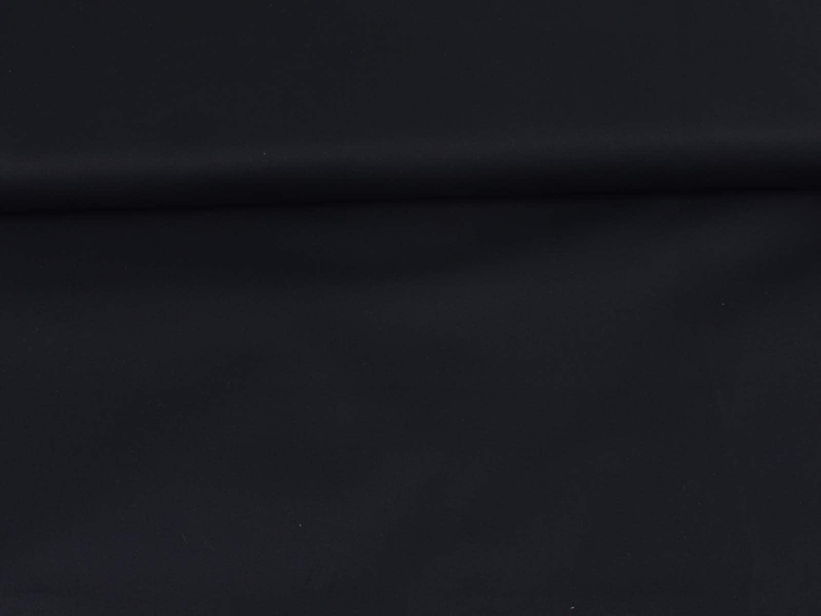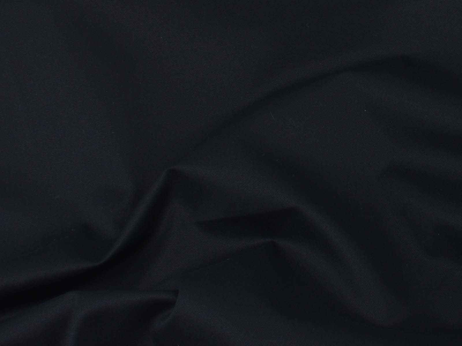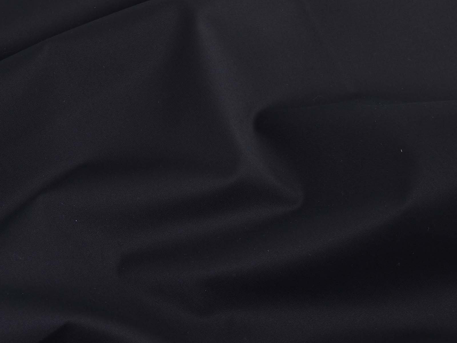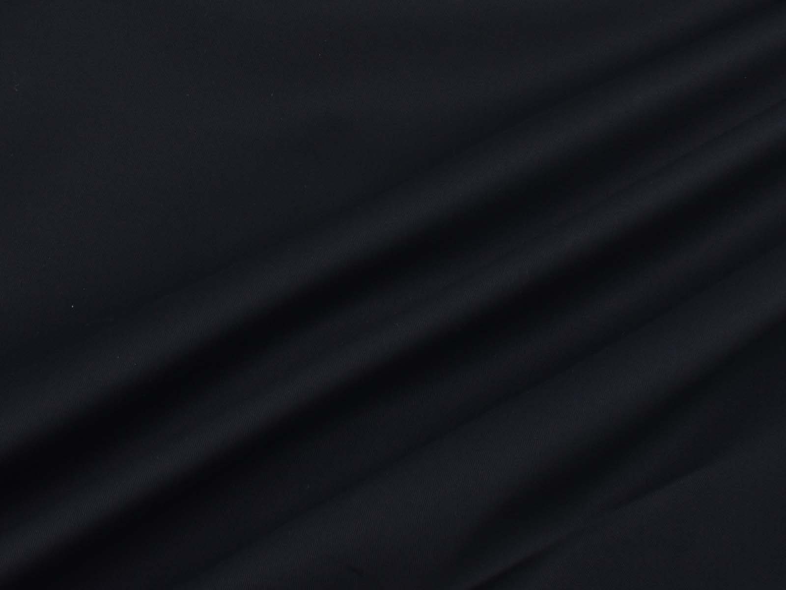 Woven cotton fabric with stretch in plain black. The fabric is smooth, slightly shiny, thin, strong, and stretchy. It is suitable for sewing trousers, dresses, skirts, and much more.