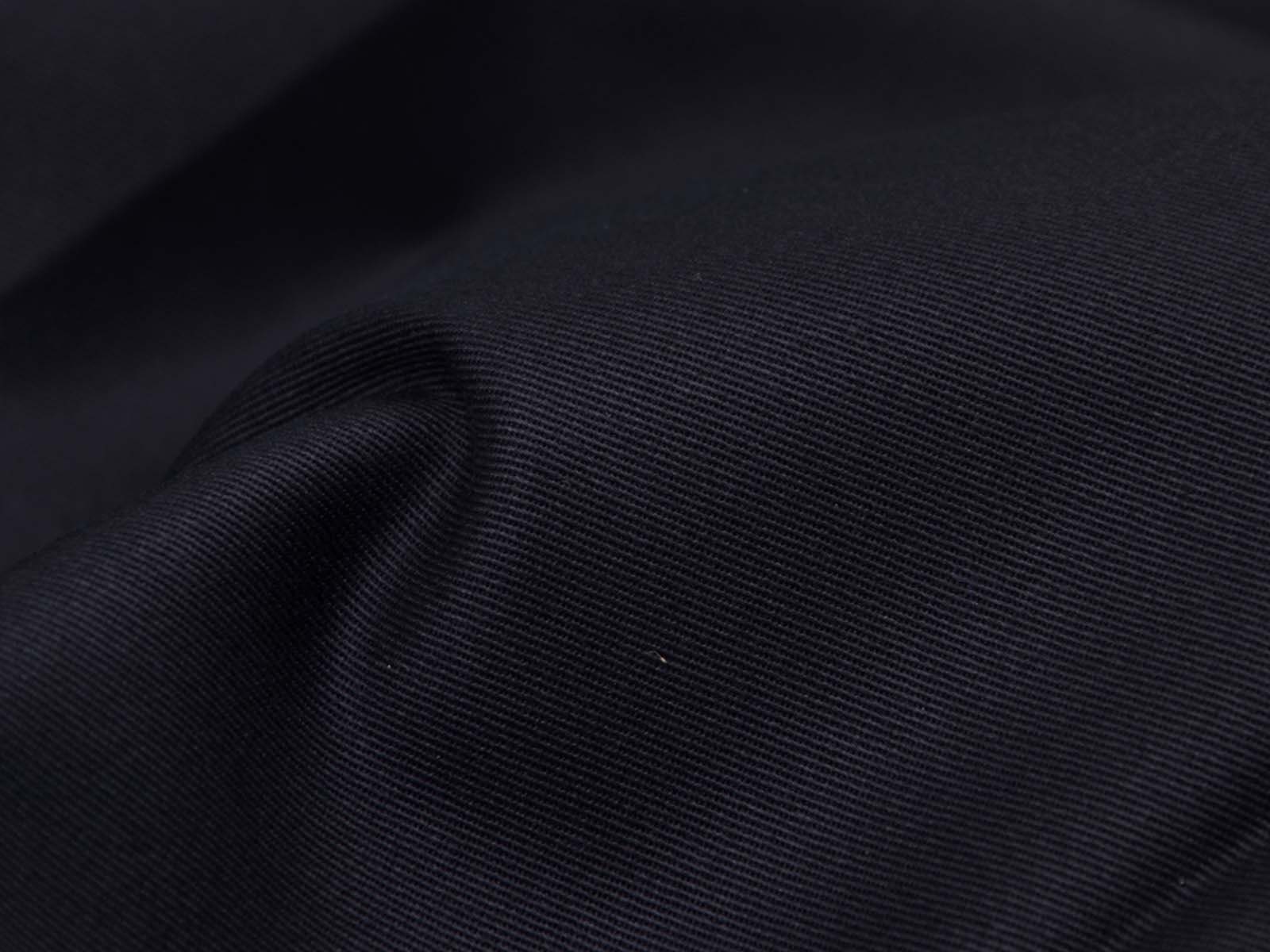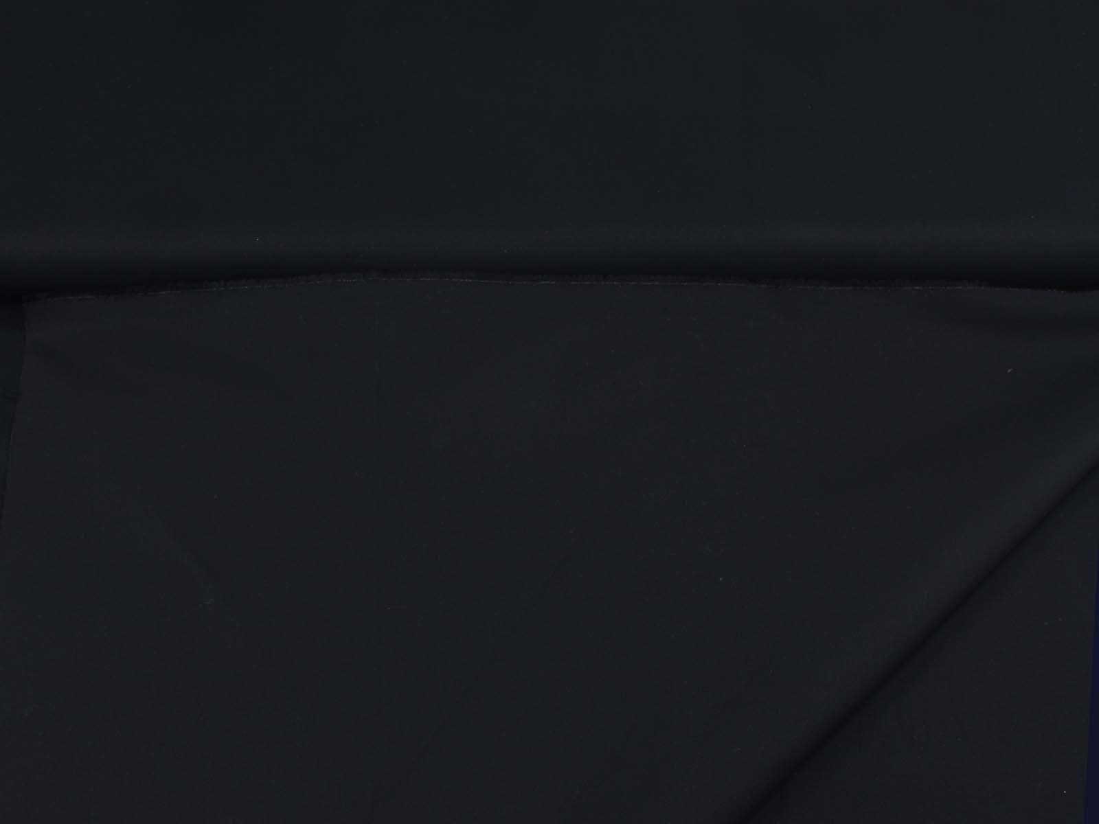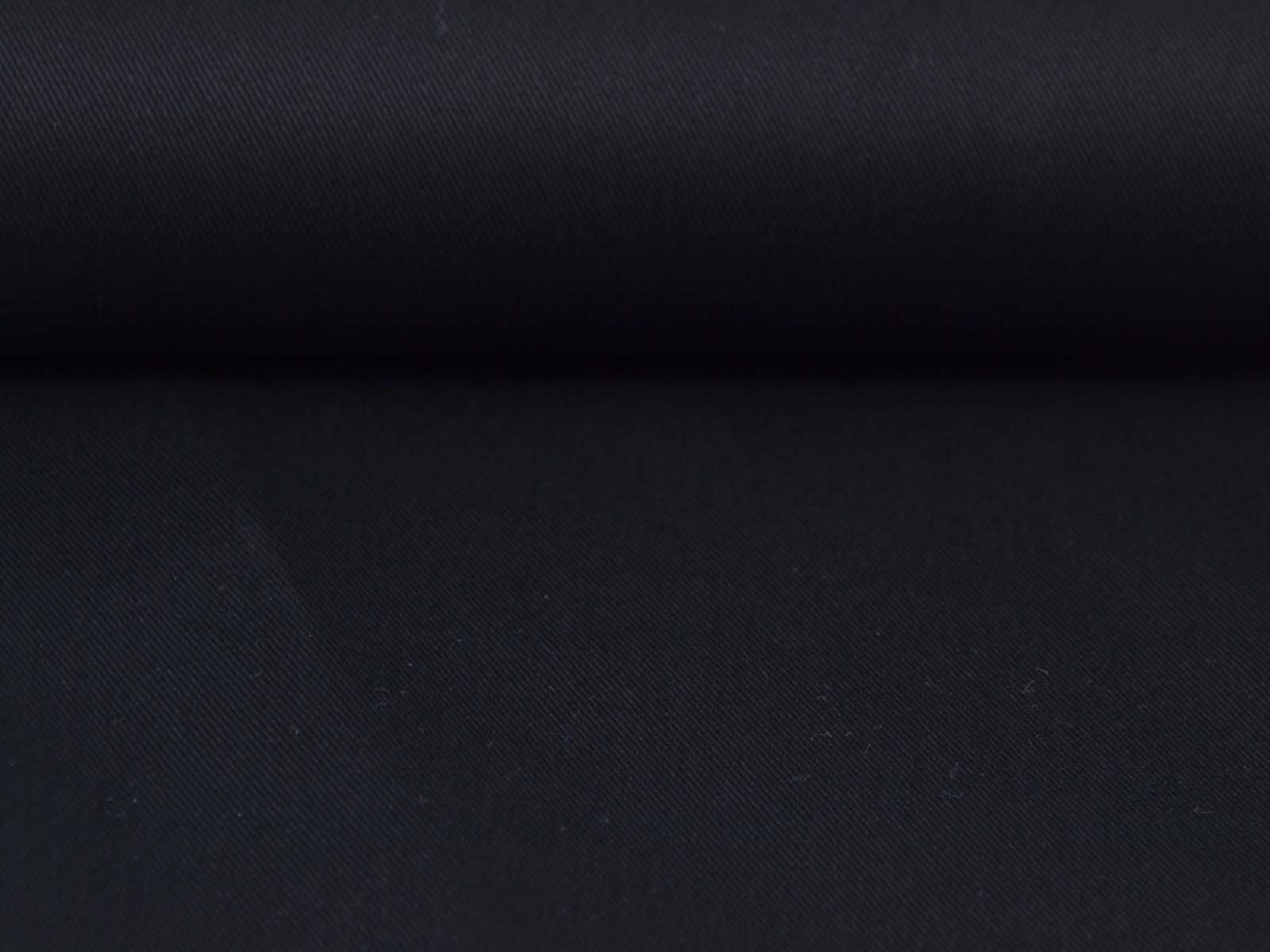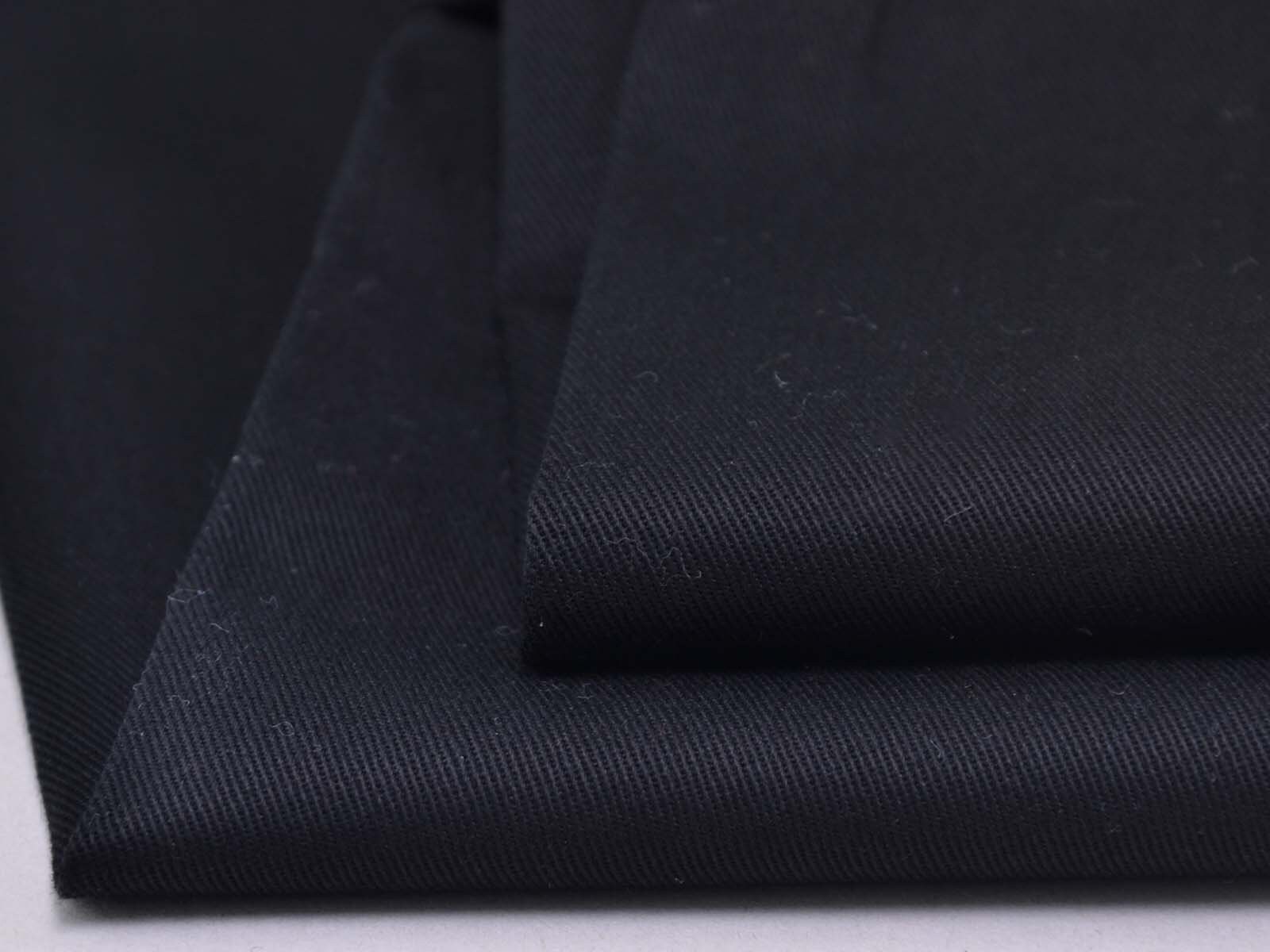 Woven cotton fabric with stretch in plain black. The fabric is smooth, slightly shiny, thin, strong, and stretchy. It is suitable for sewing trousers, dresses, skirts, and much more.