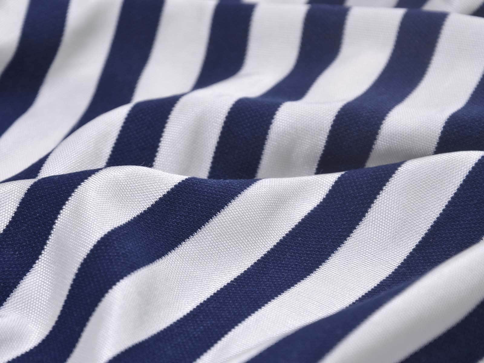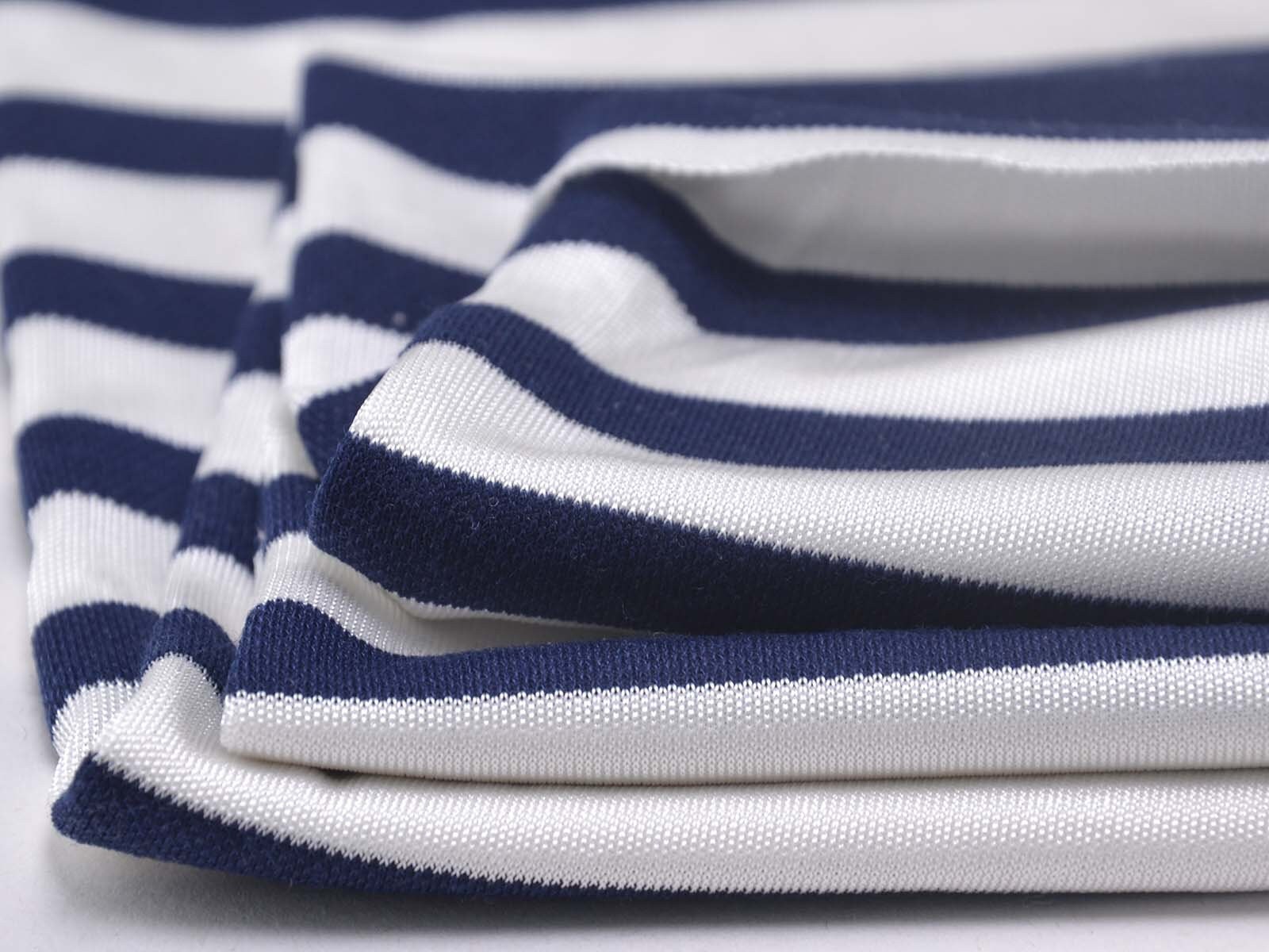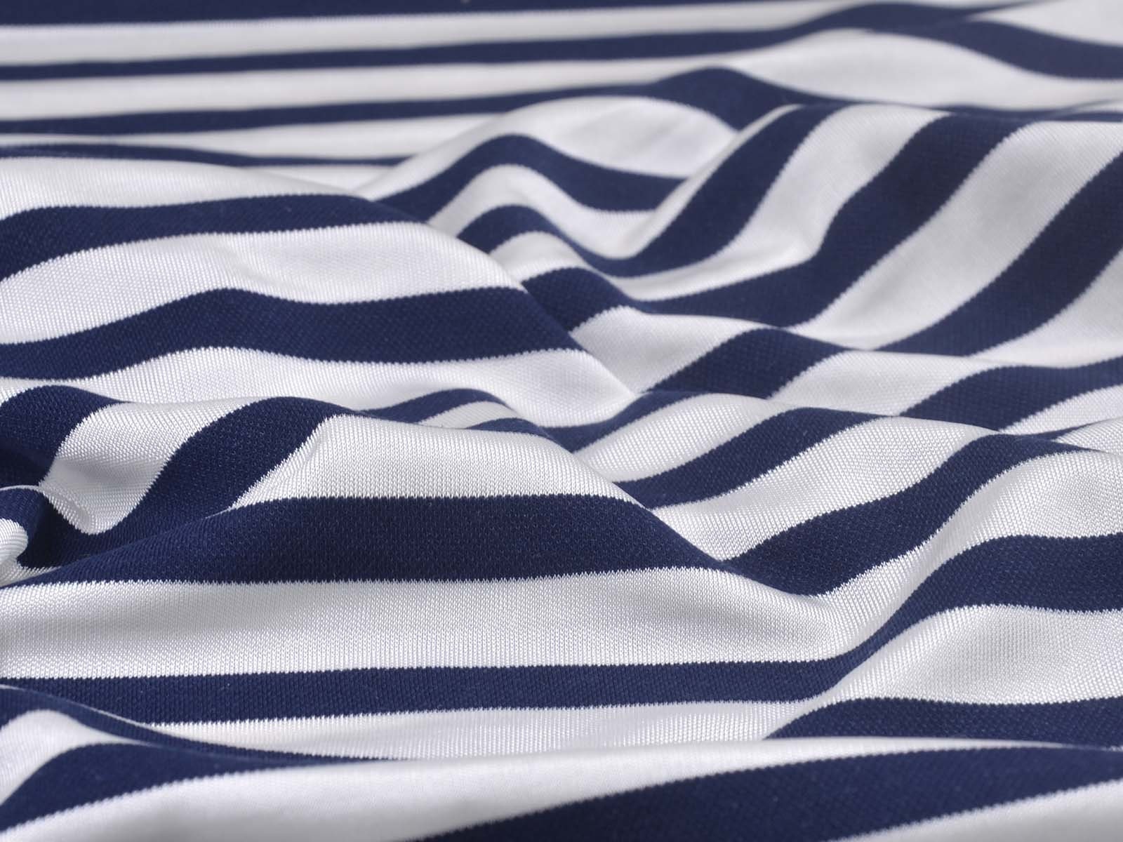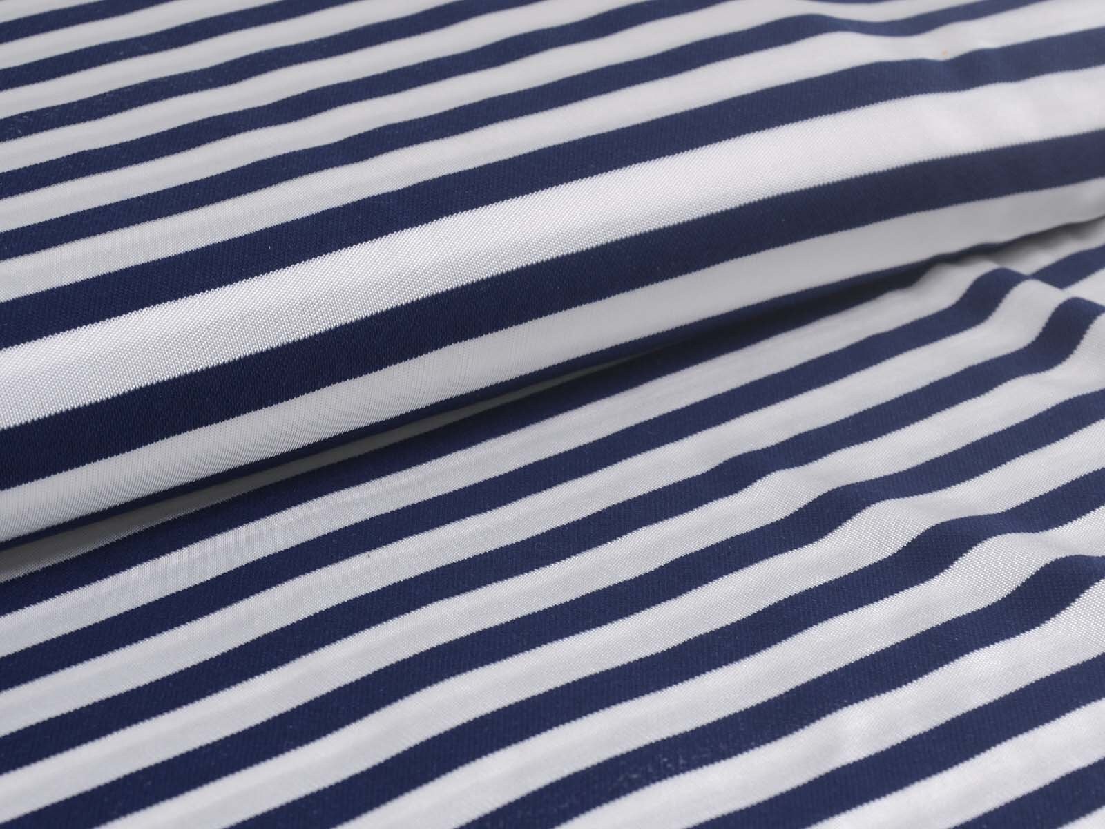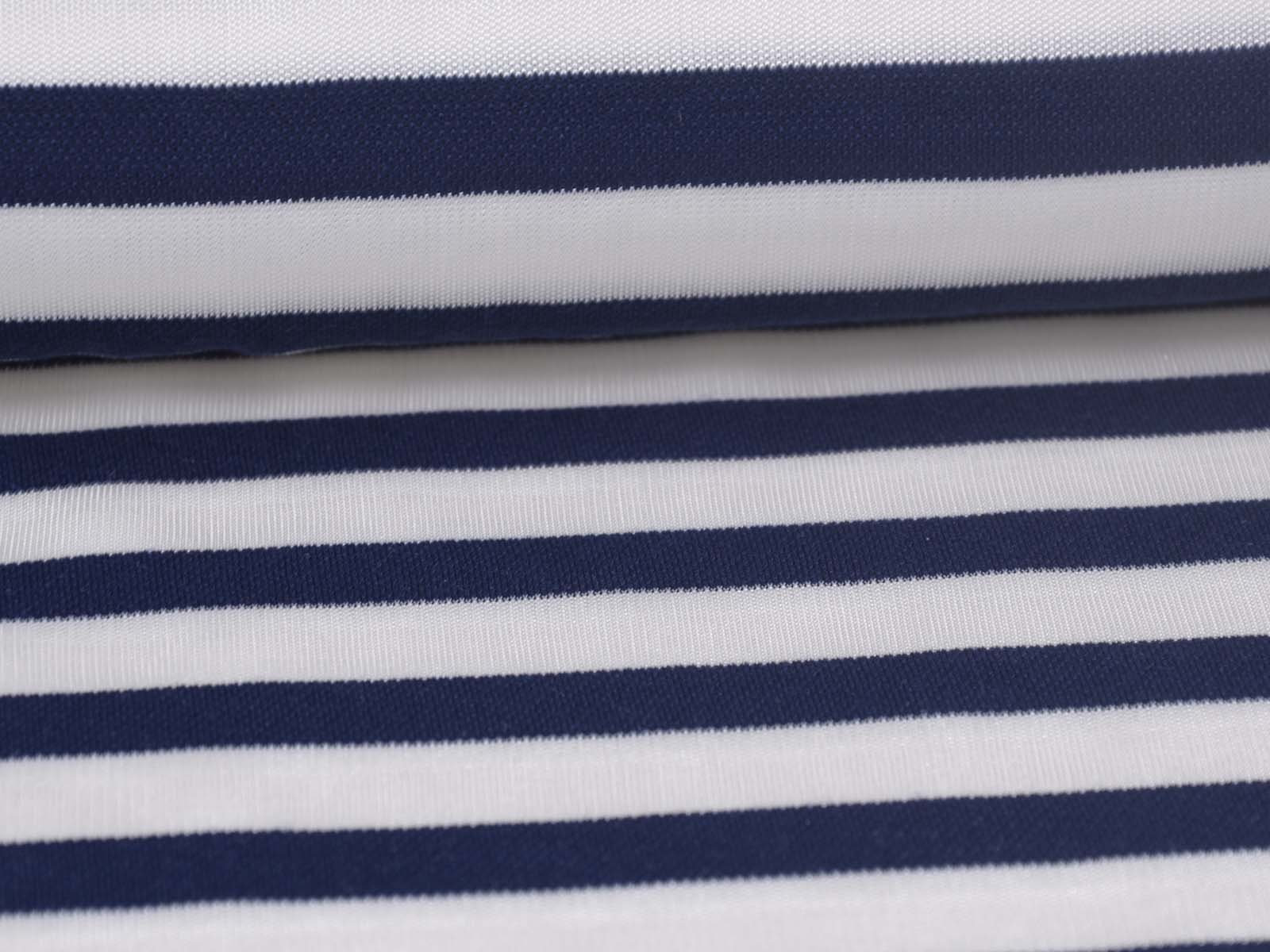 Dünner Jersey aus 100% Viskose. Der Stoff ist glatt, gestreift und hat einen fließenden Fall. Der weiße Streifen ist ca. 1,4 cm breit, der blaue Streifen ist ca. 1,1 cm breit. Nähe dir aus dem Stoff tolle Sommershirts, fließende Kleider und vieles mehr.