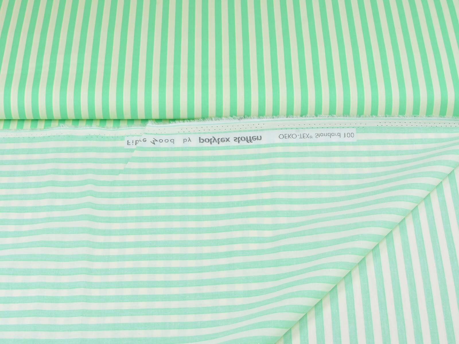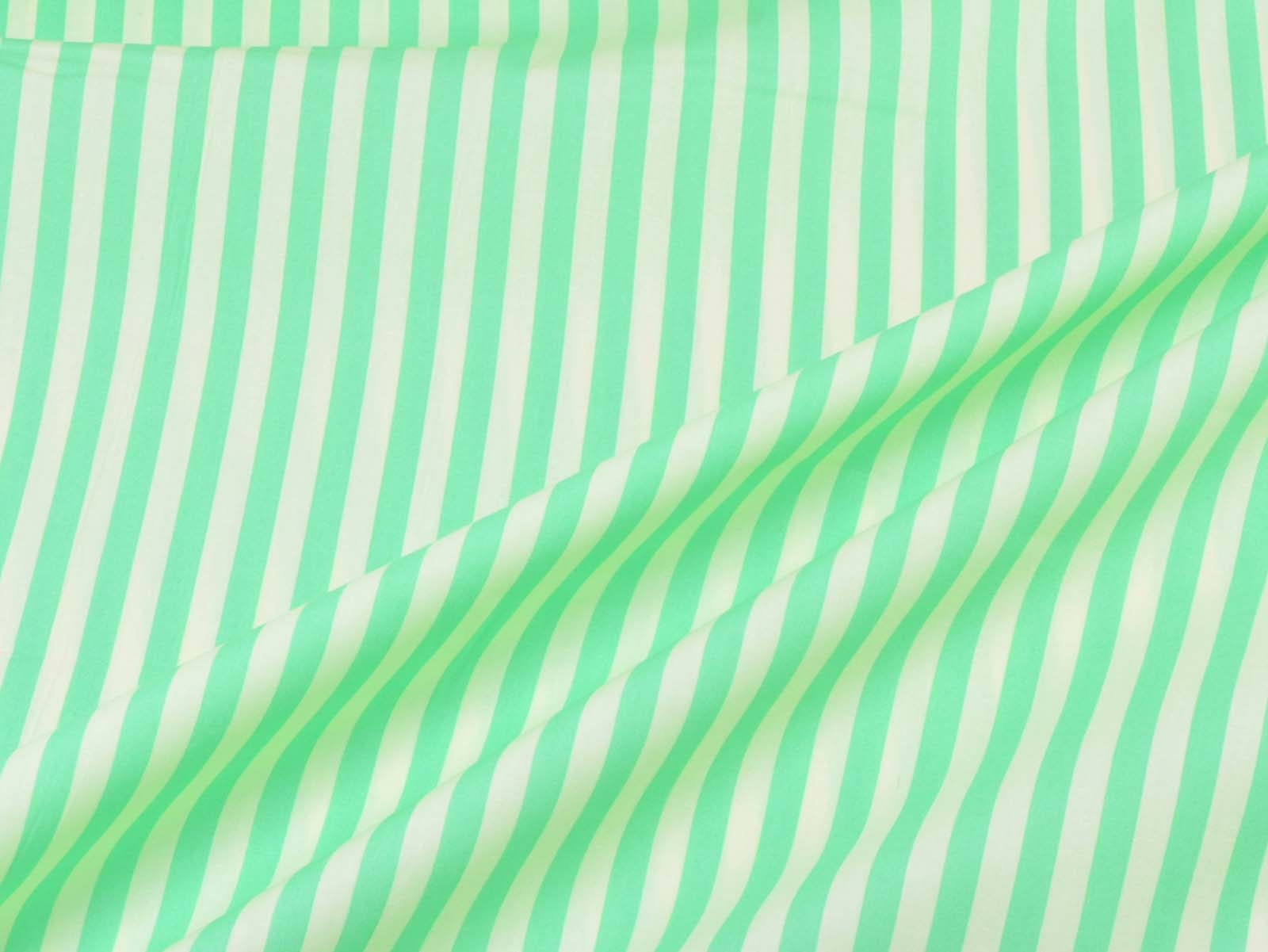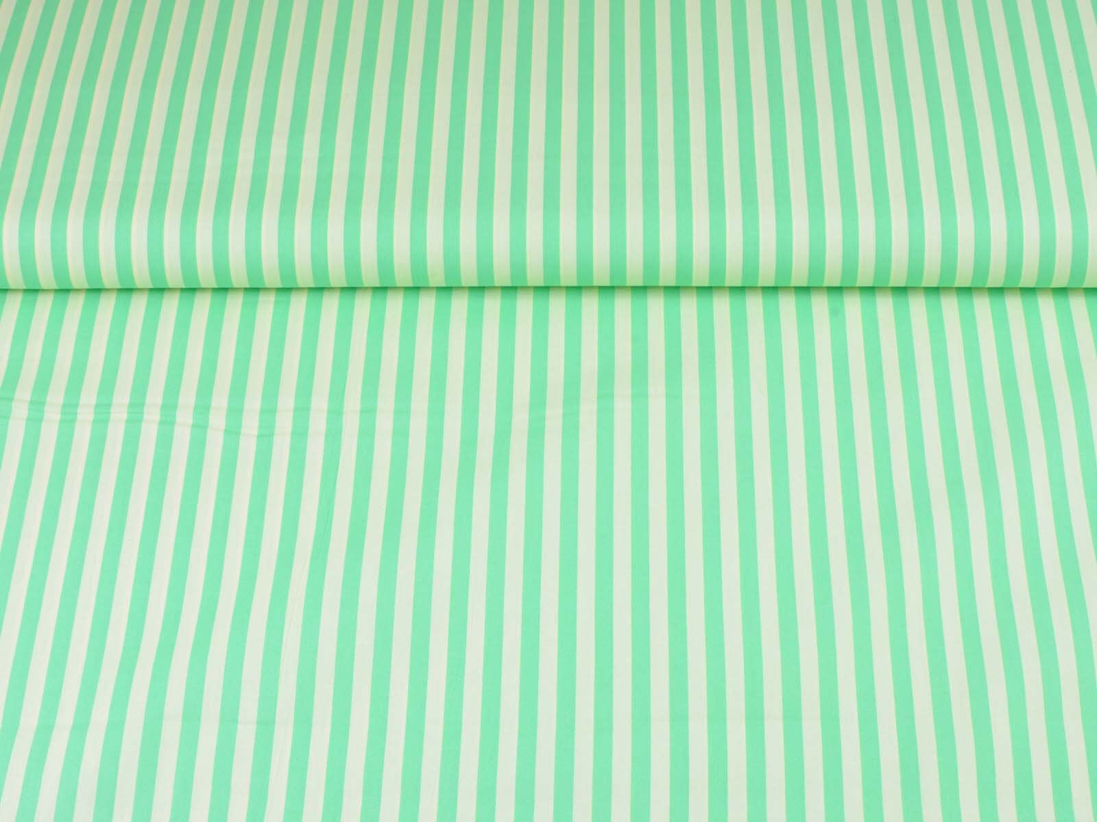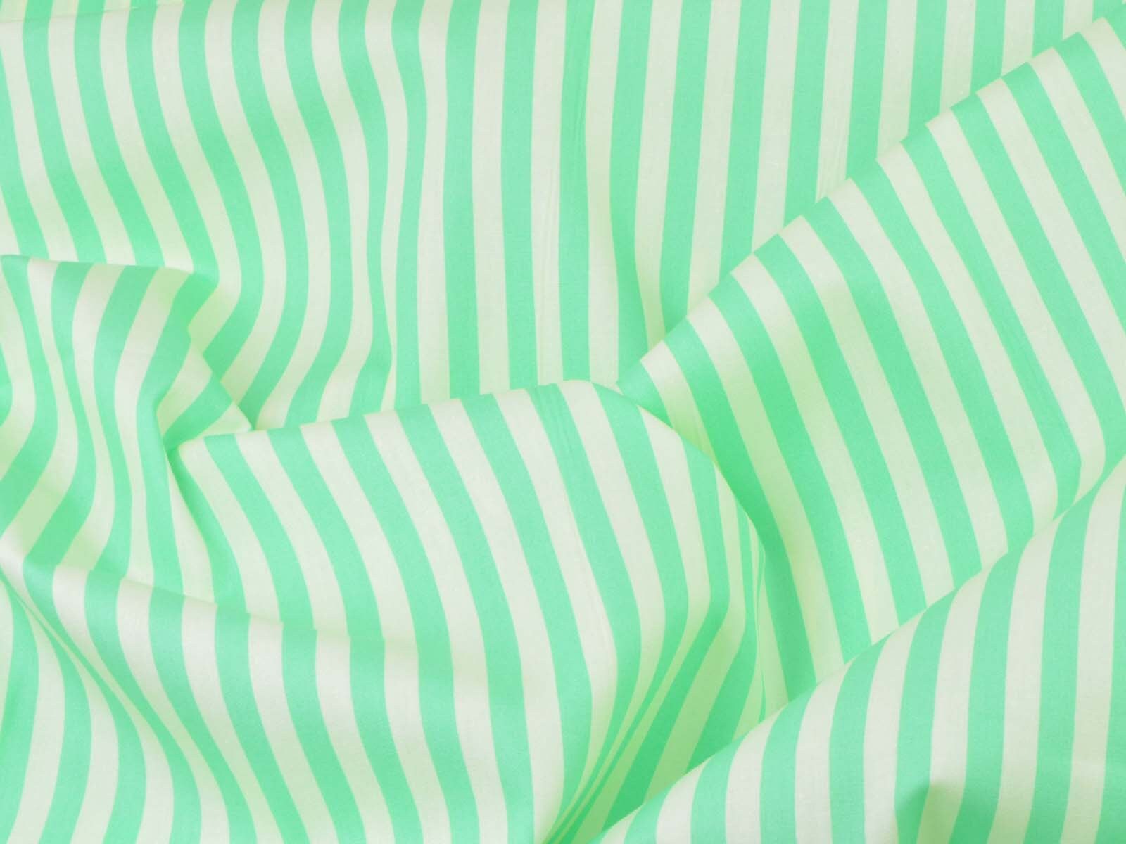 Popeline aus 100% Baumwolle mit grünen und creme-weißen Streifen. Das ist der Originalstoff für das Modell „Christine“ aus der Fibre Mood Nr. 29. Ein Streifen ist ca. 7 mm breit. Der Stoff fühlt sich glatt an und eignet sich wunderbar zum Nähen von Sommerkleidern, Röcken, leichten Hosen, Shorts und vielem mehr.