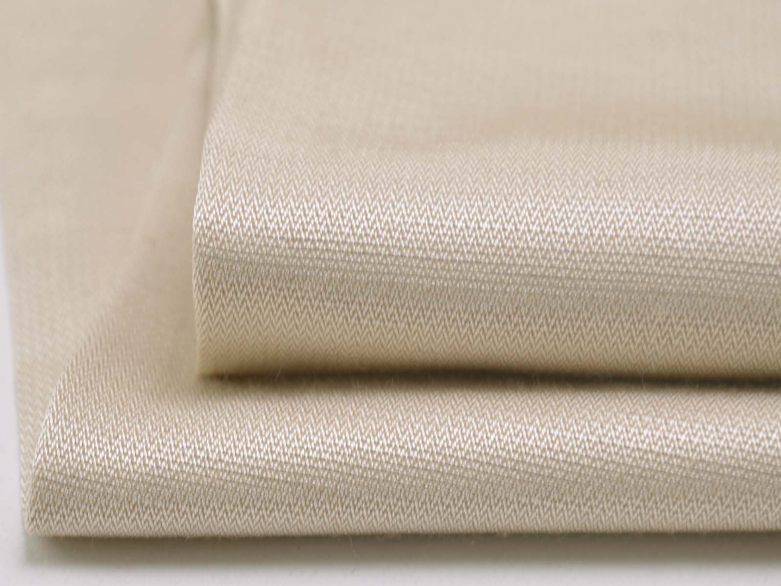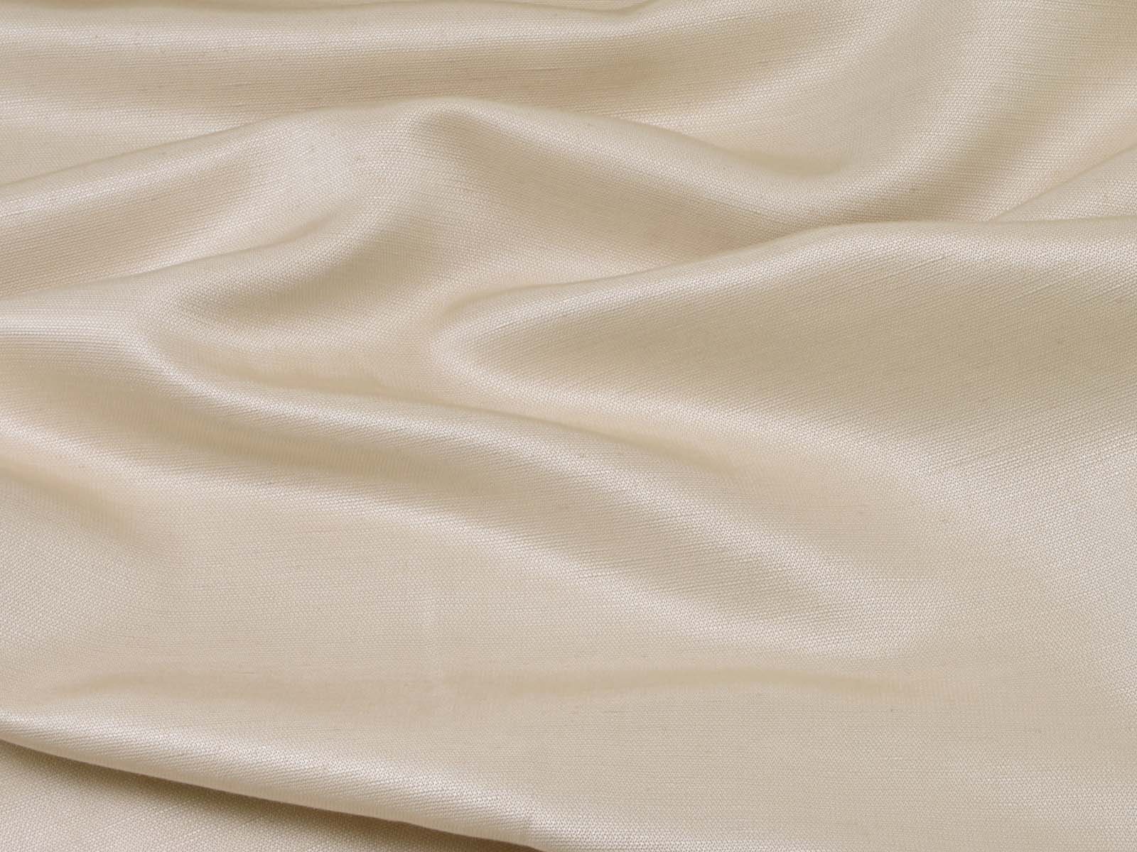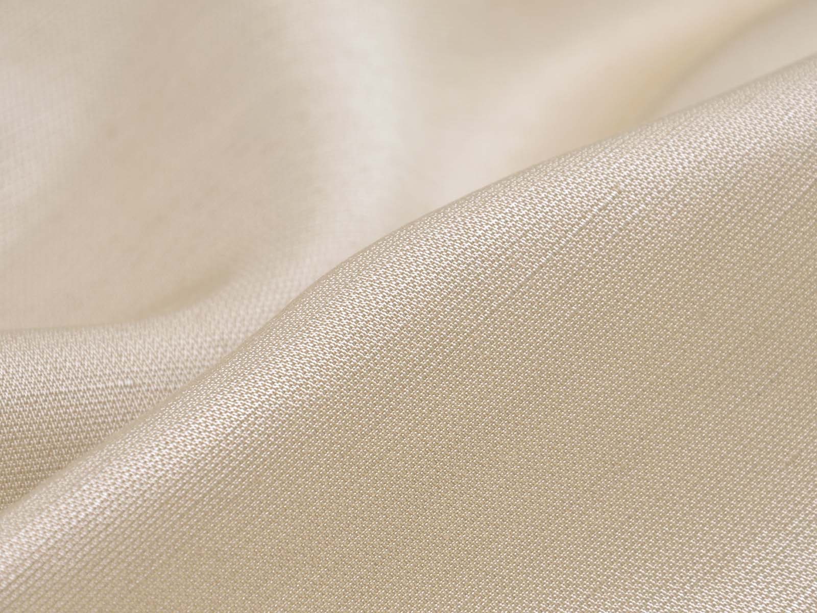 Webware aus Leinen und Viskose in beige meliert. Der Stoff glatt und glänzend. Er eignet sich zum Nähen von Hosen, Kleidern, Röcken und vielem mehr.