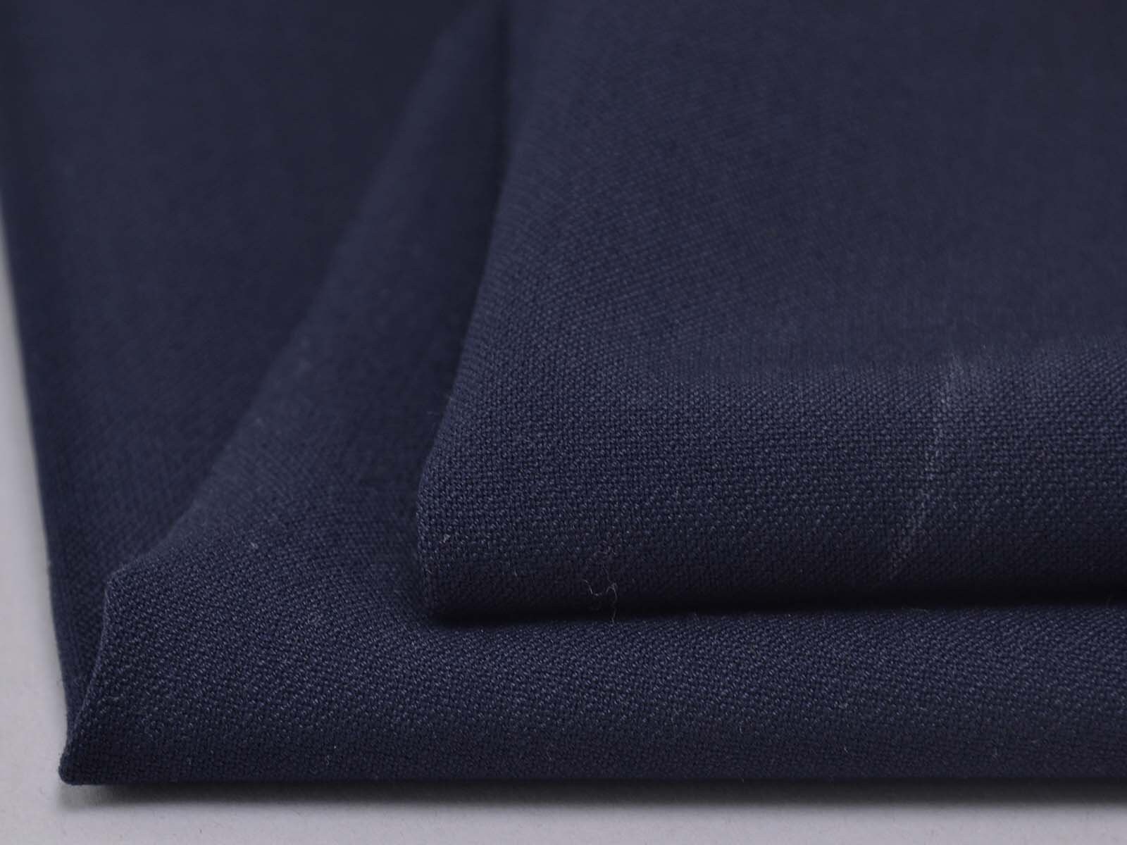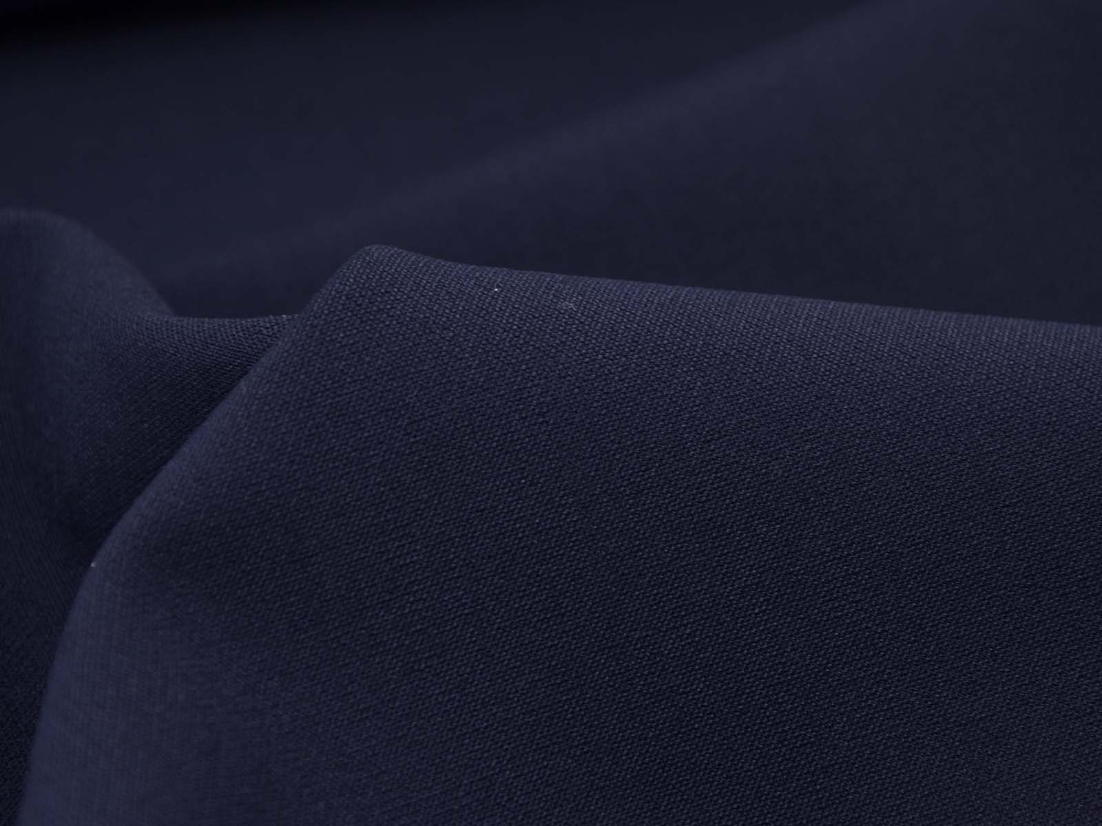 Trouser fabric with cotton and stretch in dark blue. The fabric is stretchy, medium-weight, and feels comfortable against the skin. Sew beautiful trousers, dresses, skirts, and much more.