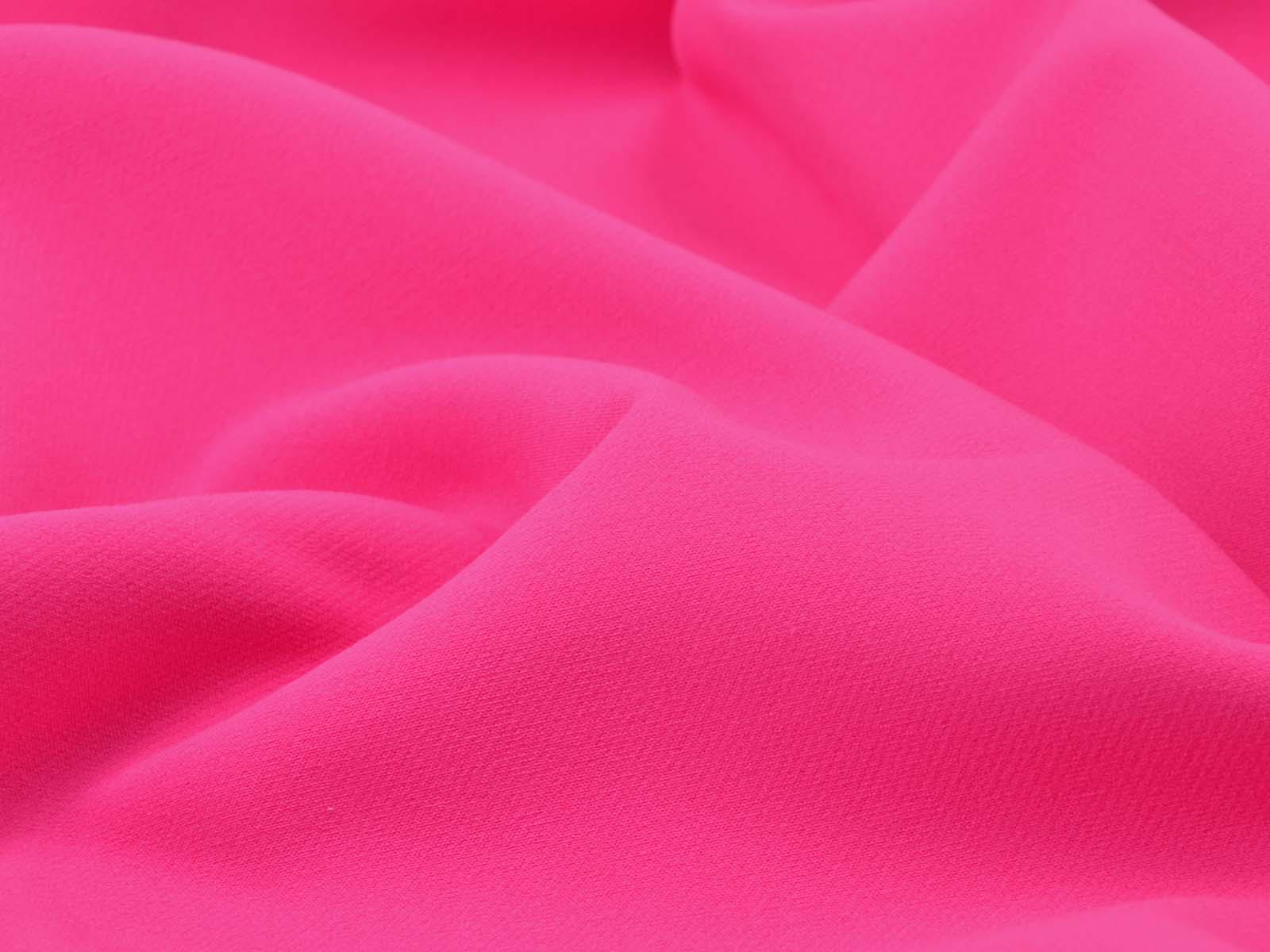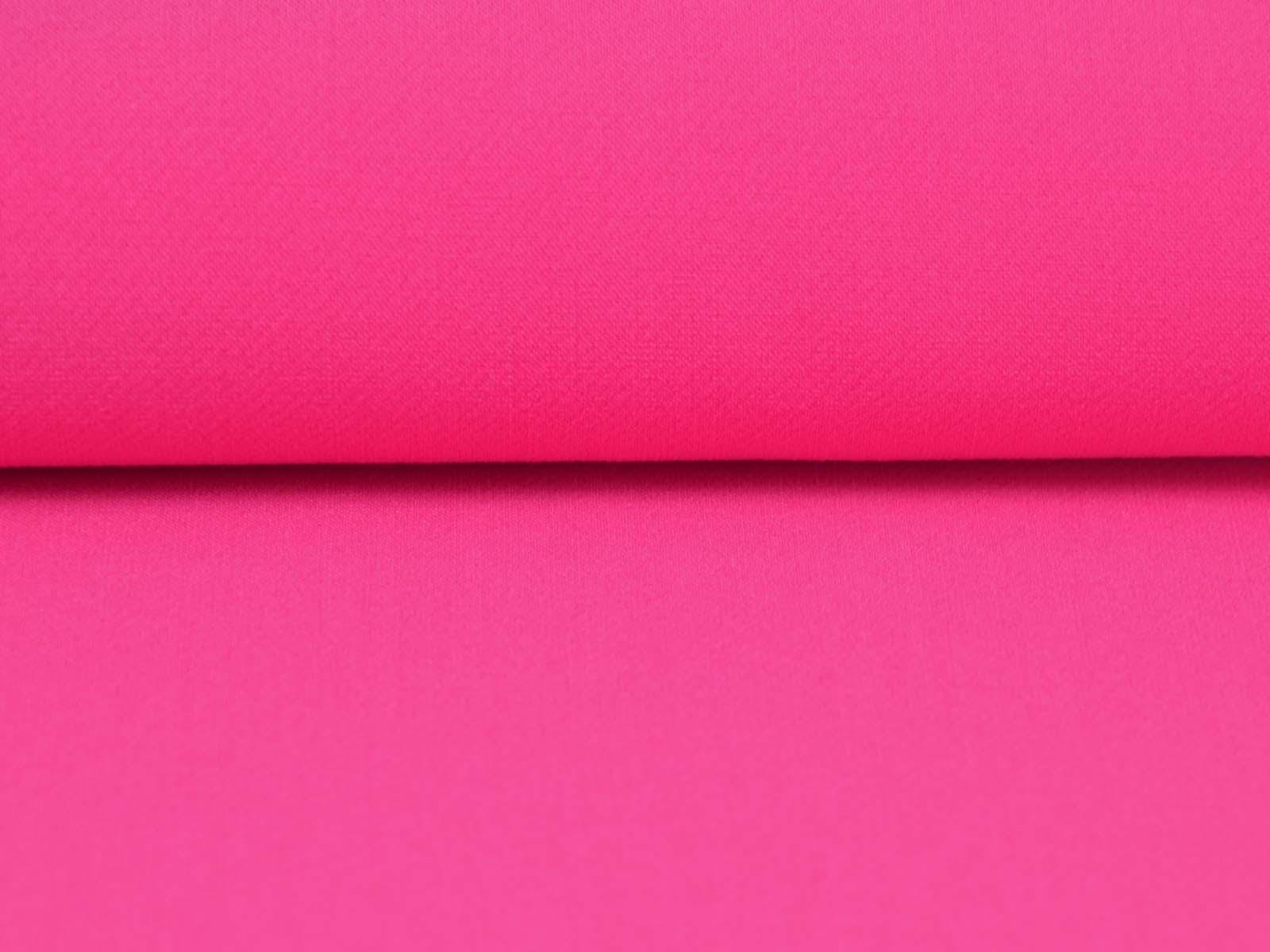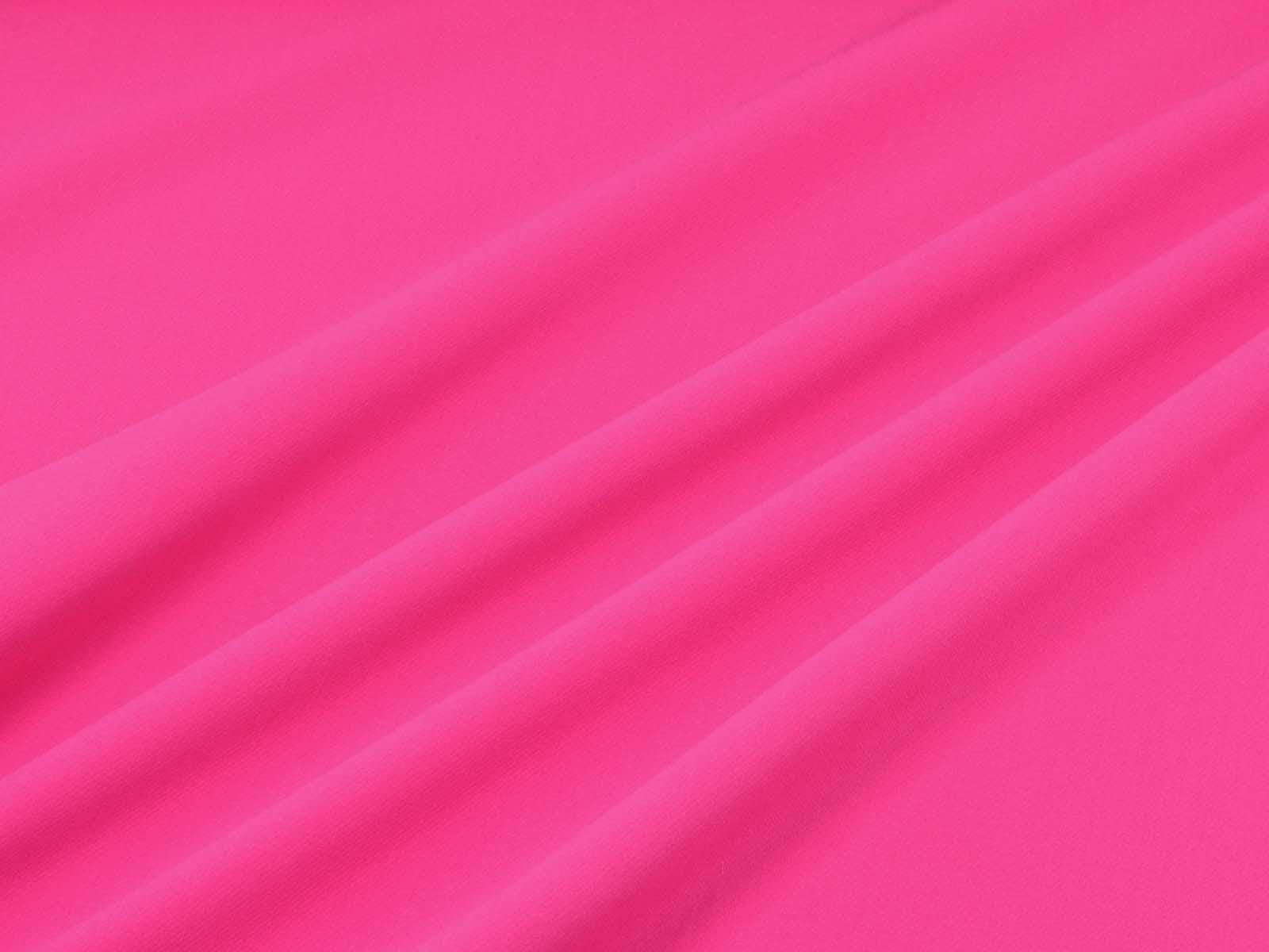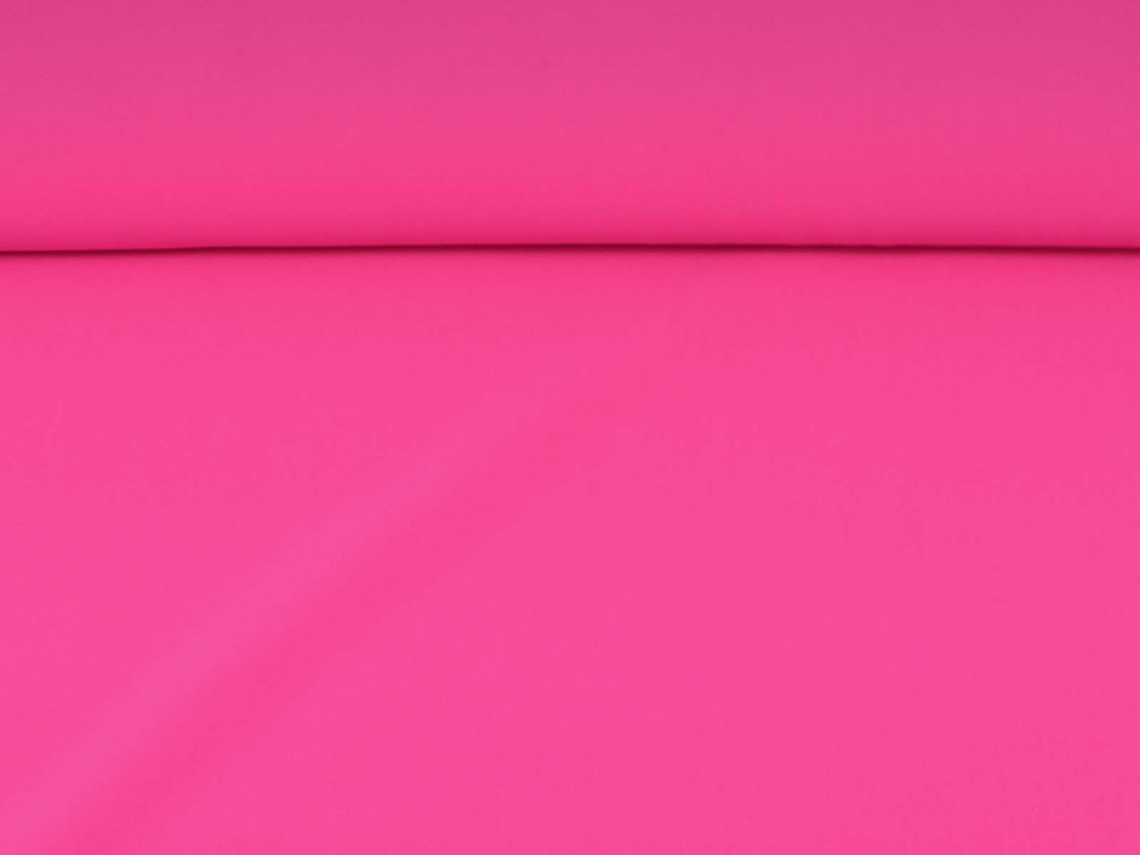 Woven fabric made of viscose and polyester with stretch in solid pink. The fabric is medium-thick, medium-weight, smooth, and bi-stretchy. Use it to sew tight-fitting pants, dresses, and skirts.