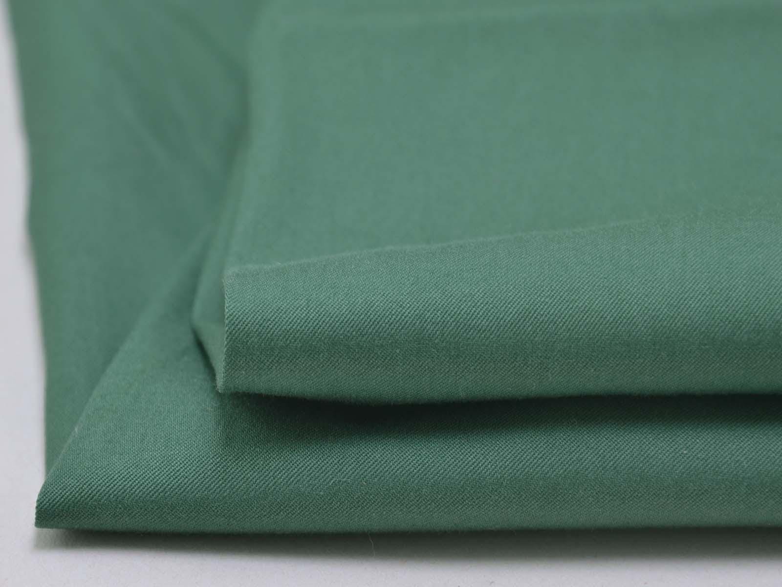 Baumwollstoff in uni grün mit Stretch. Der Stoff ist glatt, elastisch und dünn. Er eignet sich wunderbar zum Nähen von Blusen, Hosen, Kleidern, Röcken und vielem mehr.
