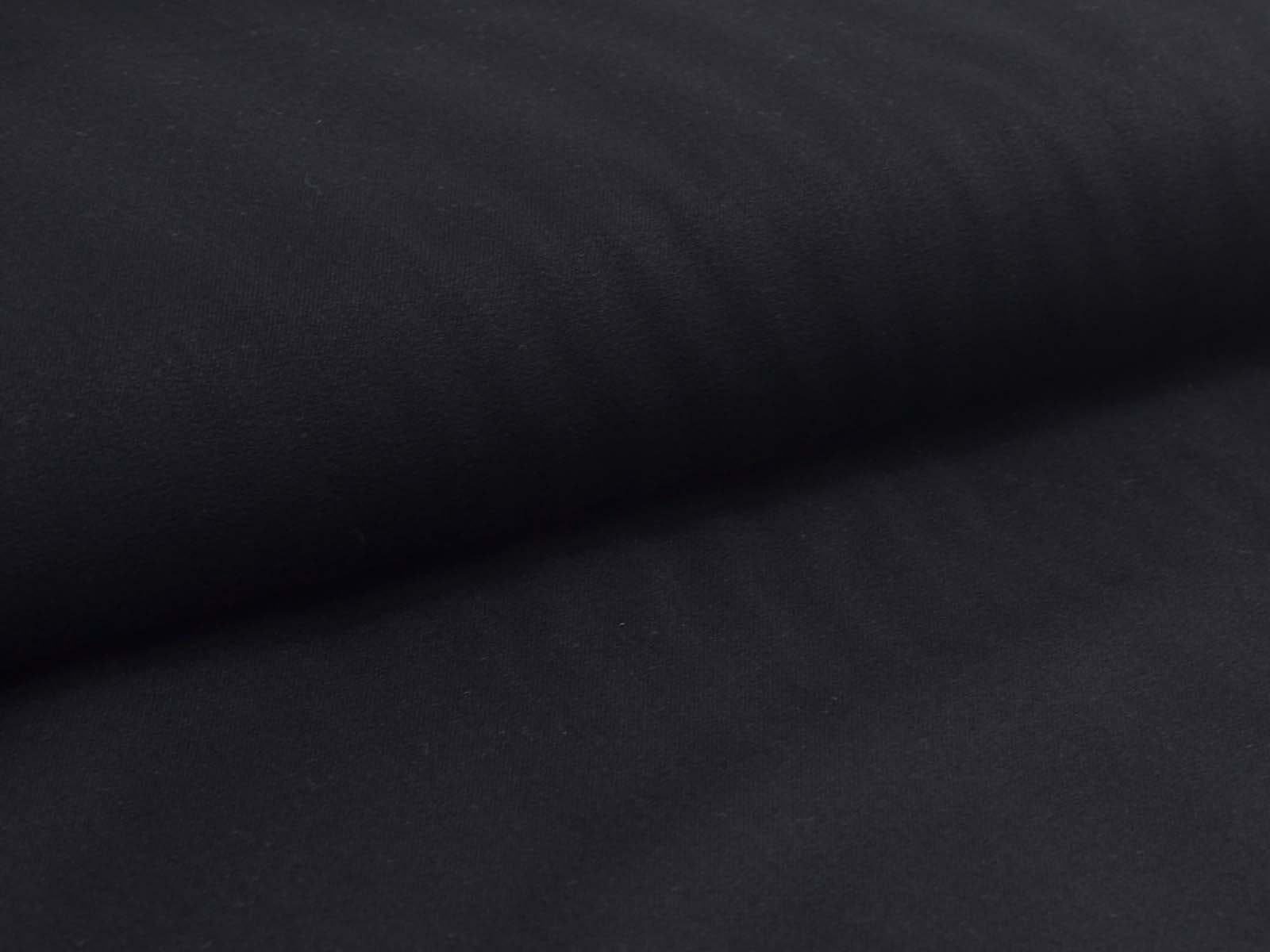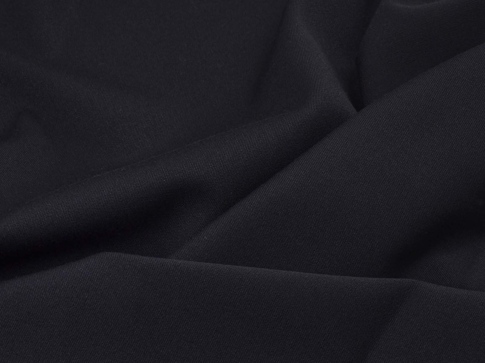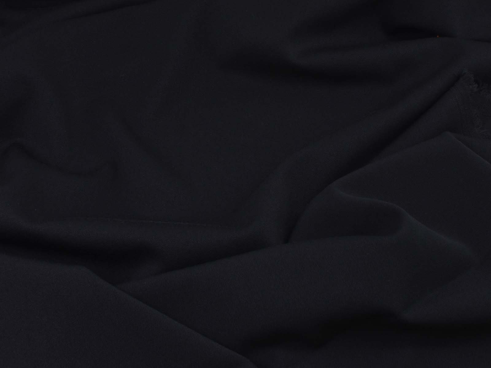 High-quality black viscose trouser fabric from Hilco. The fabric has a smooth feel, is medium weight, and is perfect for sewing trousers, skirts, dresses, and much more.