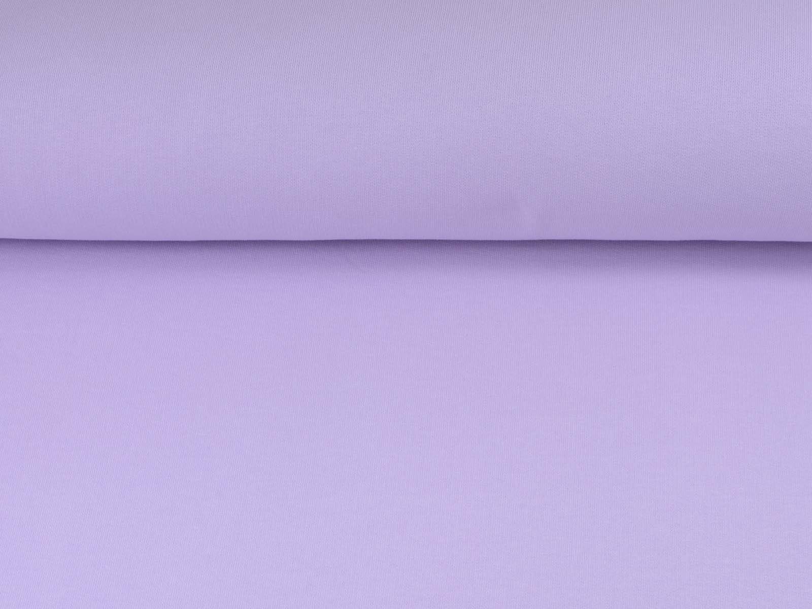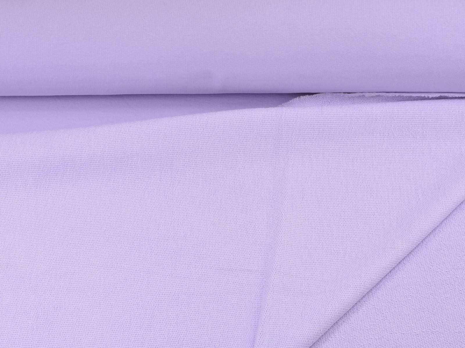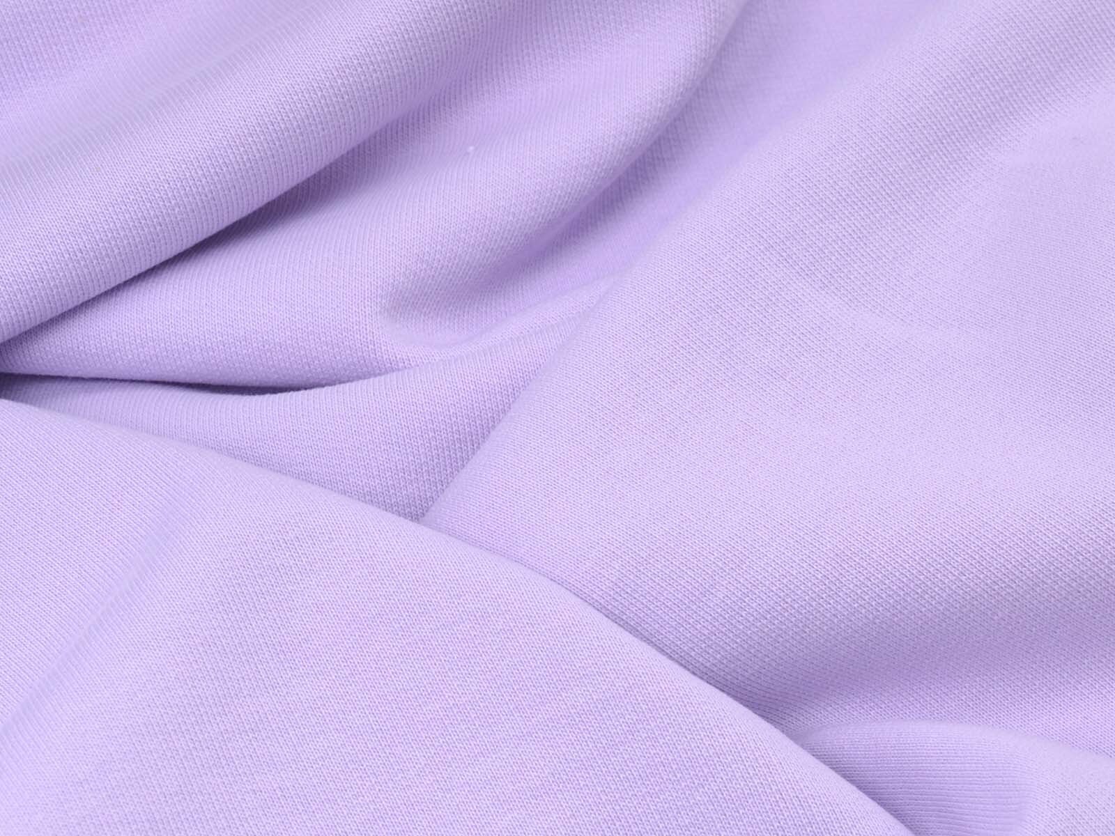 Sommersweat in flieder aus 100% Baumwolle made in Italy. Der Stoff ist extra breit. Die rechte Stoffseite ist glatt und die linke Stoffseite zeigt typische Schlingen. Der Stoff eignet sich zum Nähen von Sweatjacken, Pullovern, Jogginghosen und vielem mehr.