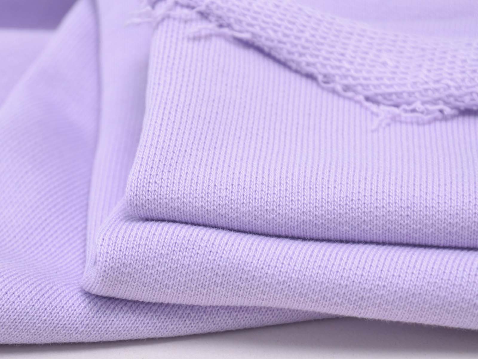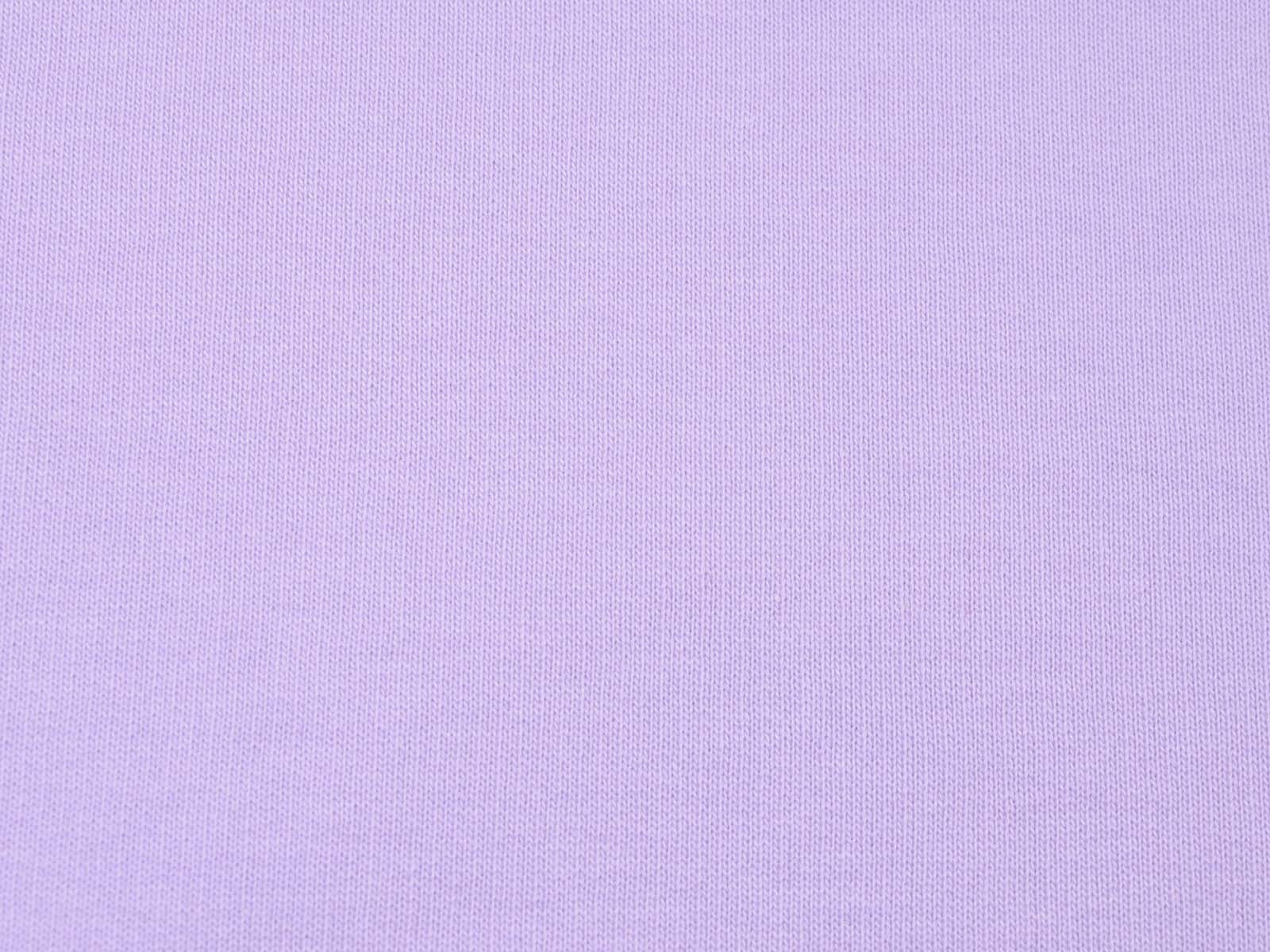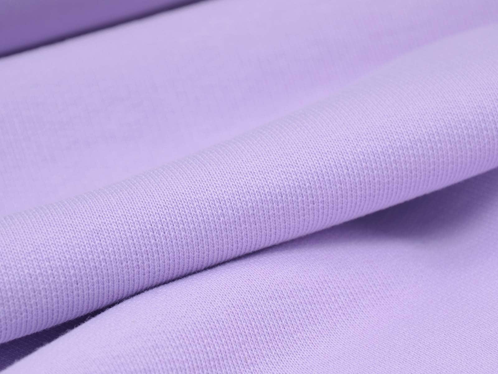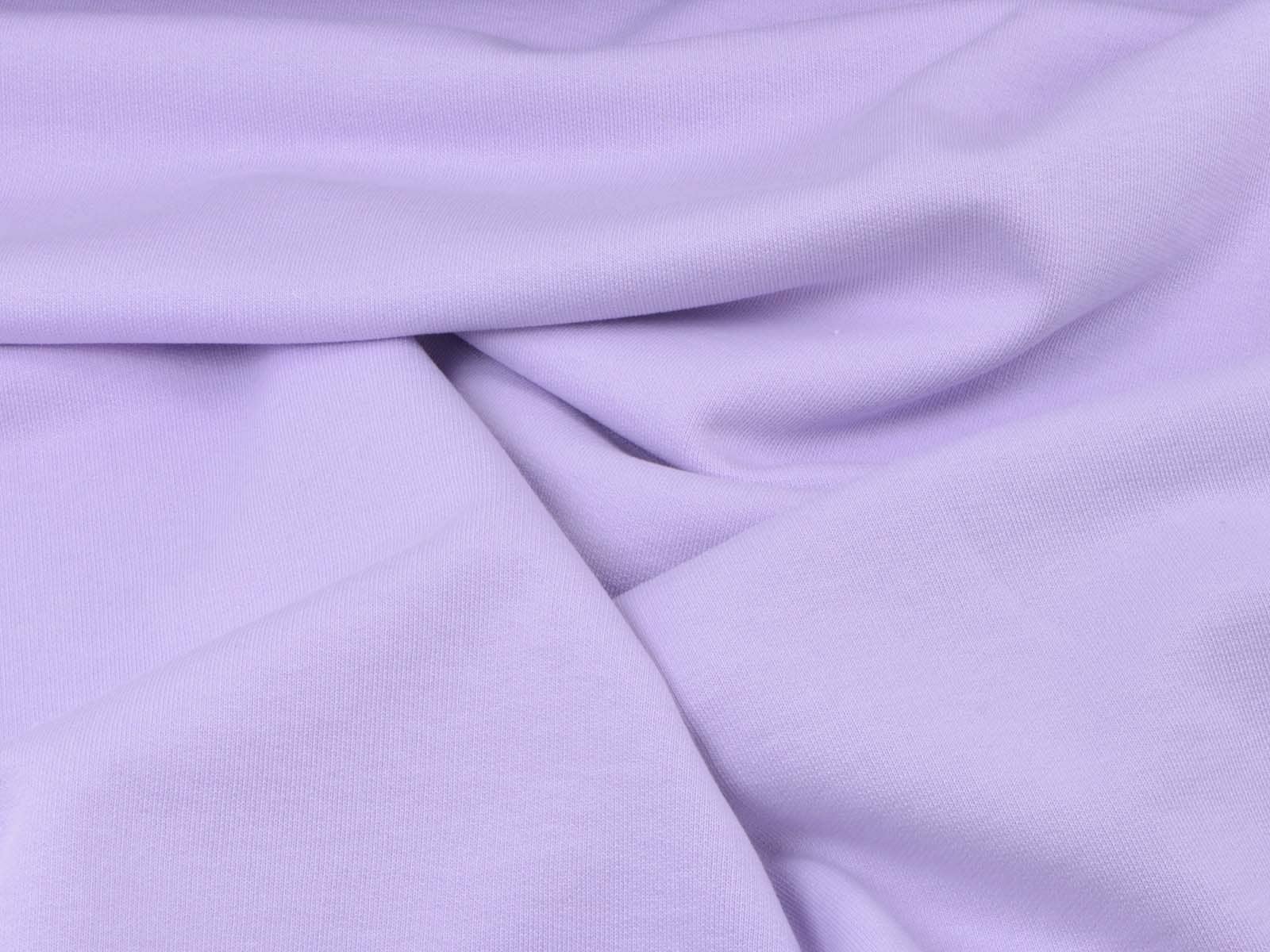 Sommersweat in flieder aus 100% Baumwolle made in Italy. Der Stoff ist extra breit. Die rechte Stoffseite ist glatt und die linke Stoffseite zeigt typische Schlingen. Der Stoff eignet sich zum Nähen von Sweatjacken, Pullovern, Jogginghosen und vielem mehr.