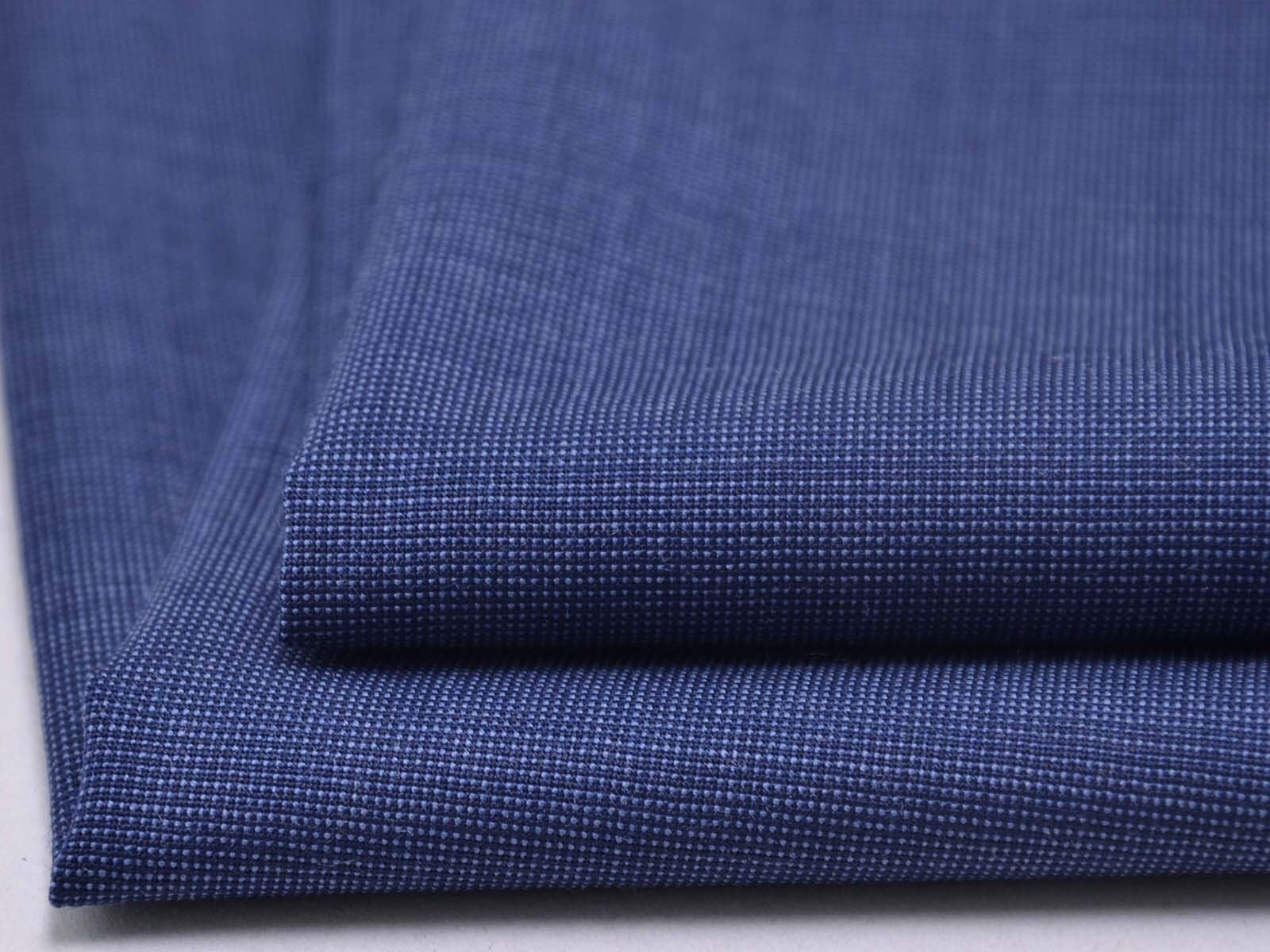 Woven fabric made of wool, polyester, and elastane in blue. The fabric is thin, mottled, smooth, and blue. The fabric is wonderfully cool in summer and is suitable for sewing dresses, skirts, pants, and much more.
