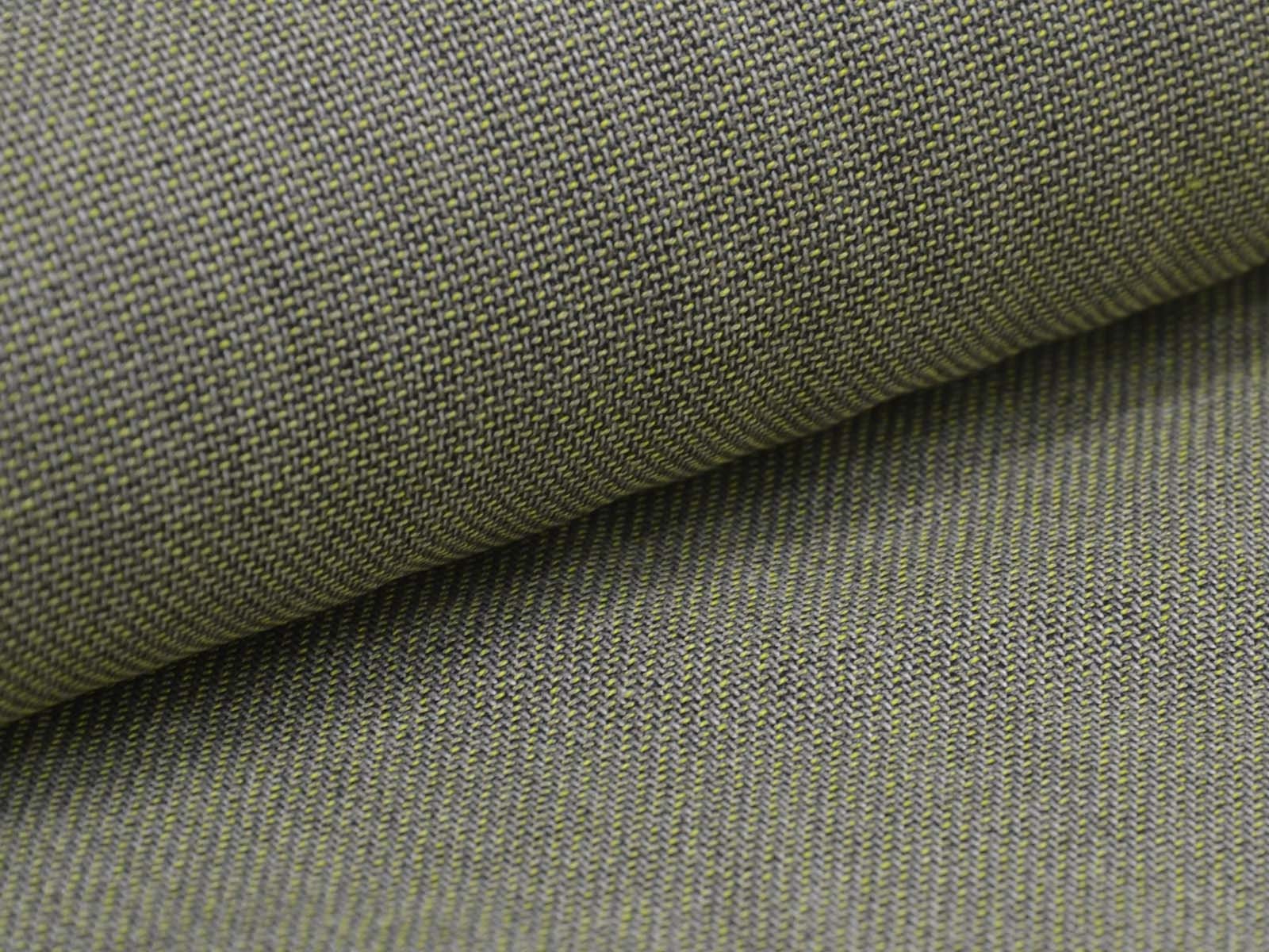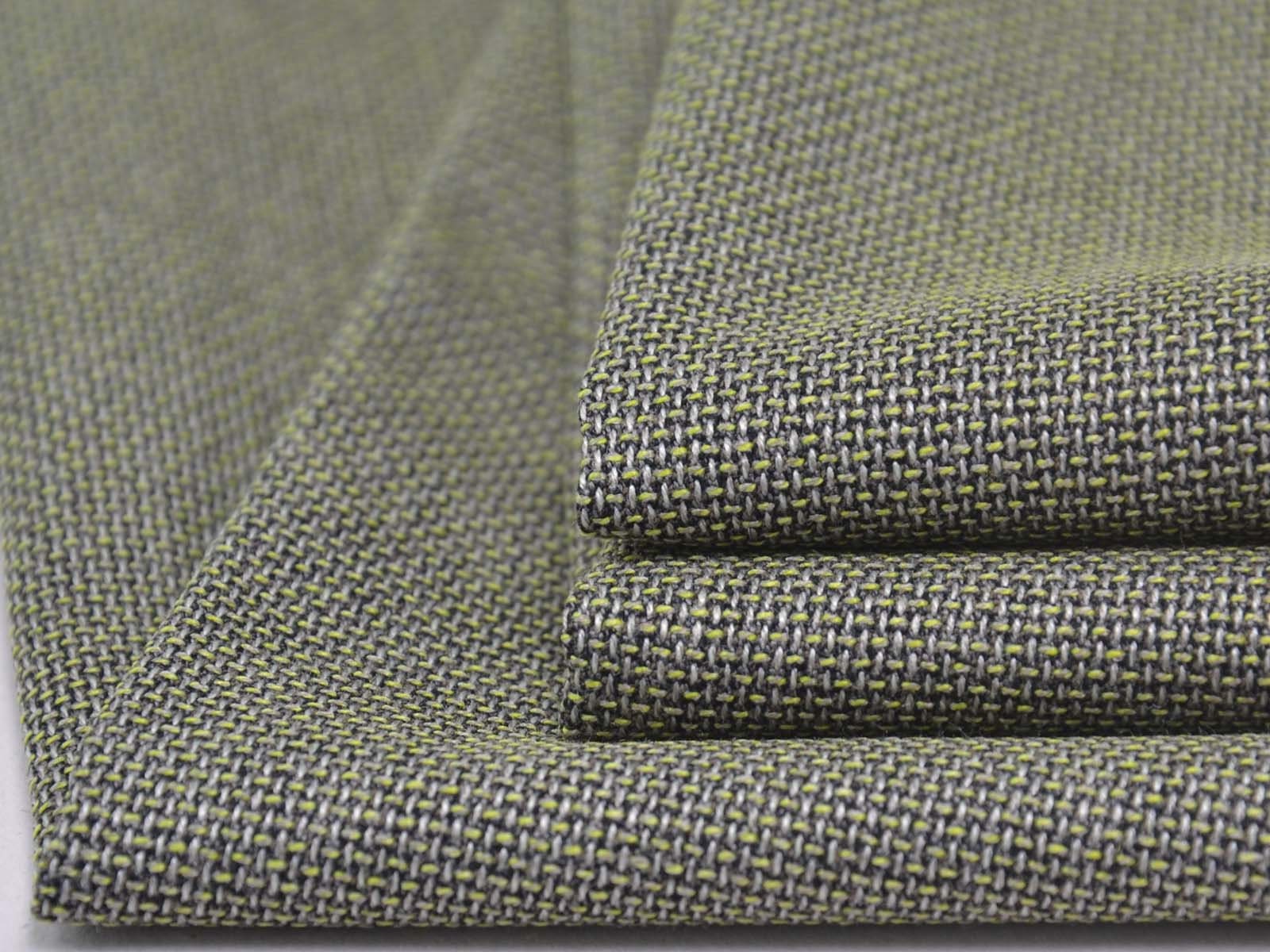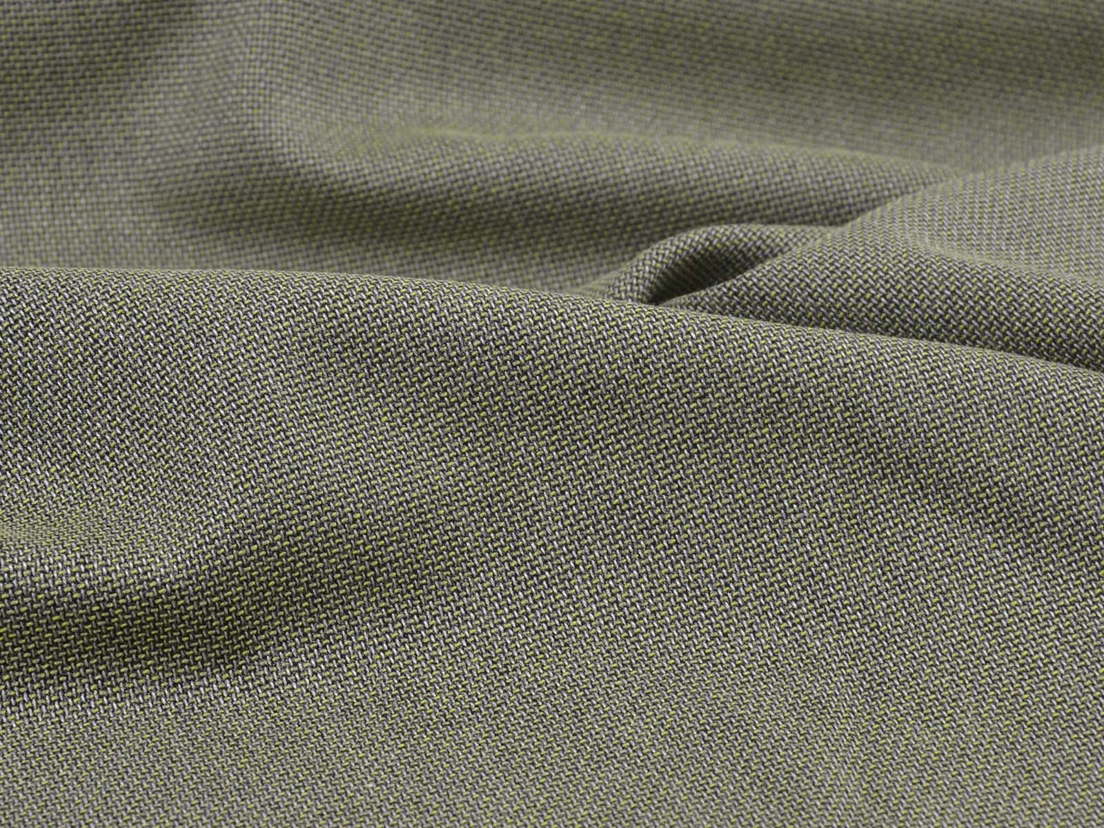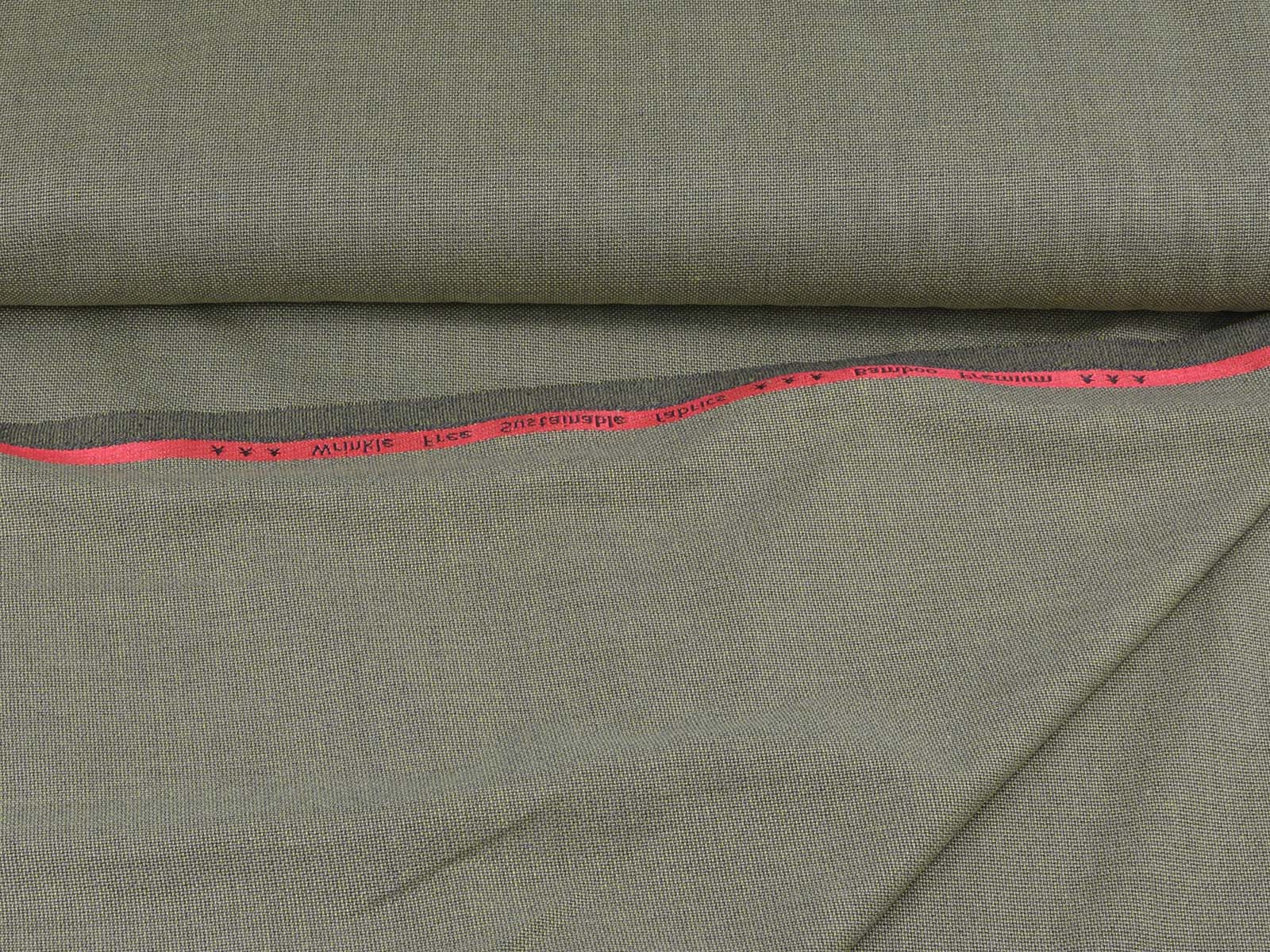 Stretchy olive-green mottled trouser fabric made from bamboo with recycled polyester. The fabric is thin, has a slightly grainy feel, and drapes smoothly. It's perfect for sewing wide-legged trousers, dresses, skirts, and much more.