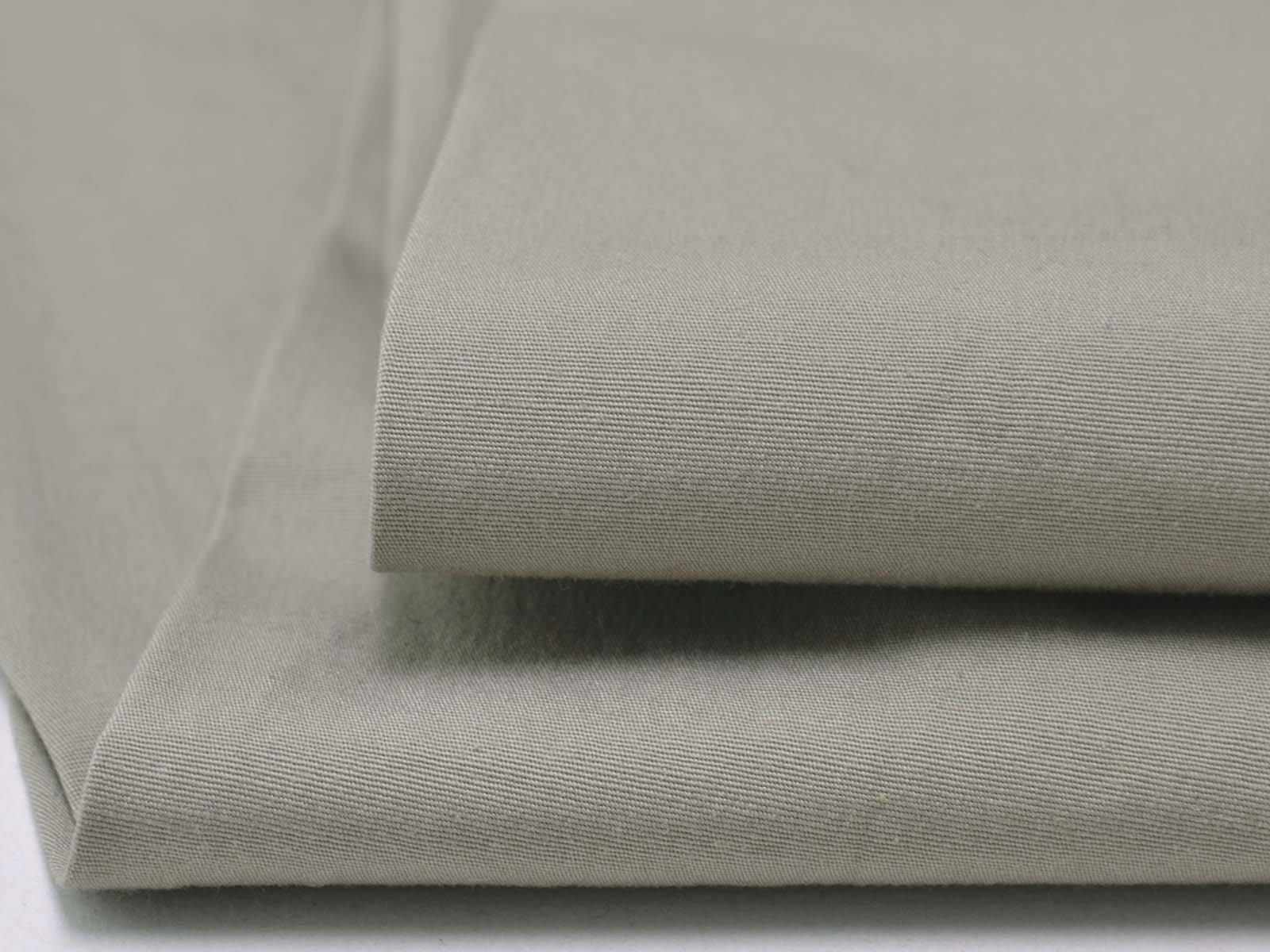 Stretch Popeline in uni khaki. Er fühlt sich glatt an und eignet sich dank des Elastans wunderbar zum Nähen von Kleidern, Hosen, Röcken und vielem mehr.