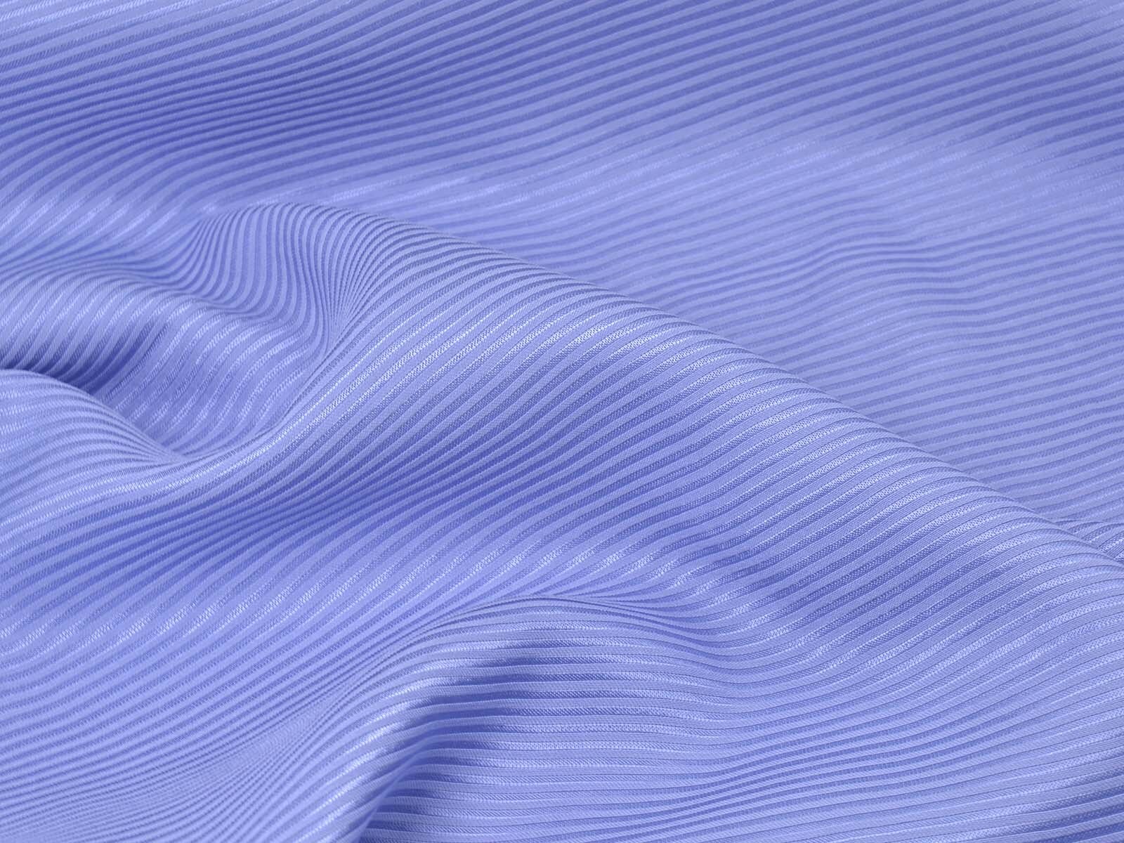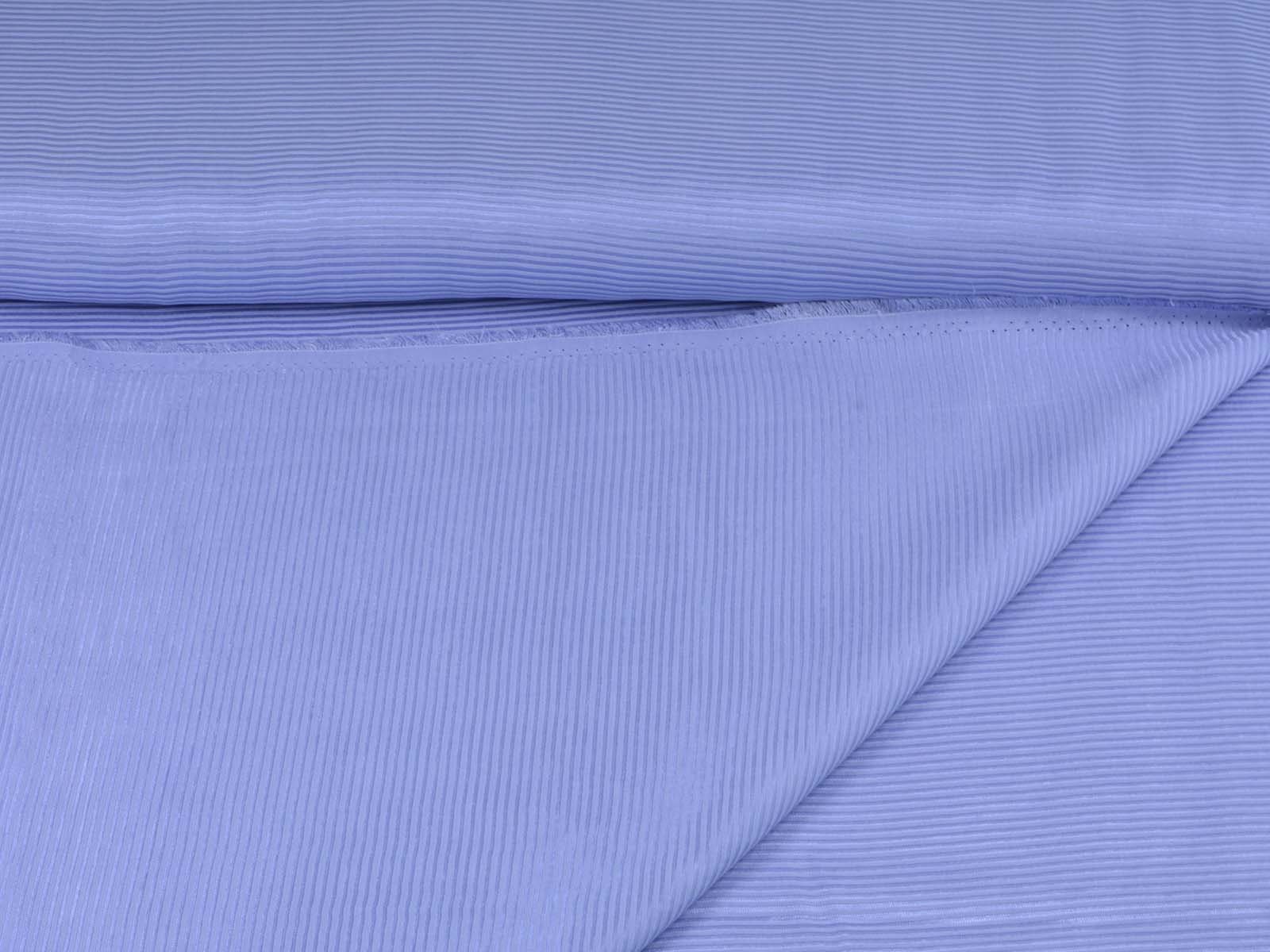 Helllbauer Viskosestoff mit helllbau glänzenden Streifen. Das ist der Originalstoff für das Modell „Hallie“ aus der Fibre Mood Nr. 29. Ein Streifen ist ca. 2 mm breit. Der Stoff hat einen fließenden Fall und eignet sich wunderbar zum Nähen von Sommerkleidern, Röcken, Shorts und vielem mehr.