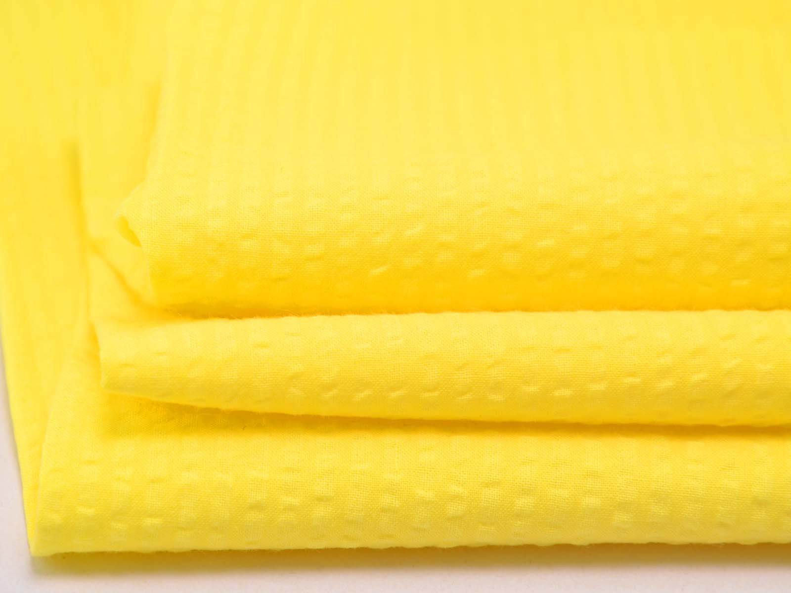 Seersucker aus Baumwolle in gelb von Fibre Mood. Es handelt sich um den Originalstoff für das Modell „Khloe“ aus der Fibre Mood Nr. 29. Der Stoff fühlt sich leicht rau an und eignet sich wunderbar zum Nähen von Sommerkleidern, Röcken, leichten Hosen, Shorts und vielem mehr.