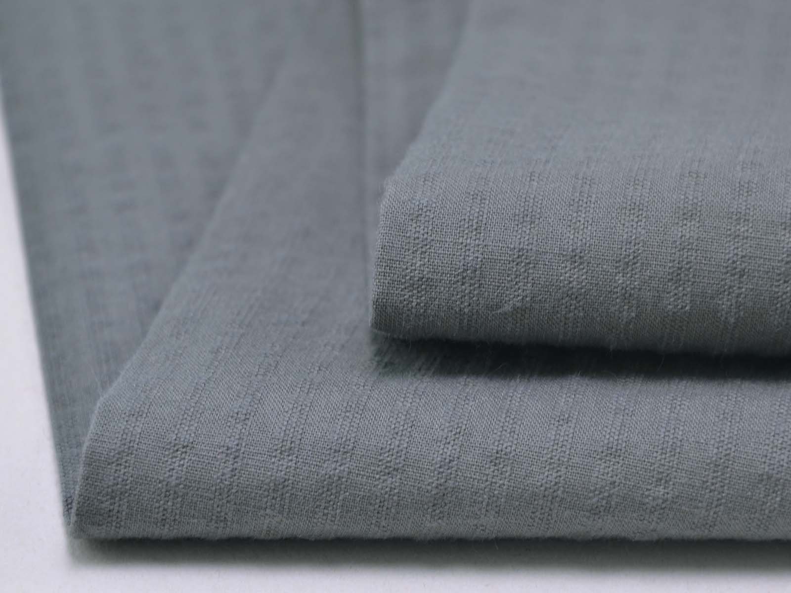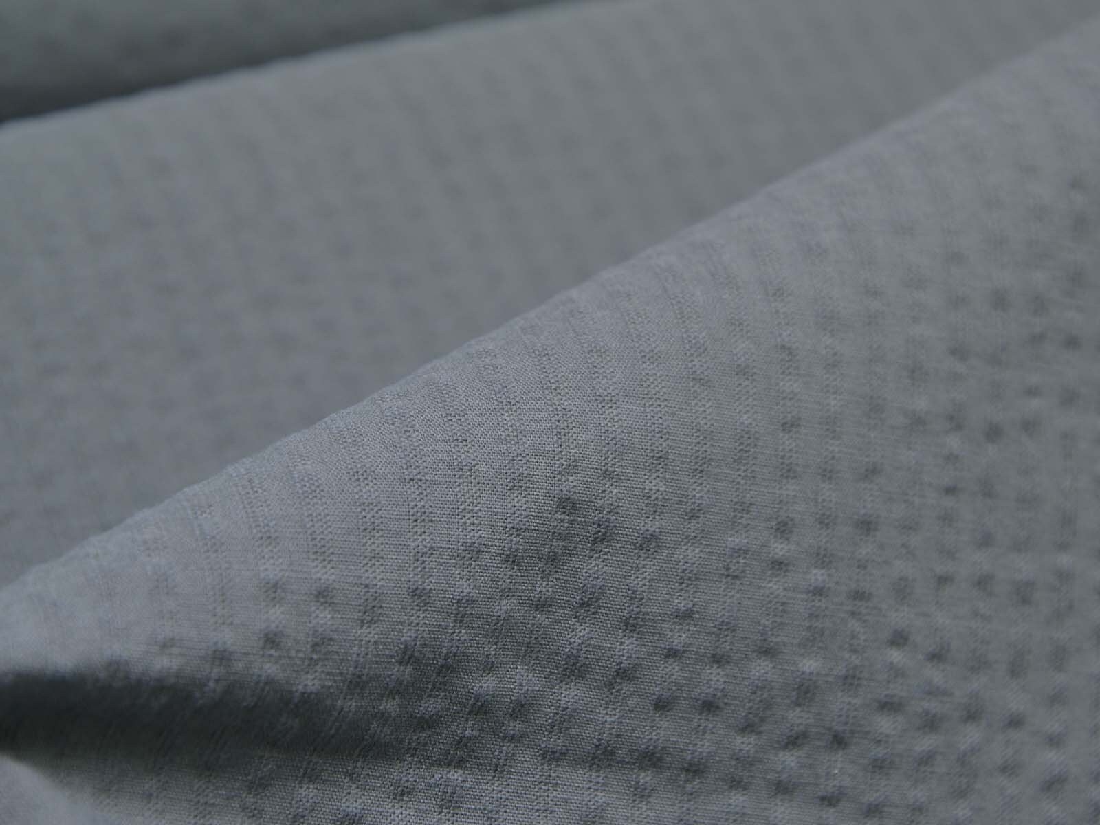 Webware aus Baumwolle in uni grau. Der Seersucker ist elastisch, hat einen Bubble-Effekt und ist dünn. Nähe dir tolle Blusen, Röcke und Kleider.