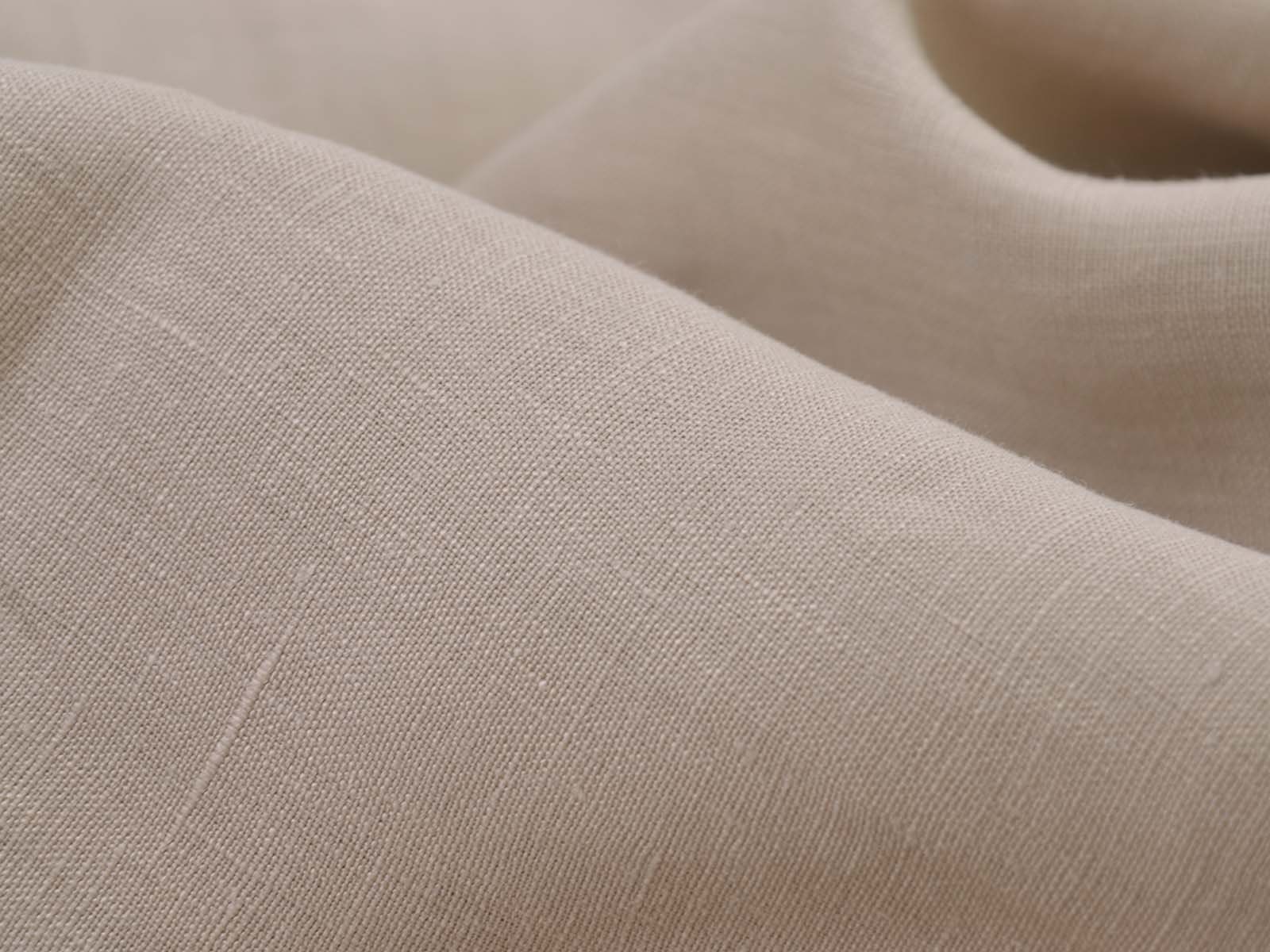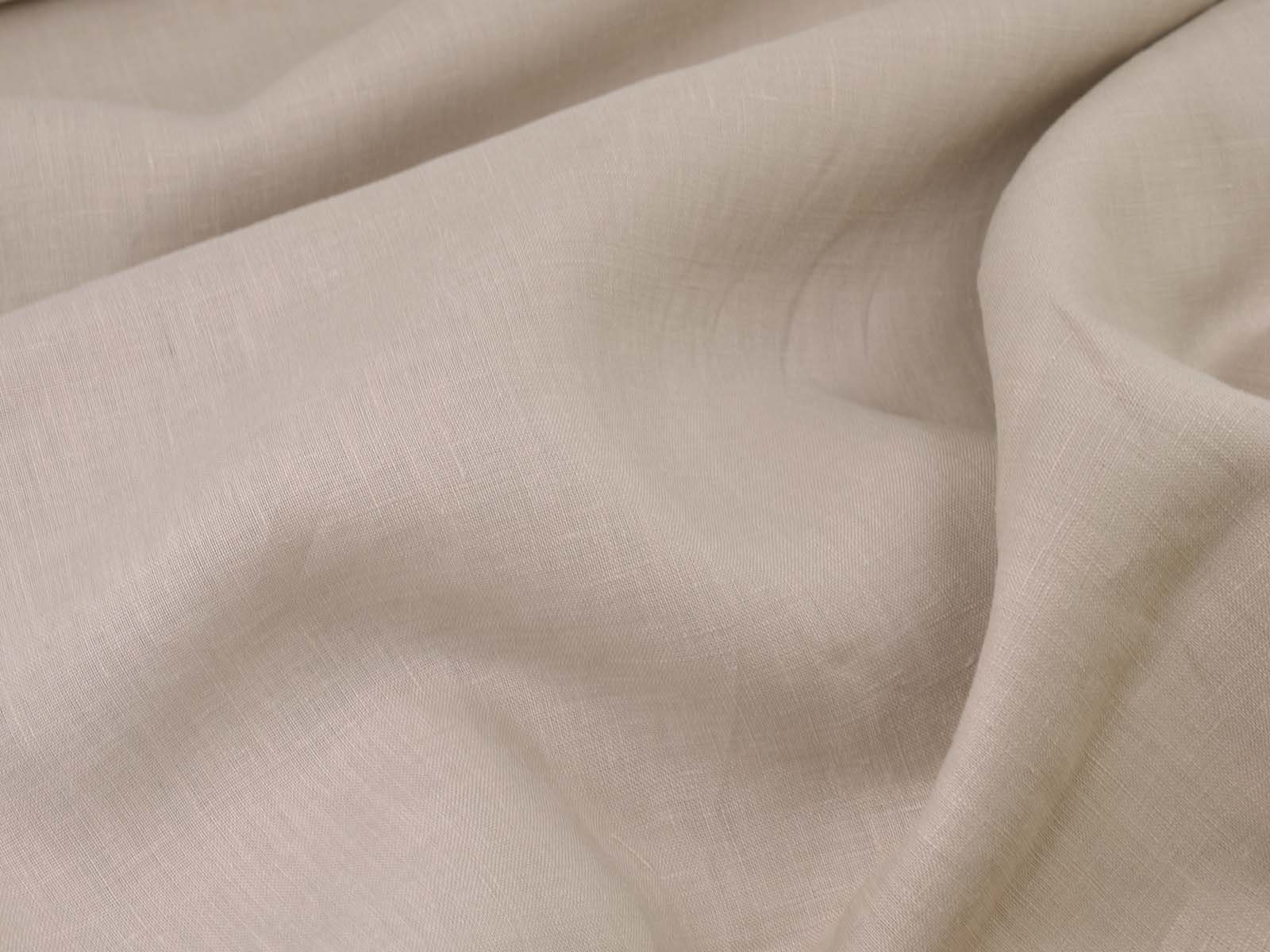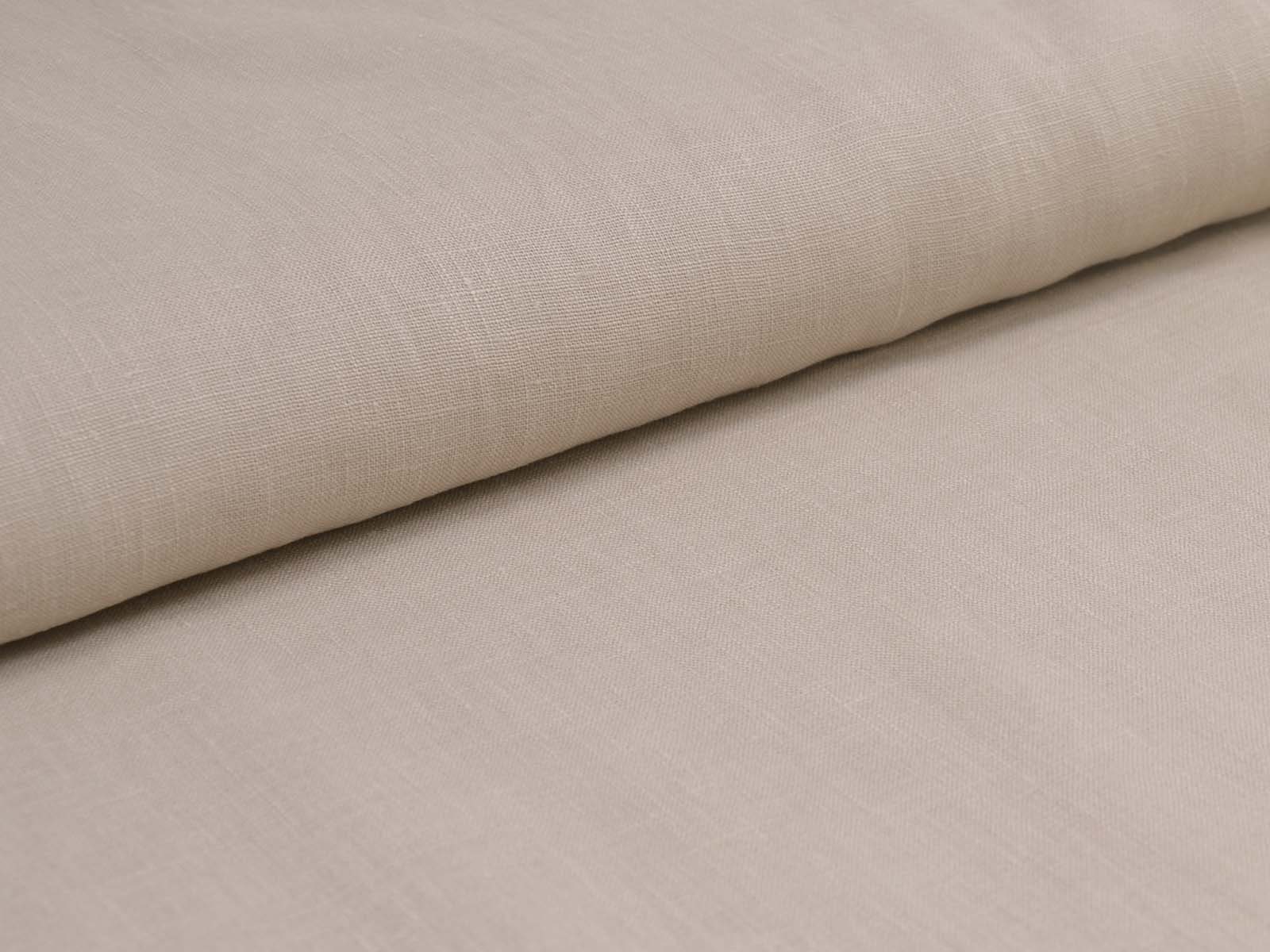 Blusenstoff aus reinem Leinen in beige. Der Stoff ist dünn und leicht transparent. Deshalb eignet er sich wunderbar zum Nähen von leichten Kleidern, Hosen, Röcken, Tuniken und Shorts.