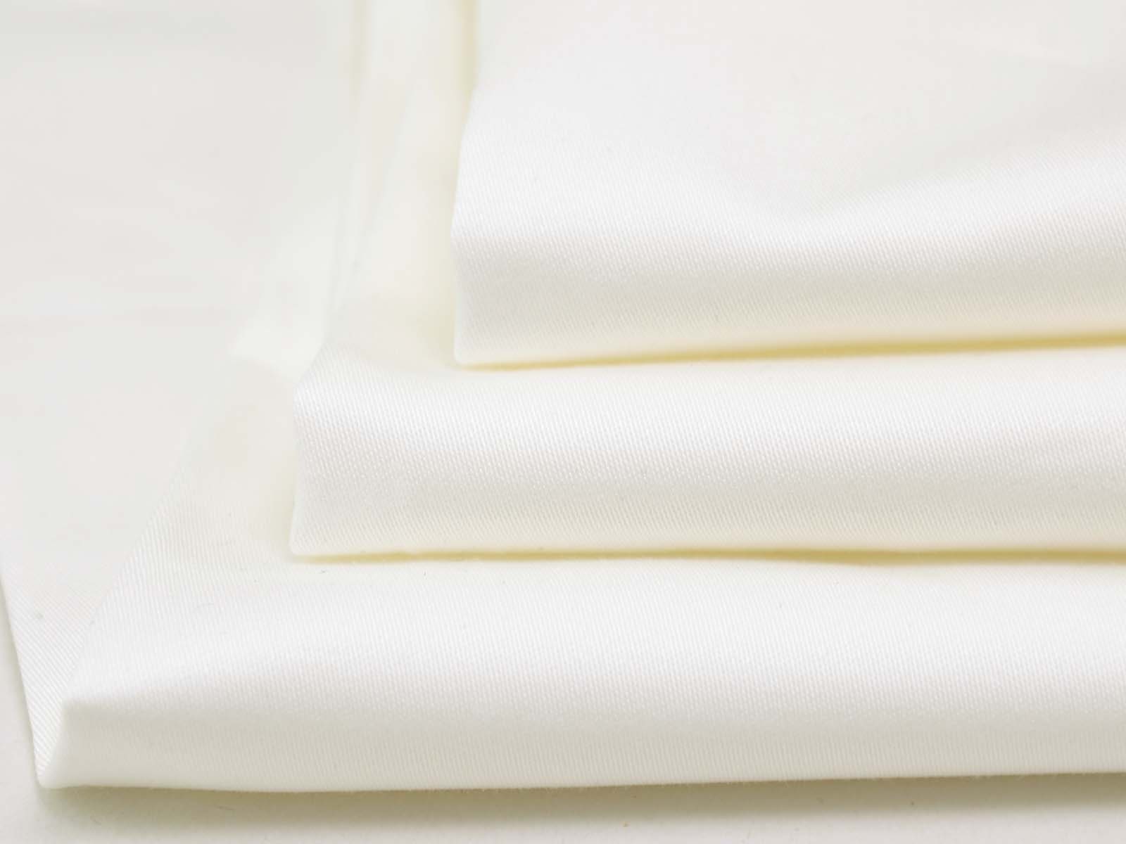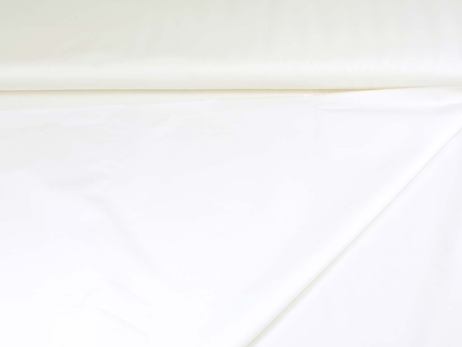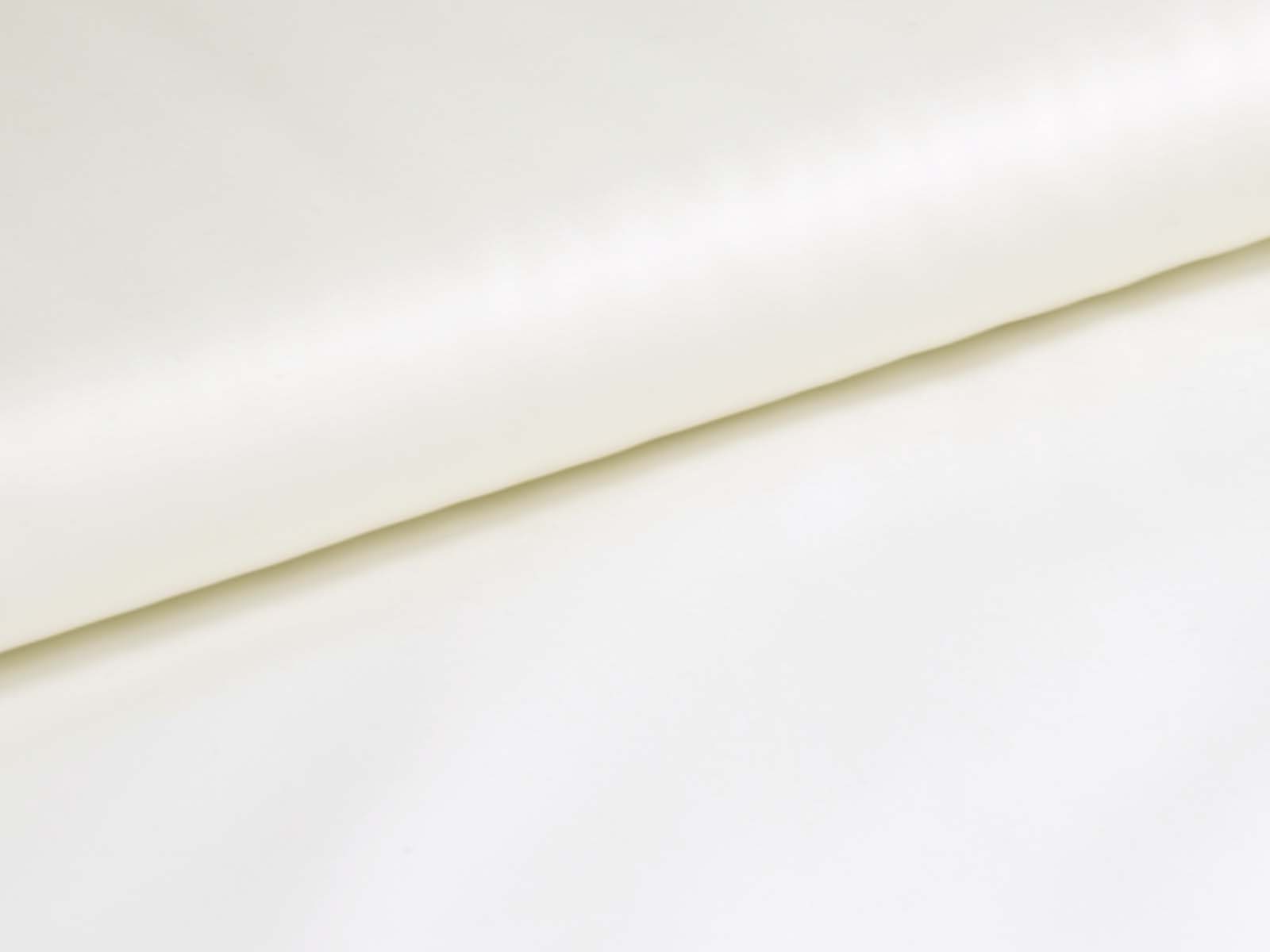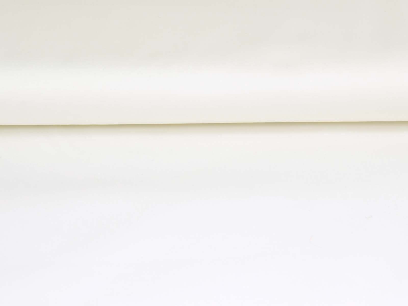 Blusenstoff aus reiner Baumwolle in uni weiß. Der Stoff ist glatt, fest und eher dünn. Er eignet sich wunderbar zum Nähen von Blusen, Röcken, Kleidern und vielem mehr.