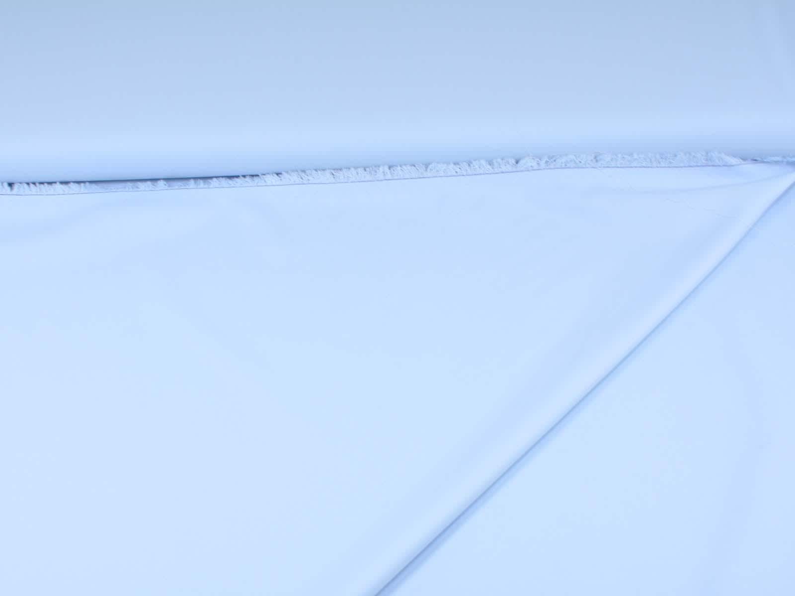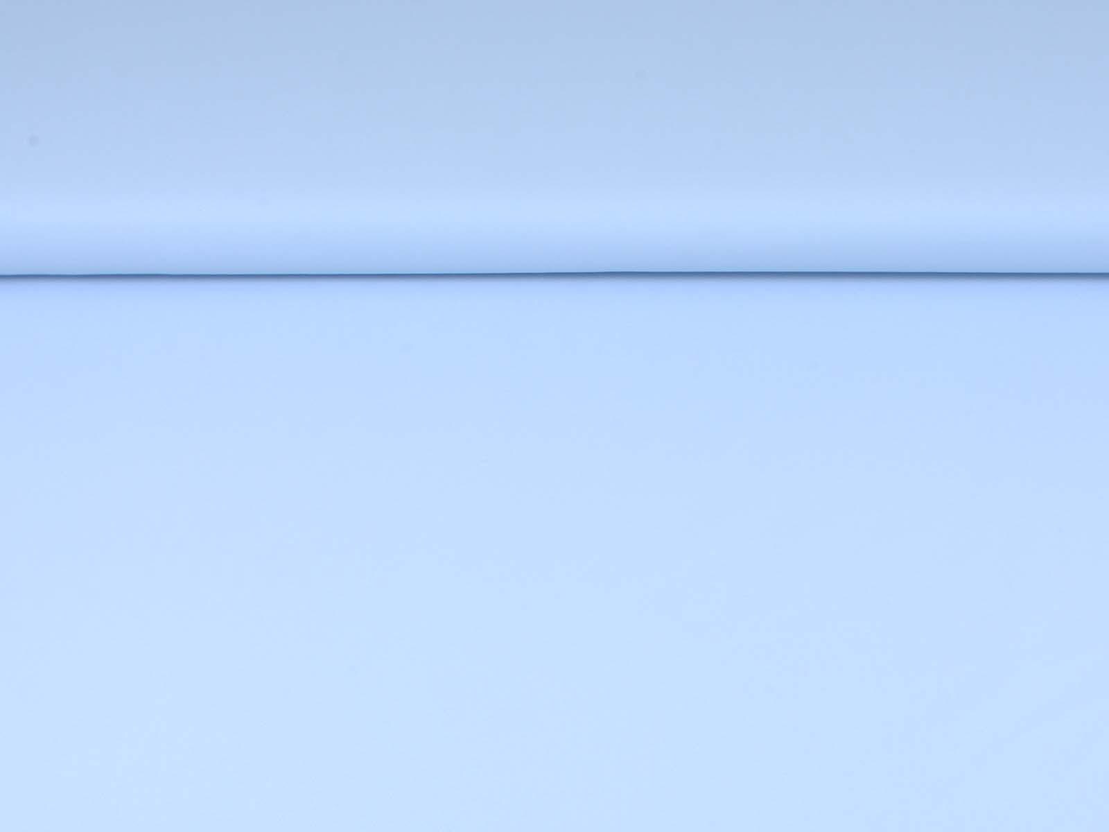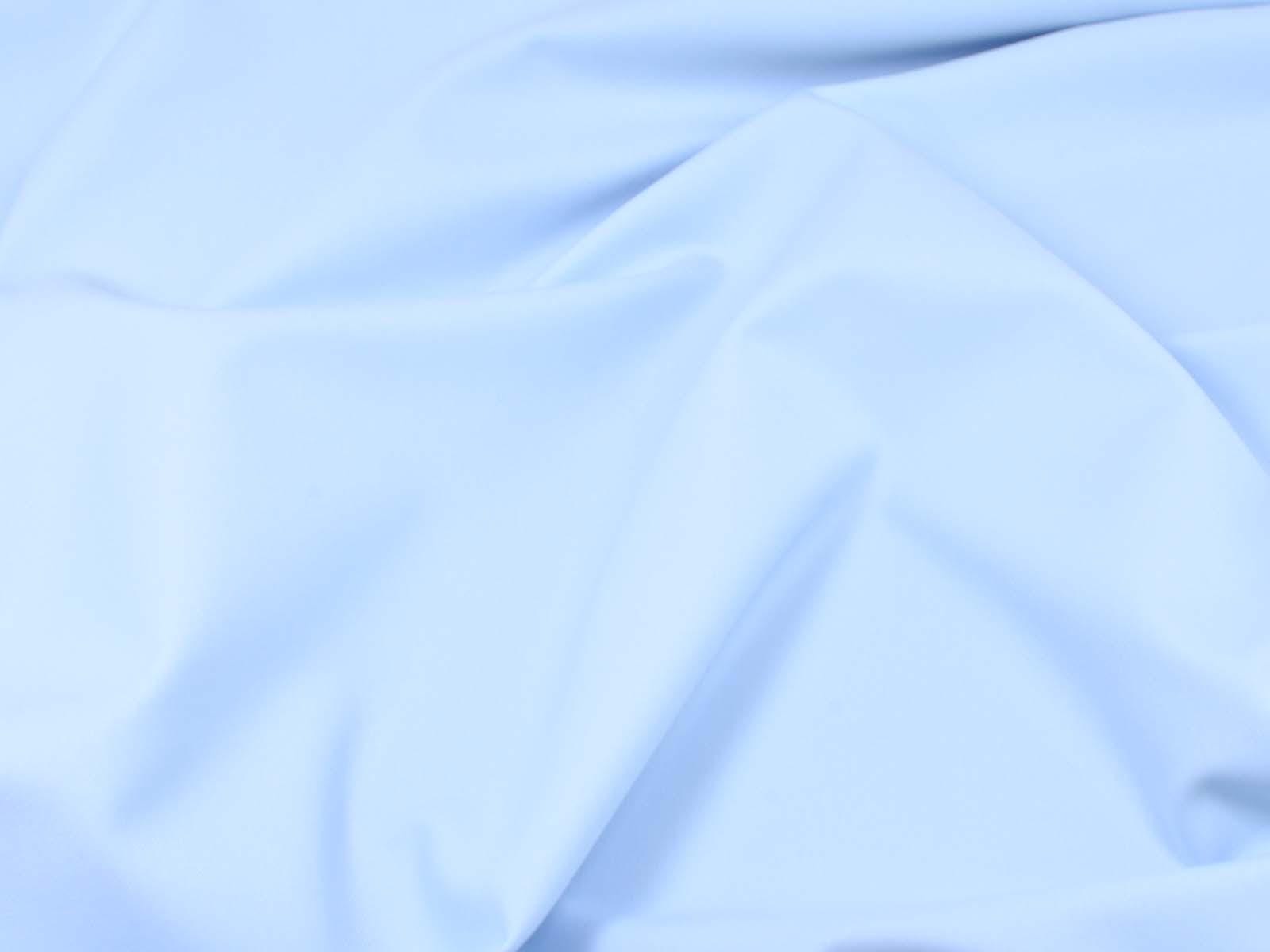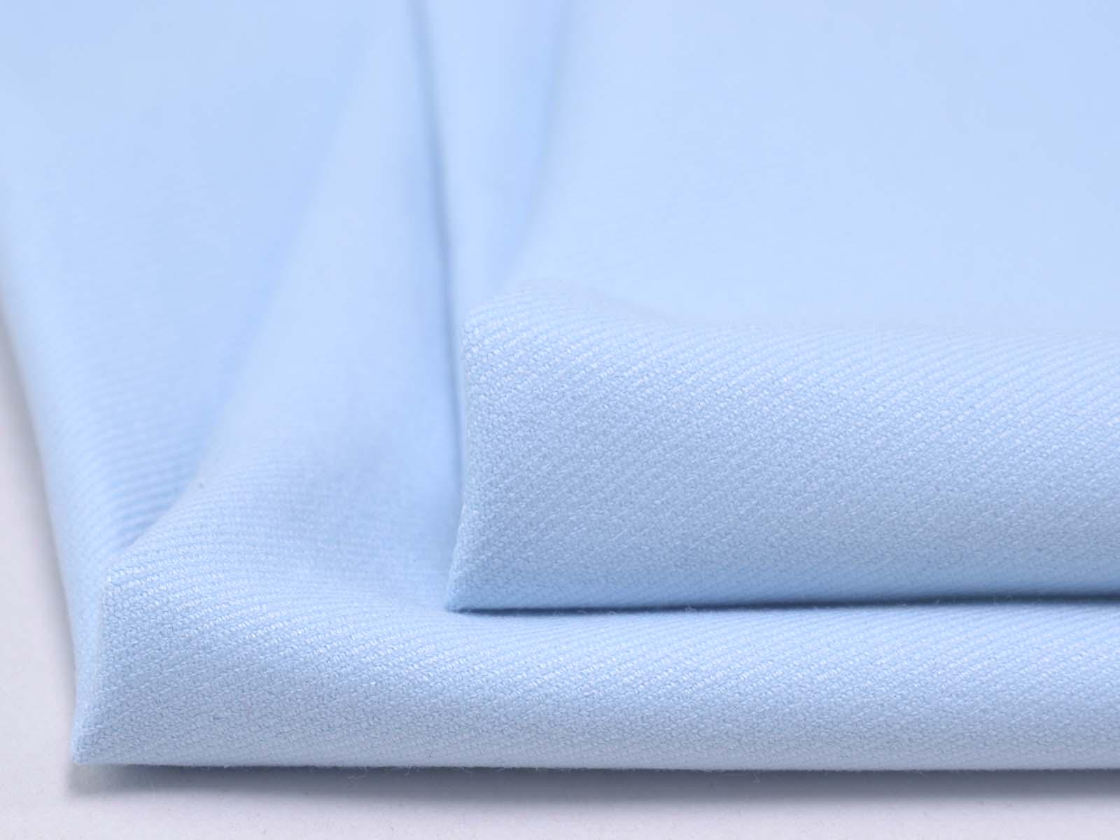 Woven twill fabric made of viscose and polyester with stretch in plain light blue. The fabric is medium-thick, medium-weight, smooth, and bi-stretchy. Use it to sew tight-fitting pants, dresses, and skirts.