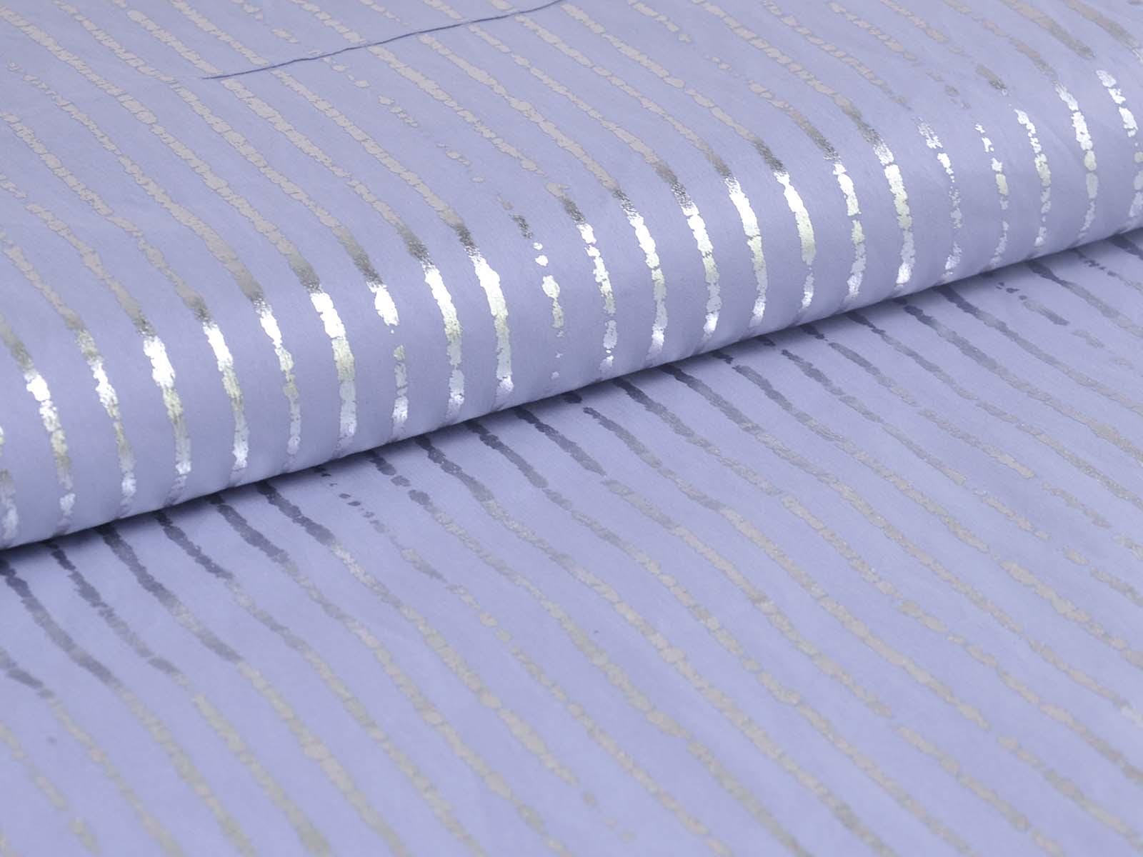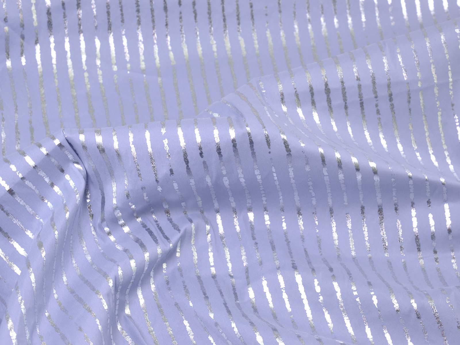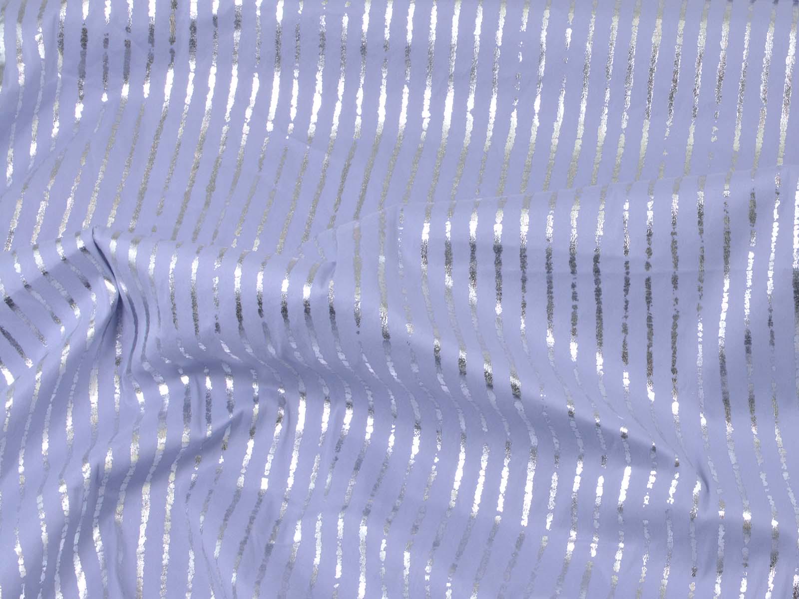 Webware aus Baumwolle, Modal und Stretch. Die Baumwolle ist glatt, dünn und hat einen silbernen Längsstreifen. Der Abstand zwischen den Streifen beträgt ca. 0,7 cm. Daher eignet er sich wunderbar zum Nähen von Blusen, Sommerkleidern, Röcken und vielem mehr.