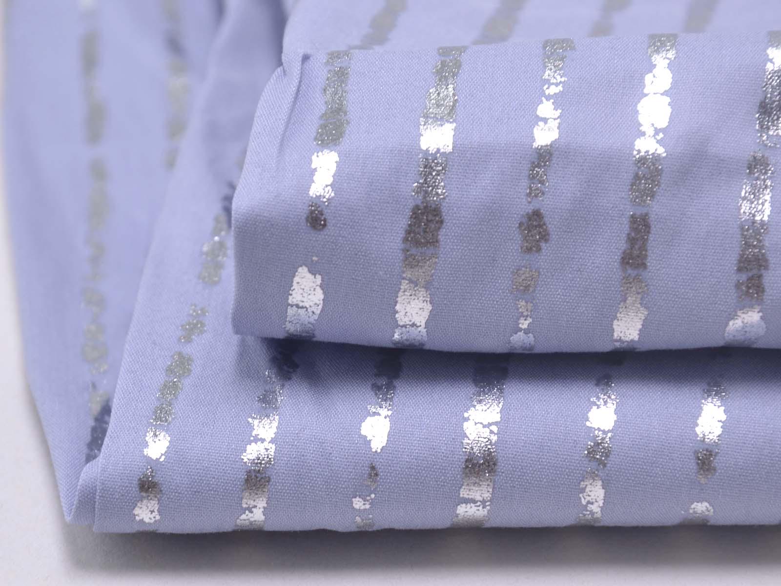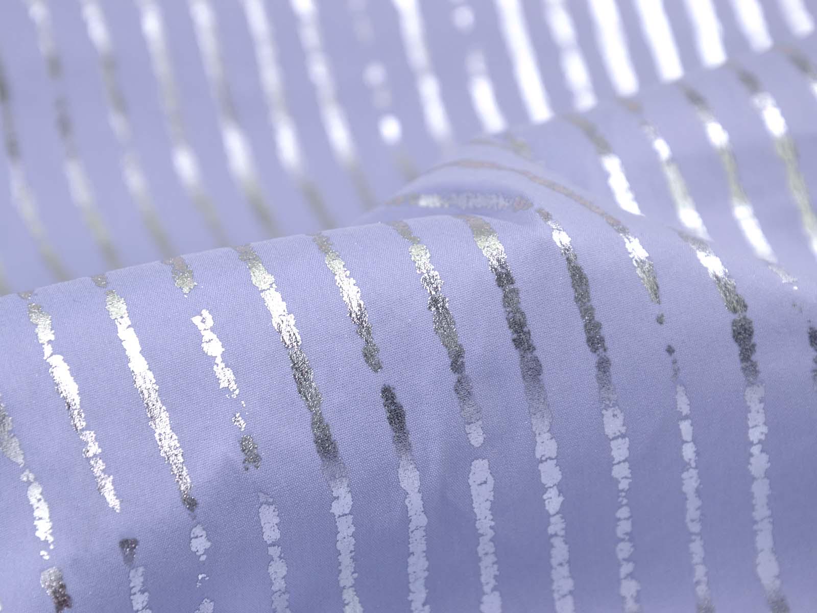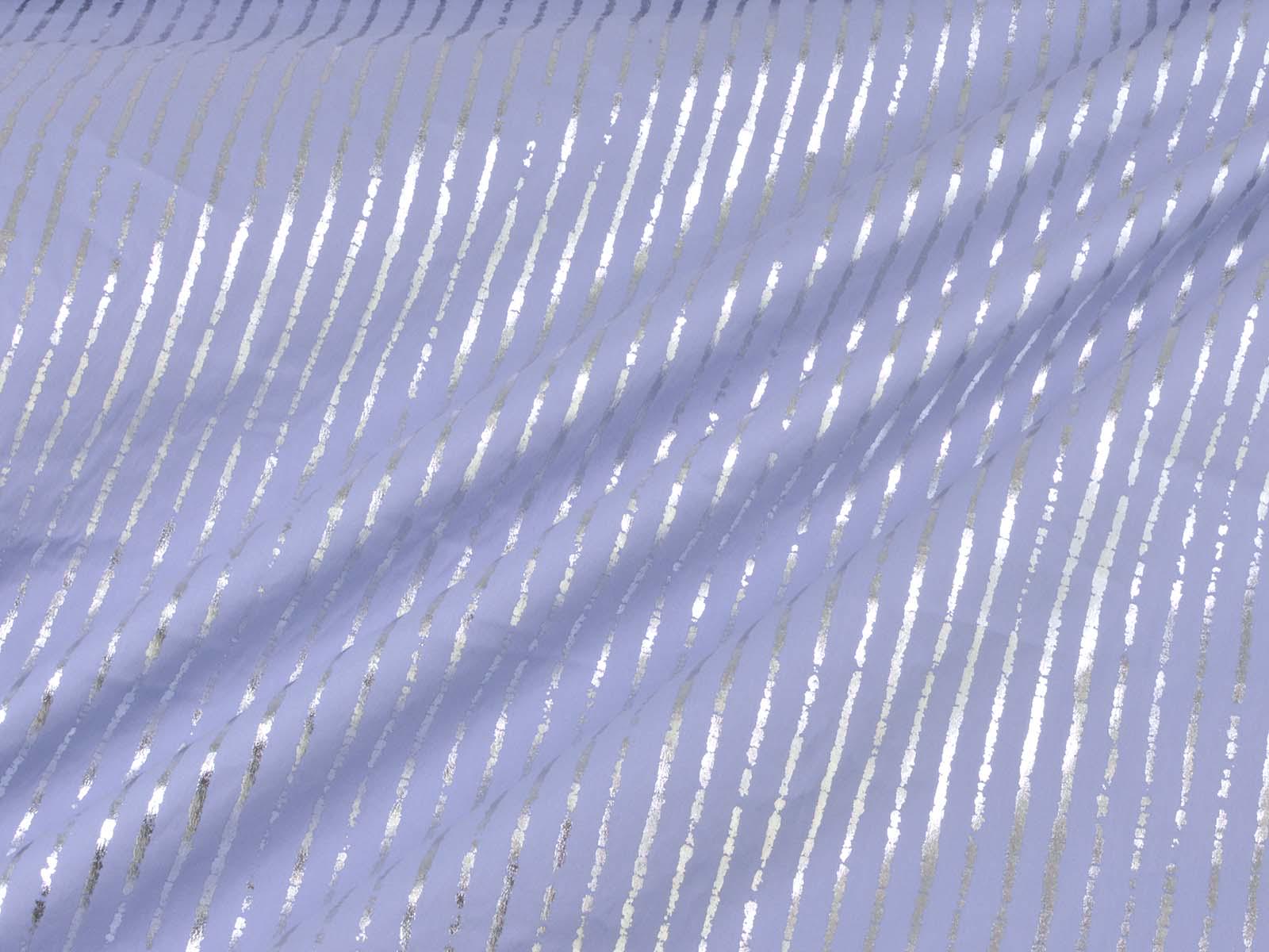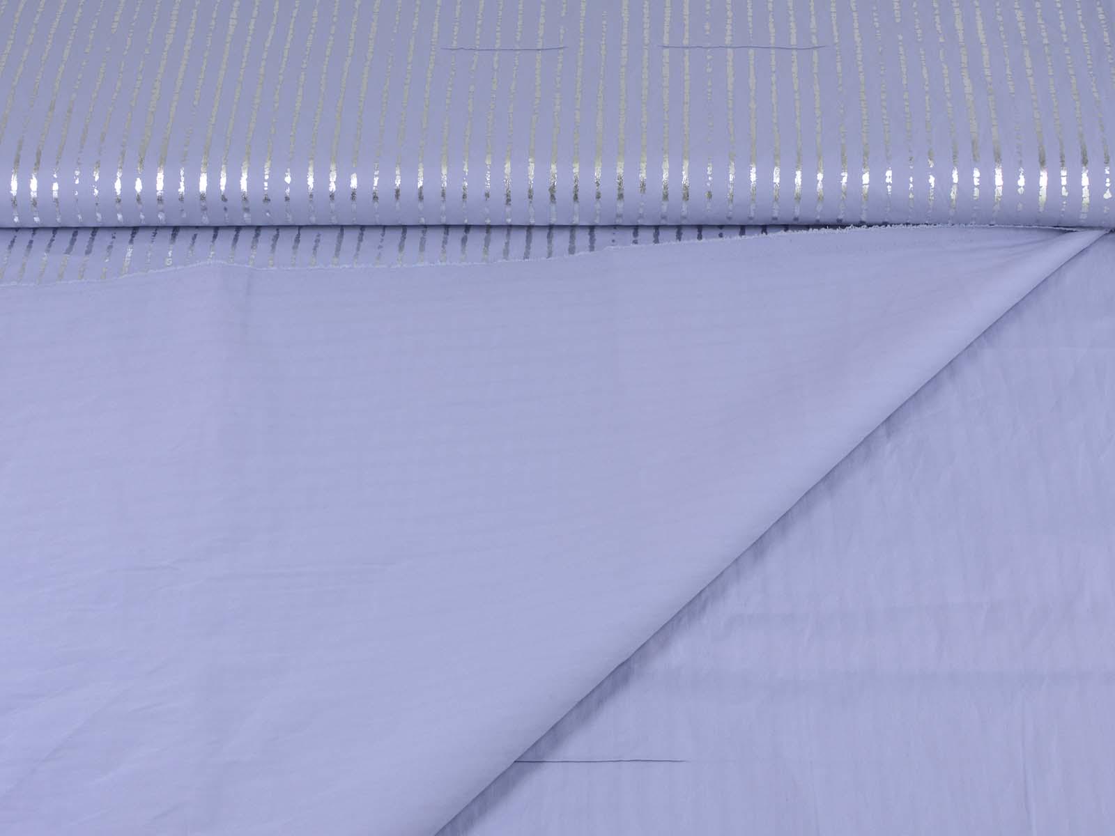 Webware aus Baumwolle, Modal und Stretch. Die Baumwolle ist glatt, dünn und hat einen silbernen Längsstreifen. Der Abstand zwischen den Streifen beträgt ca. 0,7 cm. Daher eignet er sich wunderbar zum Nähen von Blusen, Sommerkleidern, Röcken und vielem mehr.