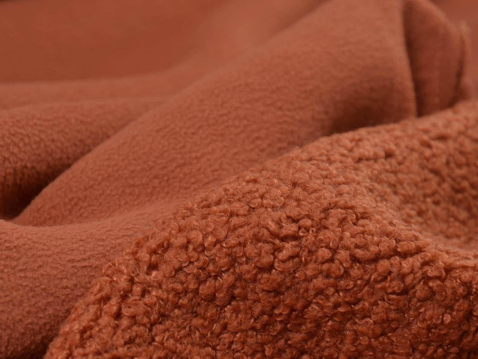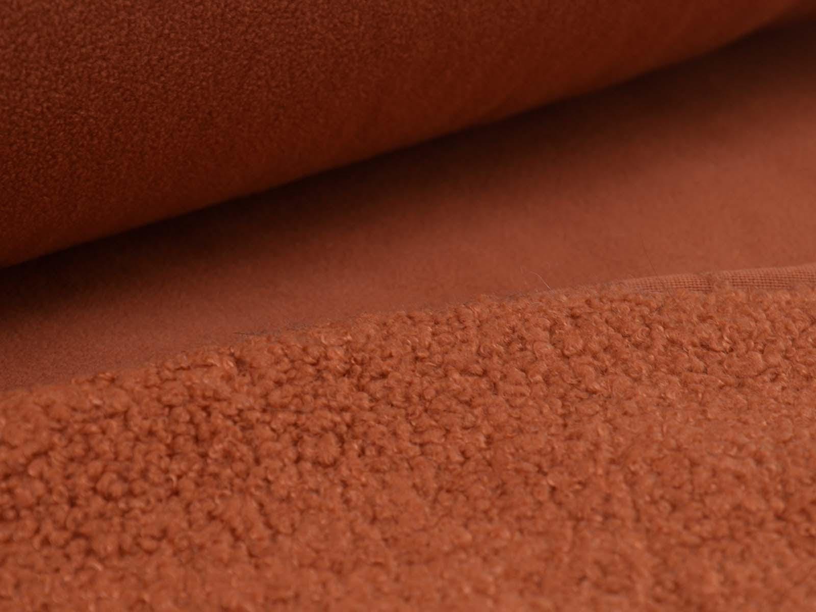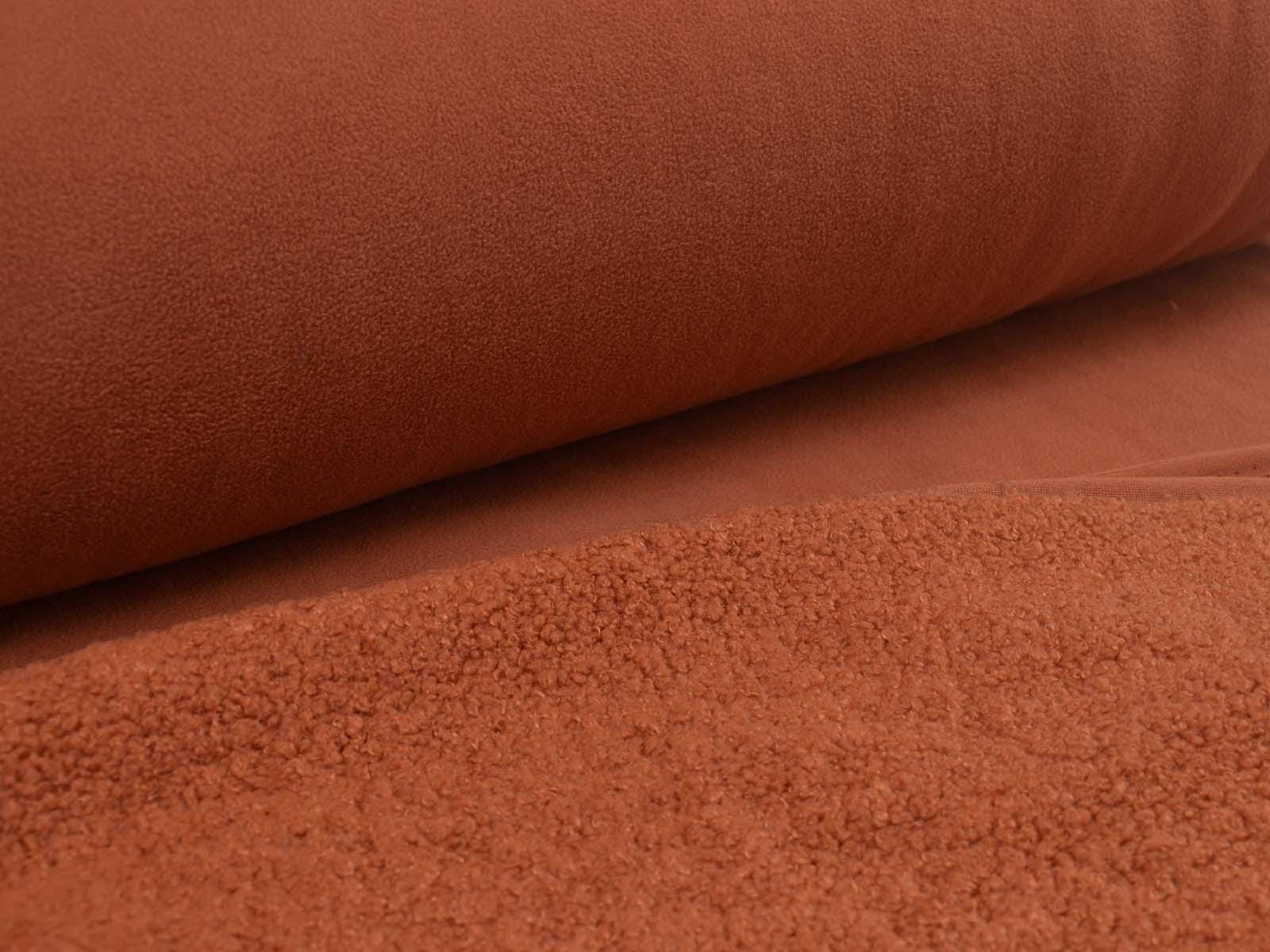 Hochwertiger Mantelstoff aus dem Hause Hilco. Der Mantelstoff mit Teddy Struktur und Fleece Abseite ist rostfarben. Er fühlt sich sehr weich an und ist dick. Der Teddystoff lässt sich wunderbar als Mantel, Jacke oder Decke verarbeiten.