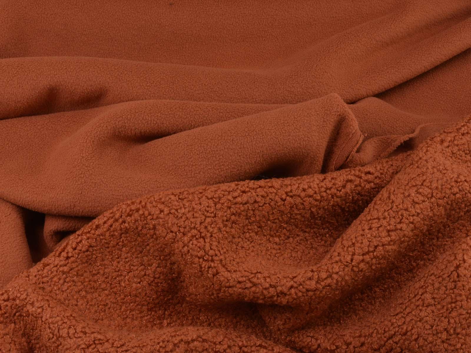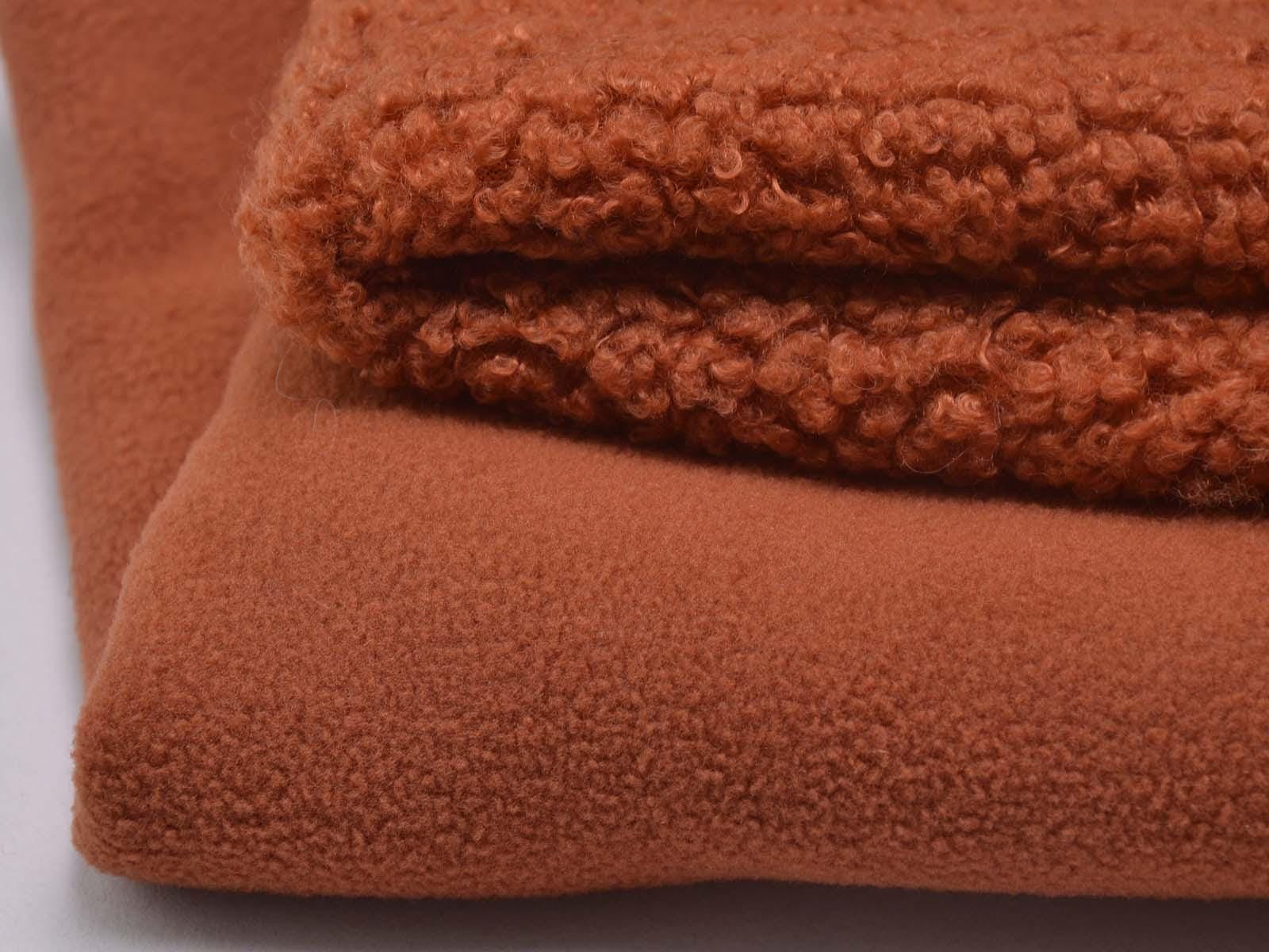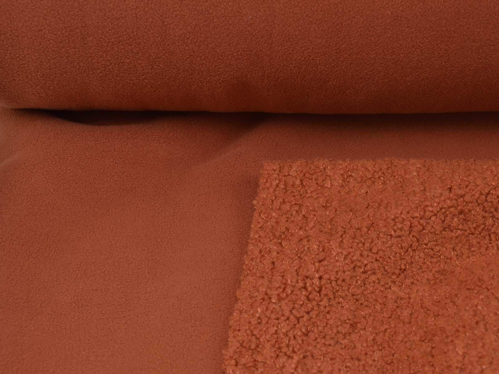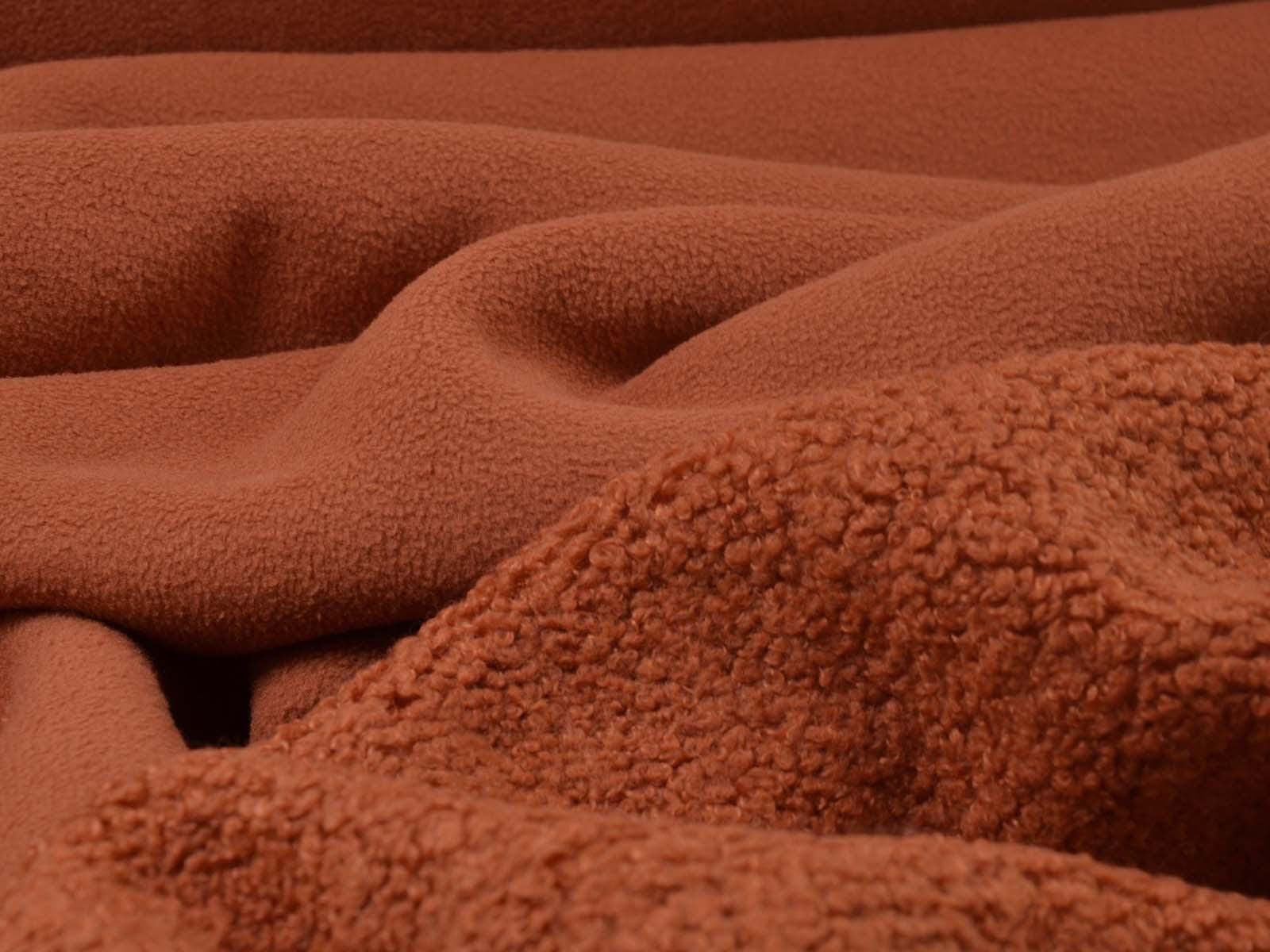 Hochwertiger Mantelstoff aus dem Hause Hilco. Der Mantelstoff mit Teddy Struktur und Fleece Abseite ist rostfarben. Er fühlt sich sehr weich an und ist dick. Der Teddystoff lässt sich wunderbar als Mantel, Jacke oder Decke verarbeiten.