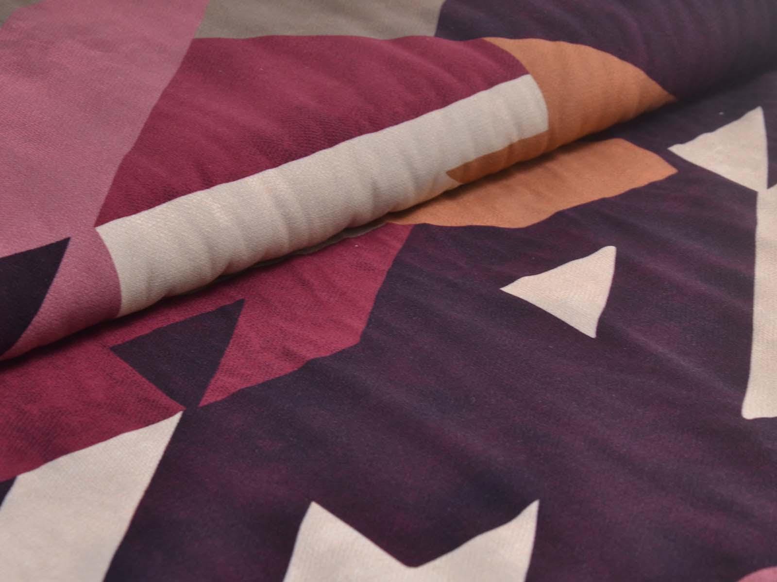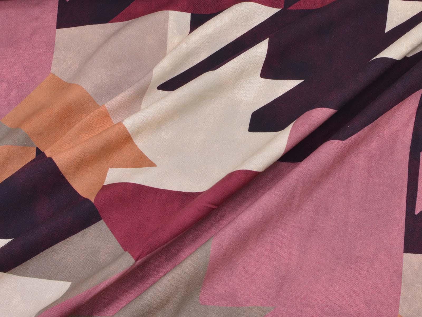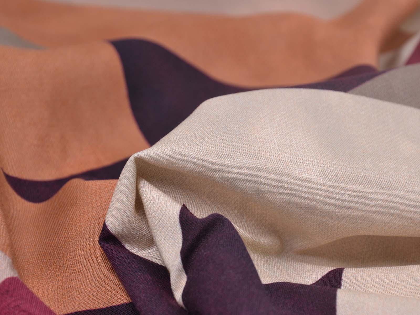 Hochwertige Webware aus Viskose mit Stretch. Der Stoff ist glatt, elastisch, lila gemustert und hat einen eher fließenden Fall. Nähe dir aus dem Stoff Blusen, Tuniken, Kleider und Röcke.