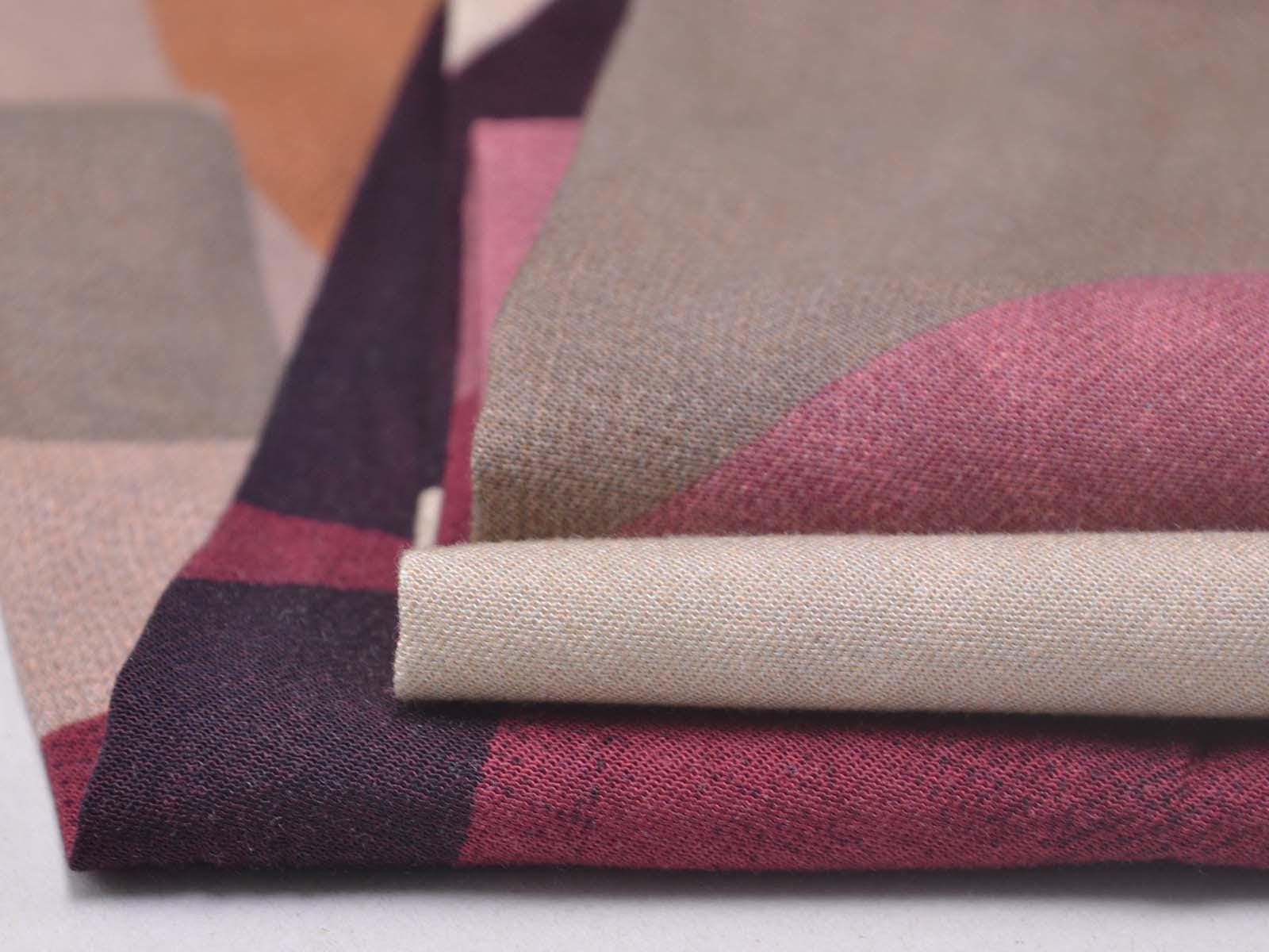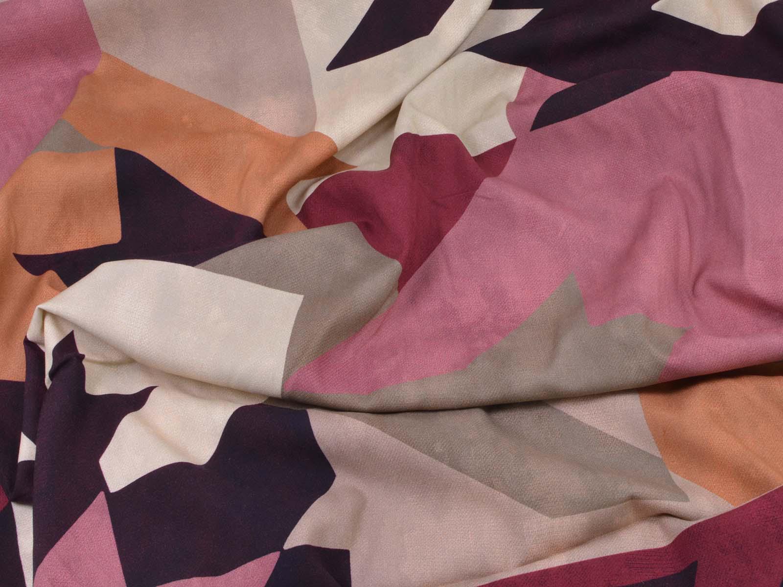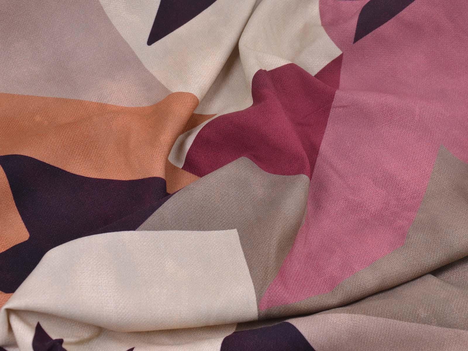 Hochwertige Webware aus Viskose mit Stretch. Der Stoff ist glatt, elastisch, lila gemustert und hat einen eher fließenden Fall. Nähe dir aus dem Stoff Blusen, Tuniken, Kleider und Röcke.