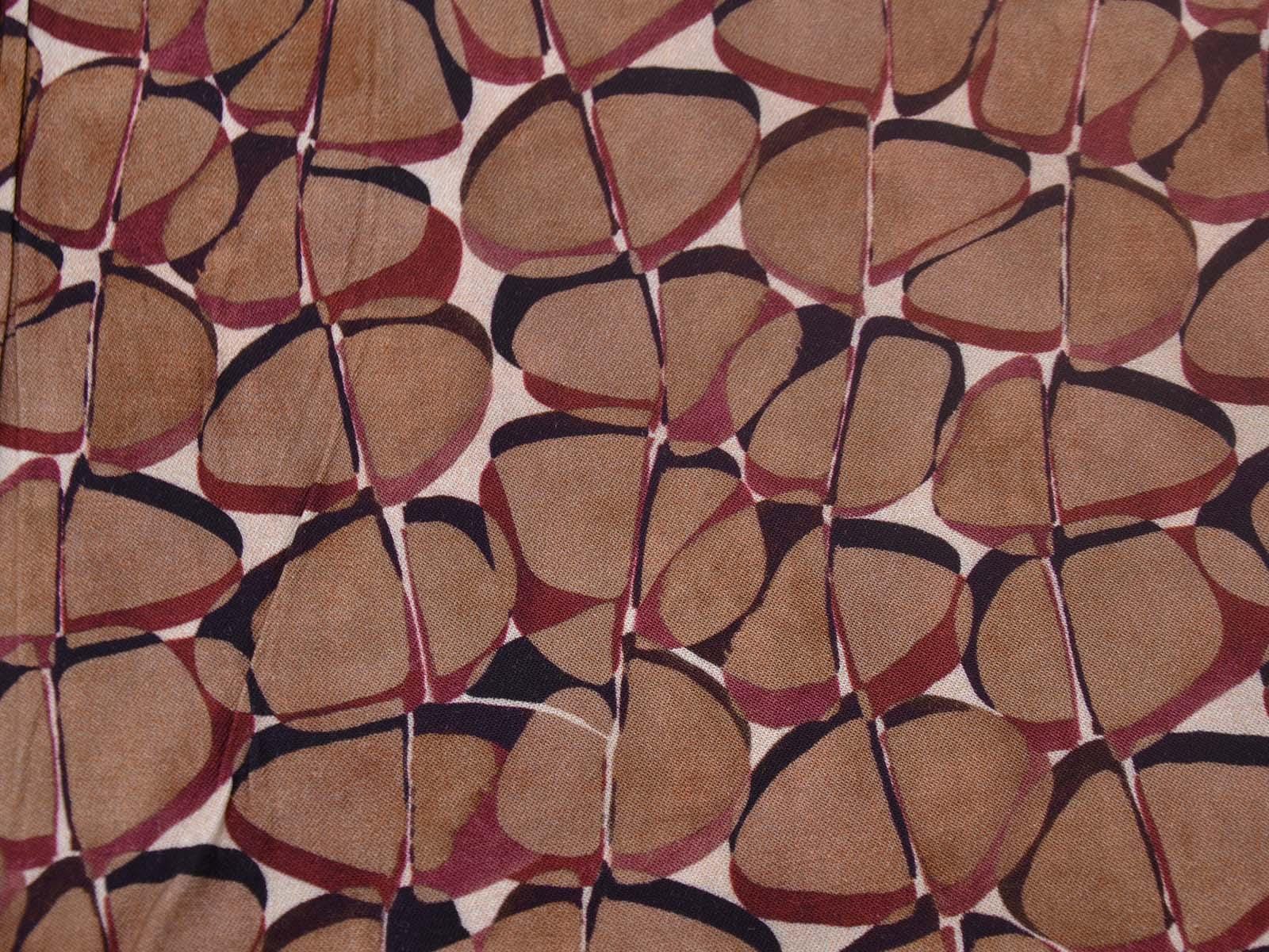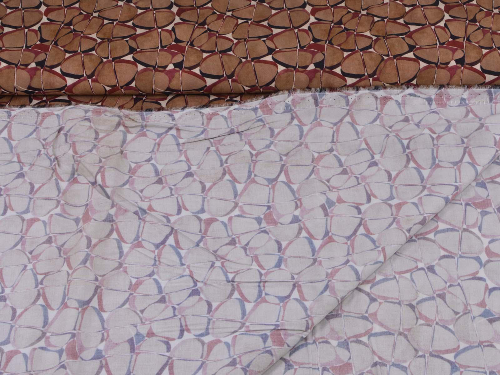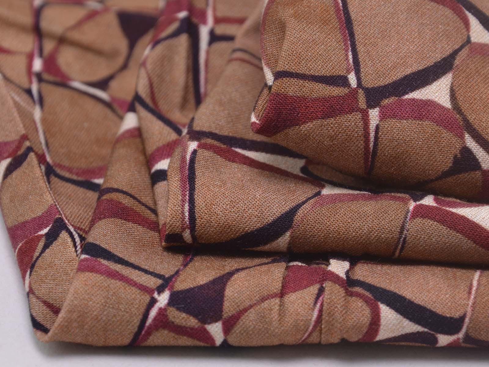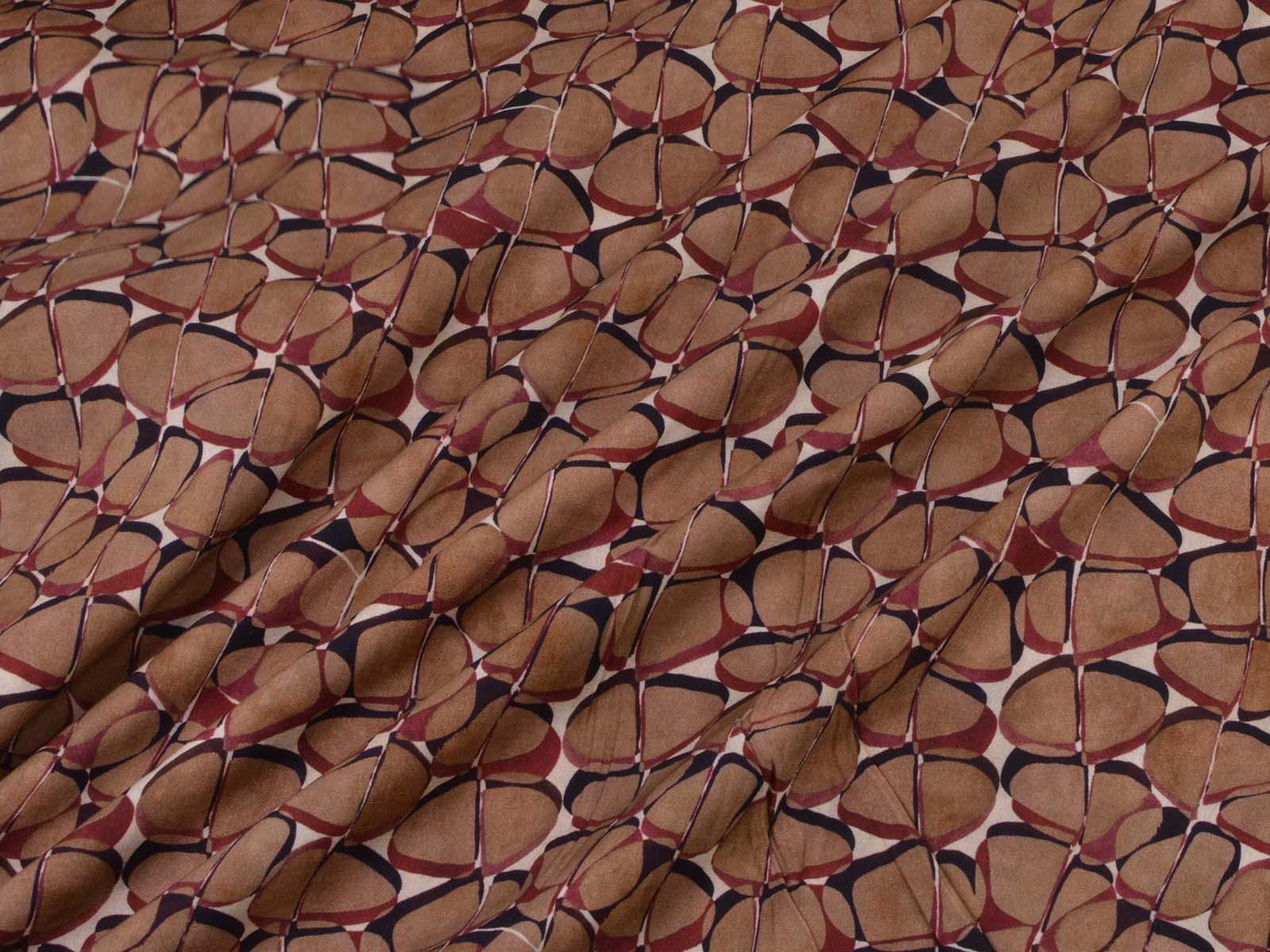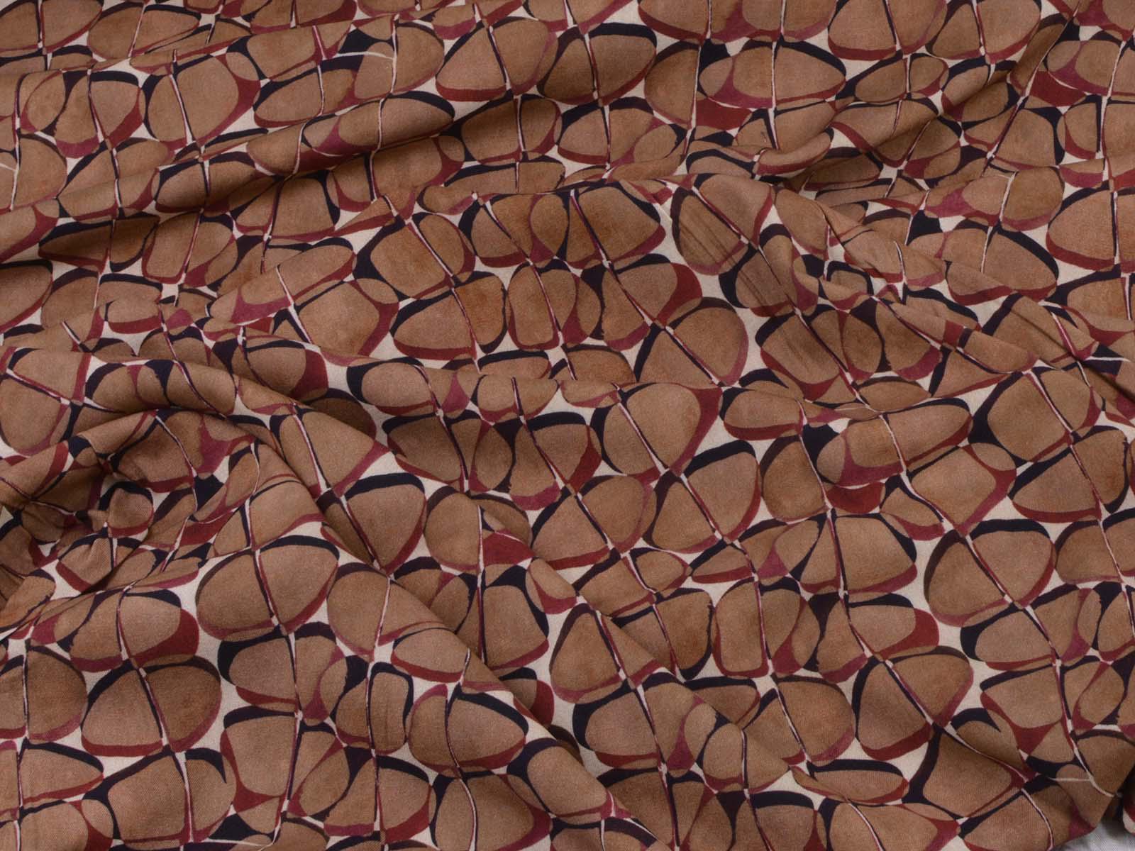 Hochwertige Webware aus Viskose mit Stretch. Der Stoff ist glatt, elastisch, braun gemustert und hat einen eher fließenden Fall. Nähe dir aus dem Stoff Blusen, Tuniken, Kleider und Röcke.