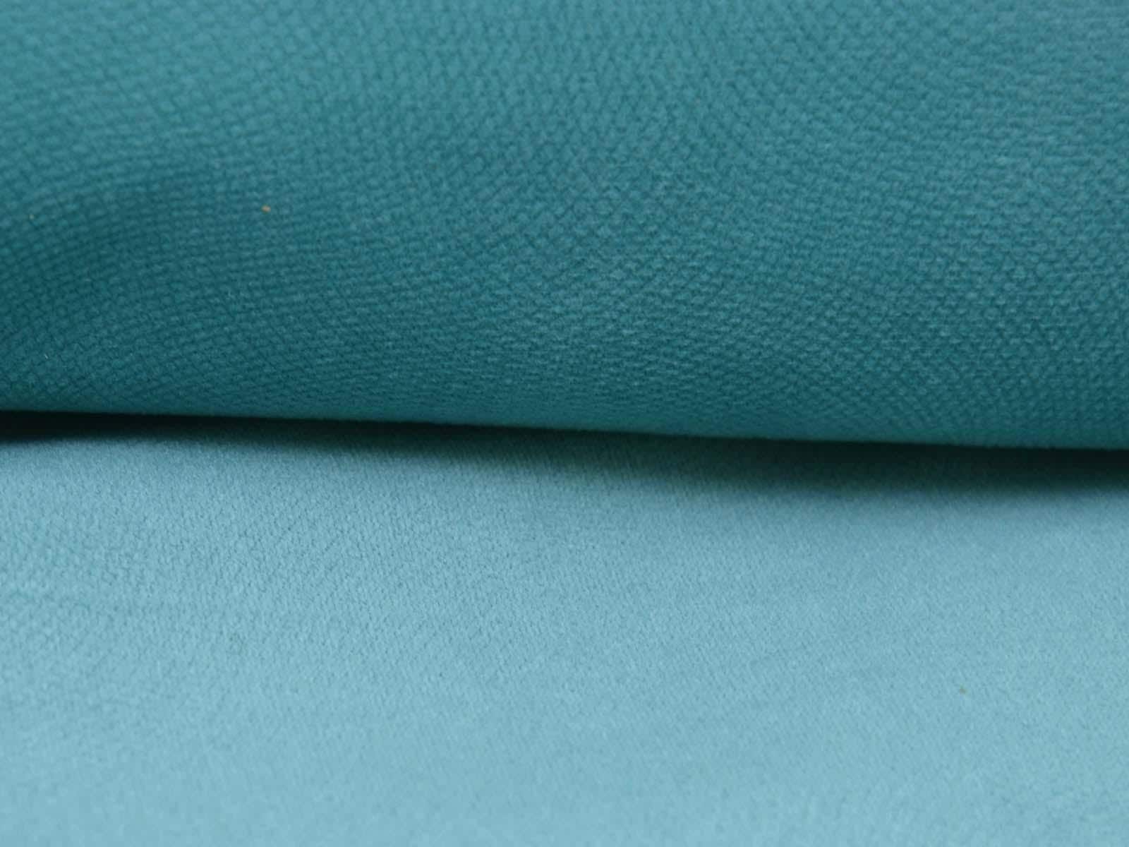 High-quality upholstery fabric in turquoise blue. This velvet velour fabric is ideal for upholstering sofas, armchairs, chairs, and much more. It is robust and tear-resistant. It has a velvety feel.