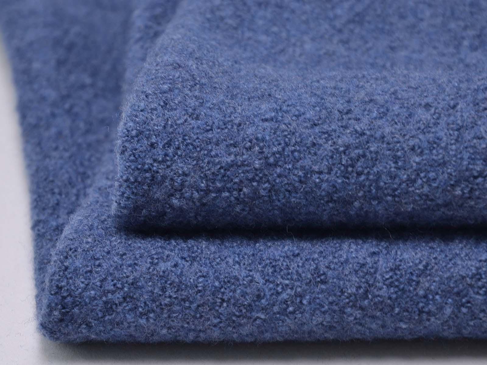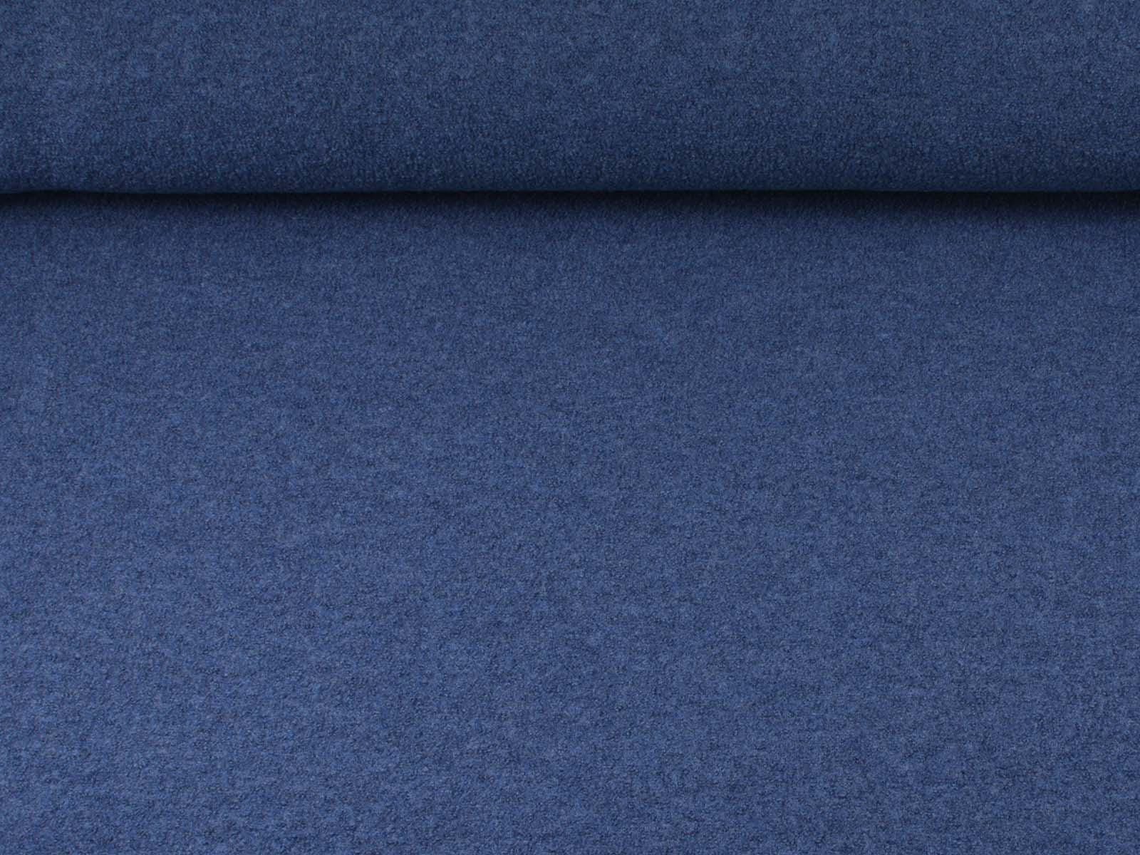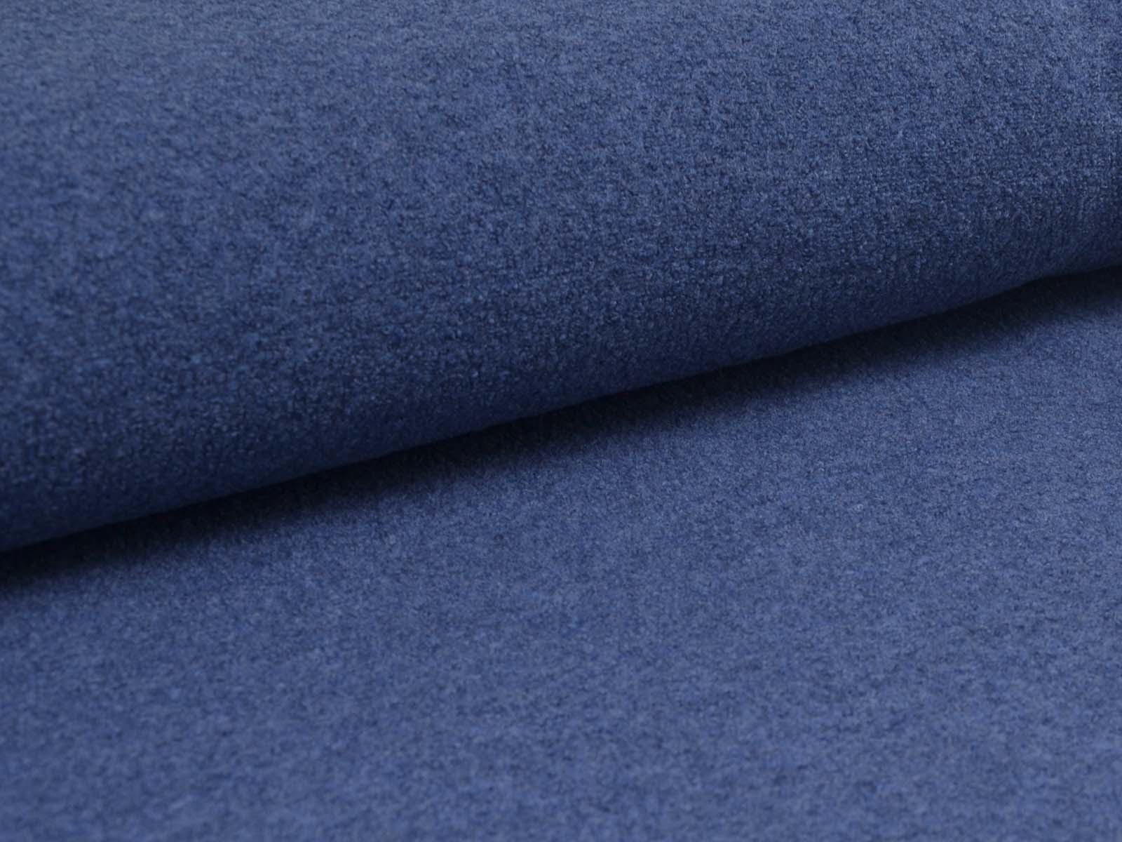 Thin, denim-blue merino wool boiled wool fabric from Hilco. The fabric feels soft and has a slightly grainy texture. You can use it to sew jackets, vests, coats, warm skirts, children's overalls, and so much more.