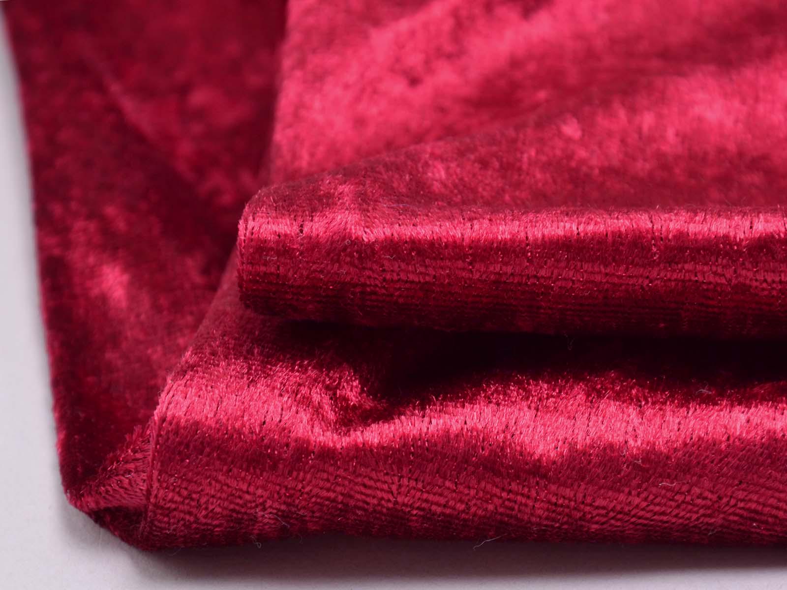 Elastic, glossy panne velvet in solid red. The fabric feels soft and has a flowing drape. It is suitable for sewing costumes and for decoration.