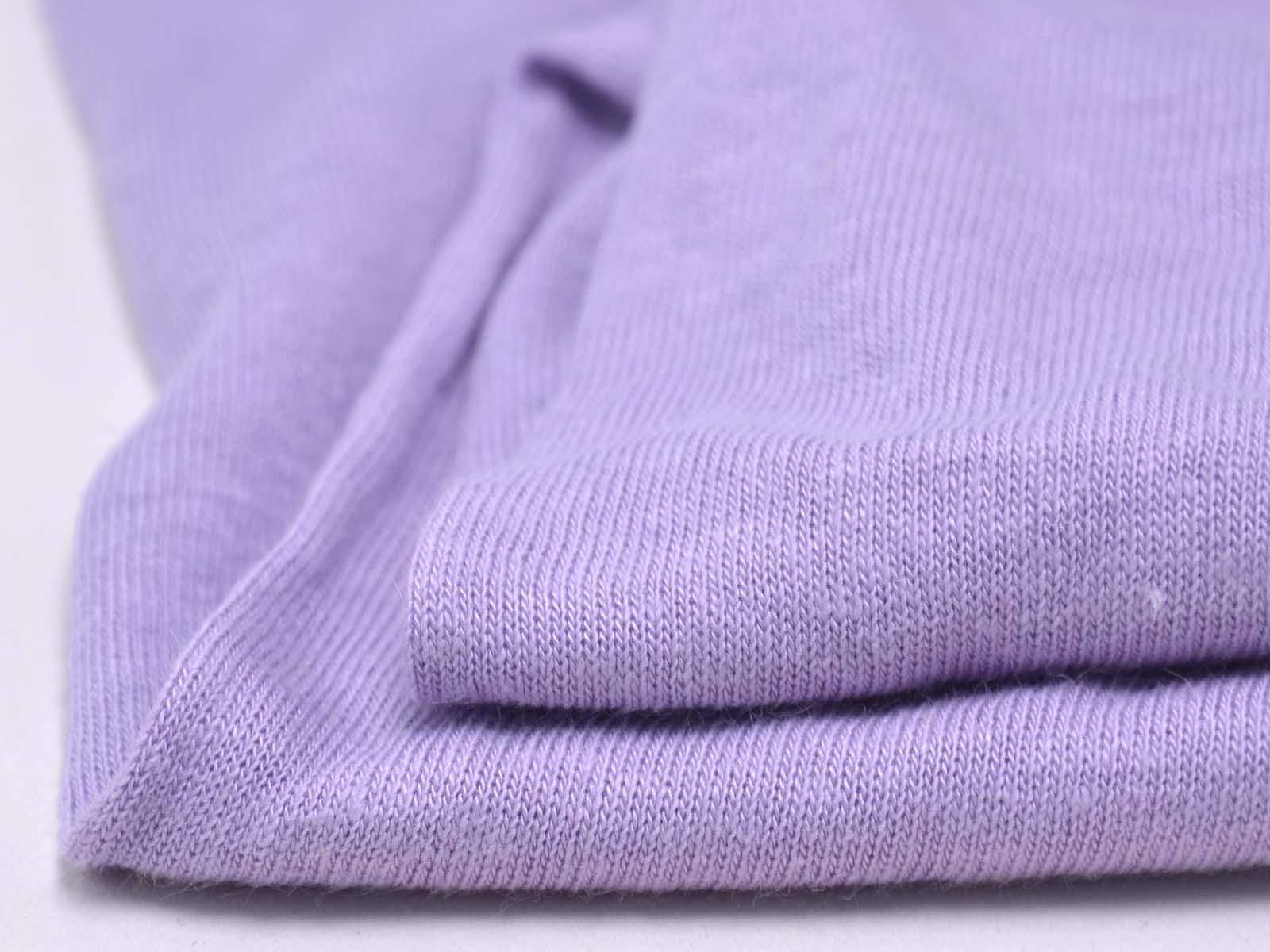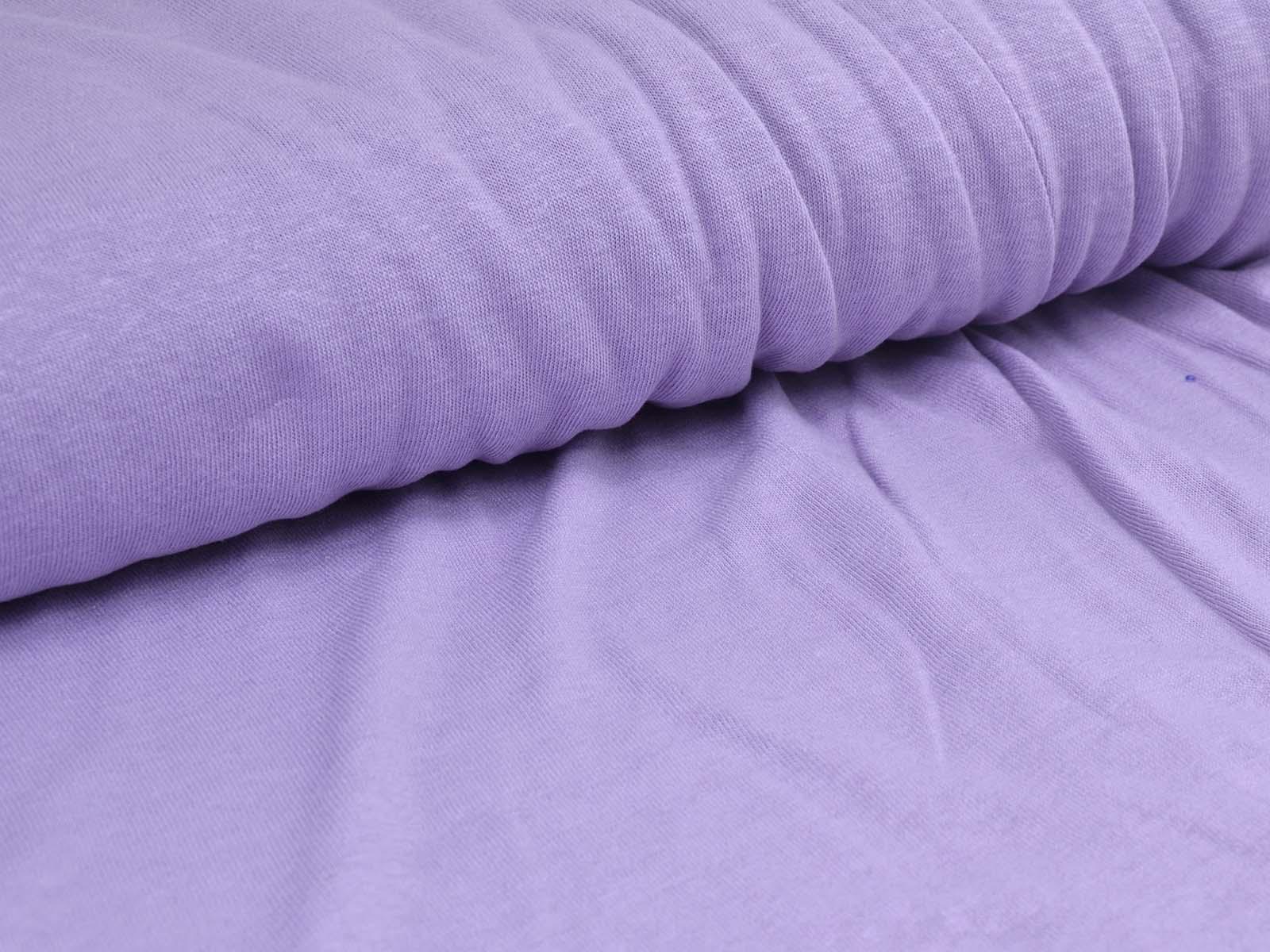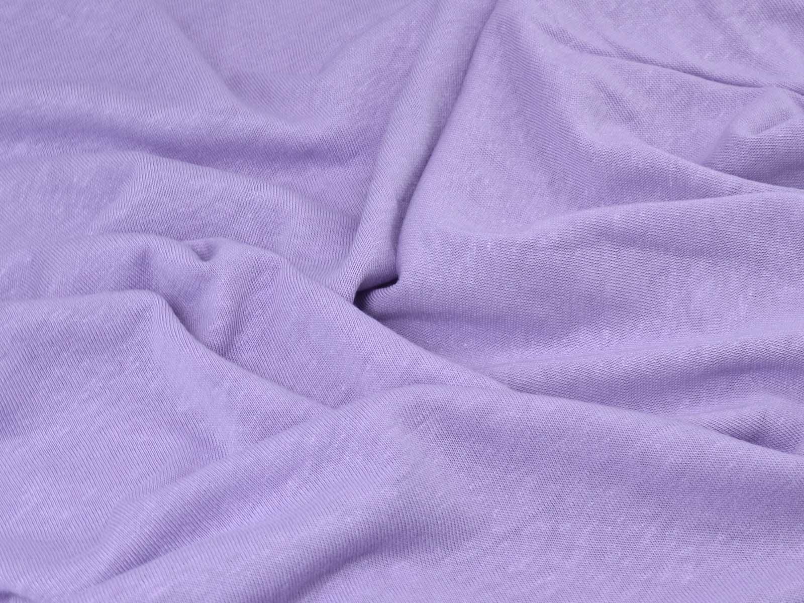 Jersey fabric made from linen and viscose in violet. The fabric is slightly transparent and flowing. It feels soft and is well-suited for T-shirts, summer clothing, and much more.