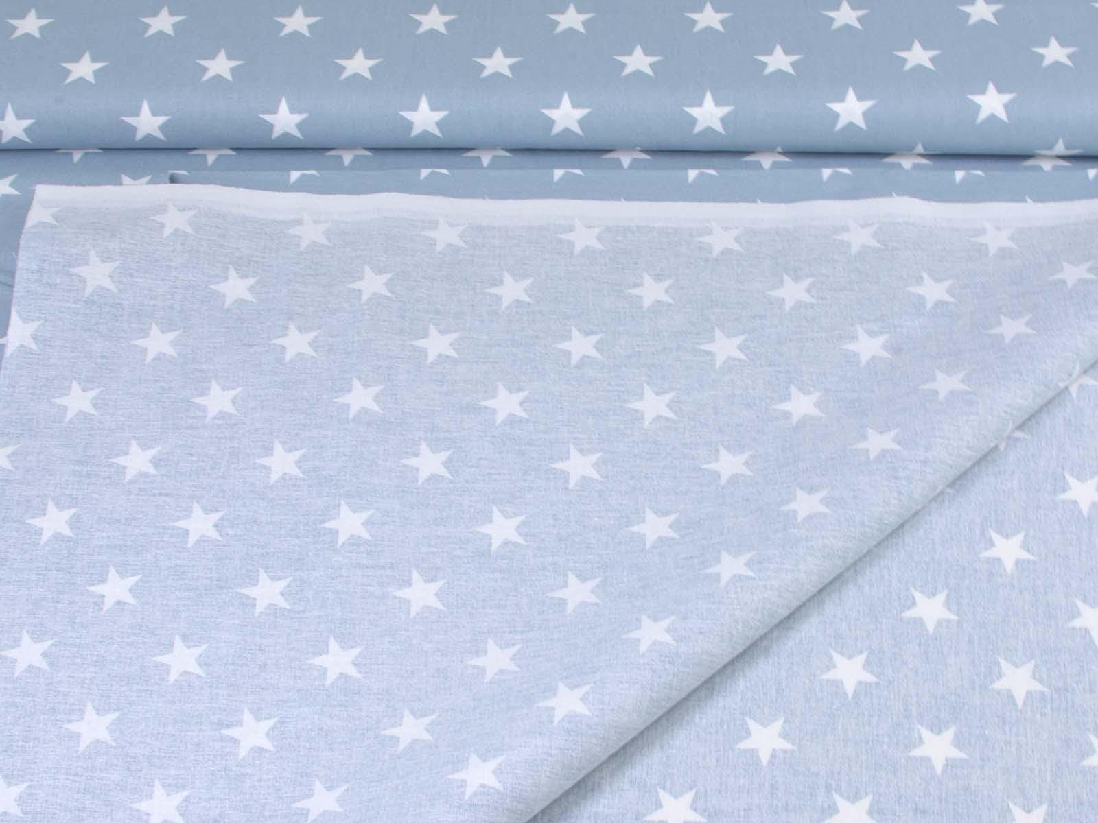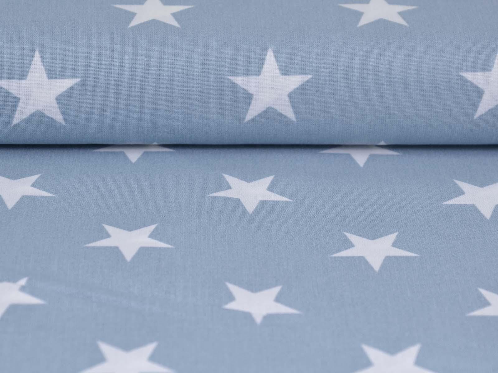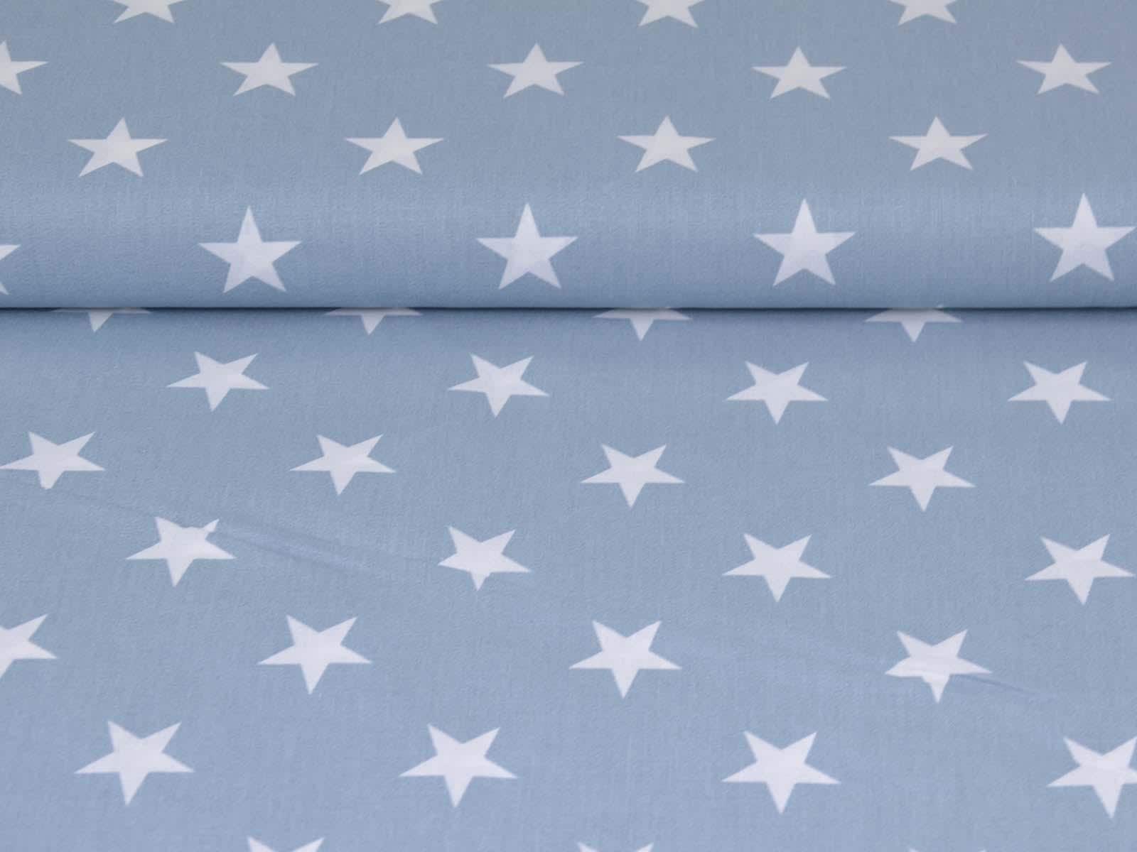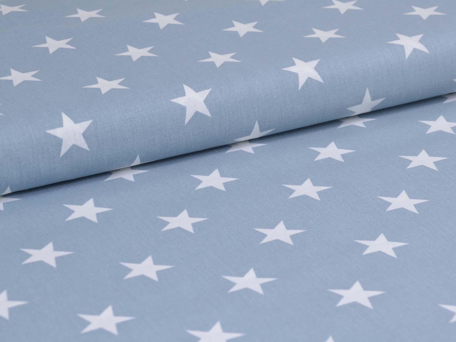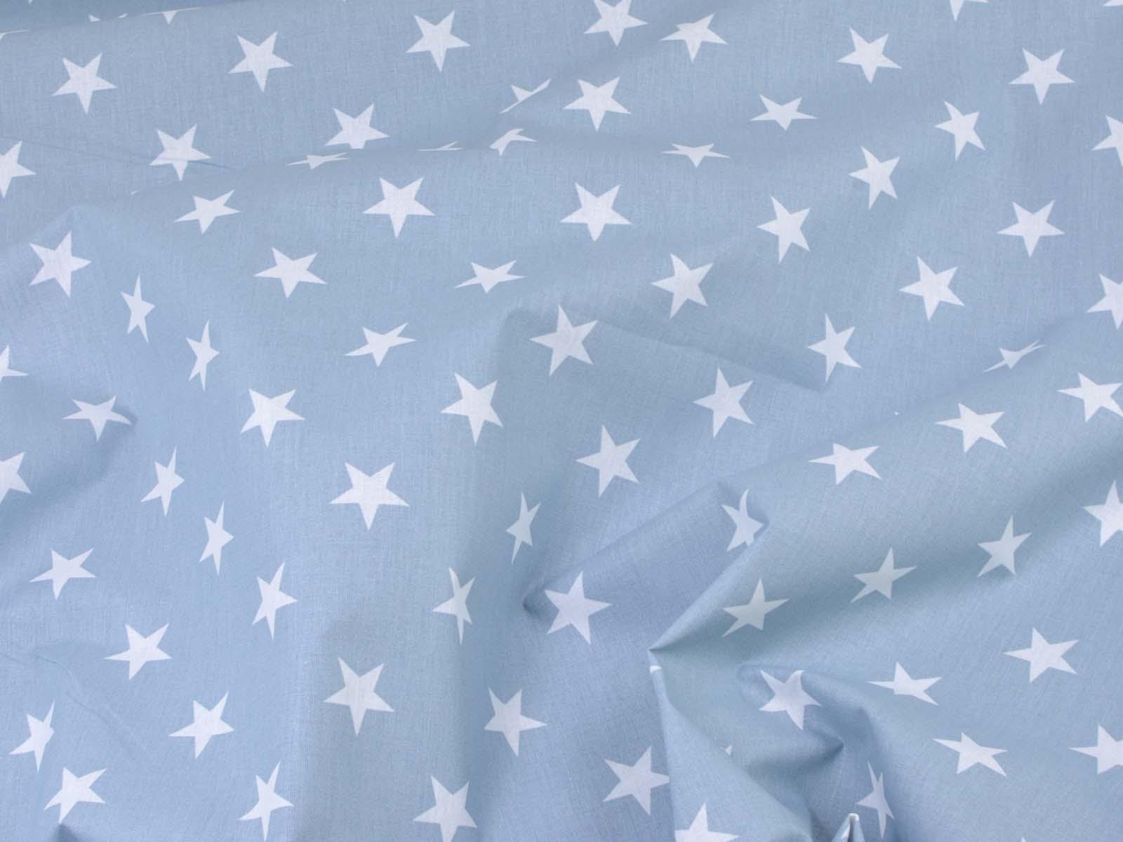 Light blue cotton fabric with white stars. Each star is approximately 2.5 cm in size. The smooth, firm fabric is ideal for patchwork projects and sewing bags, cushions, decorative items, and much more. The extra-wide fabric is 2.95 m wide.